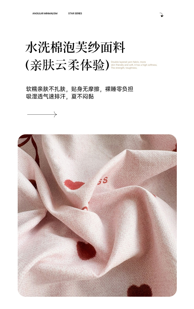 (总)铠畅家纺 2026春夏新品高克重拼接泡芙纱泡泡皱皱纱四件套,旧梦蔷薇,格纹木马,豹心日记,蓝纹序,贝丽丝,悸动,春日花信,花蝶梦,蓝雾花,萌萌喵,奶油草莓