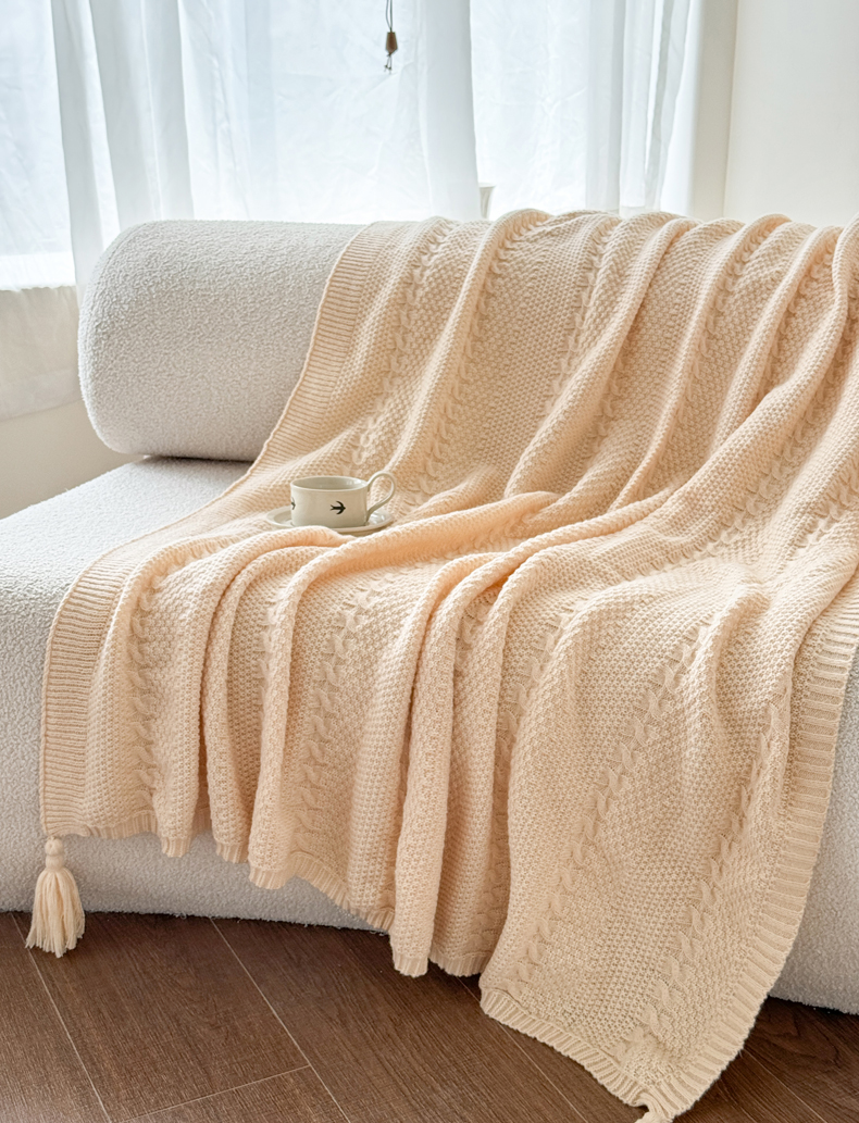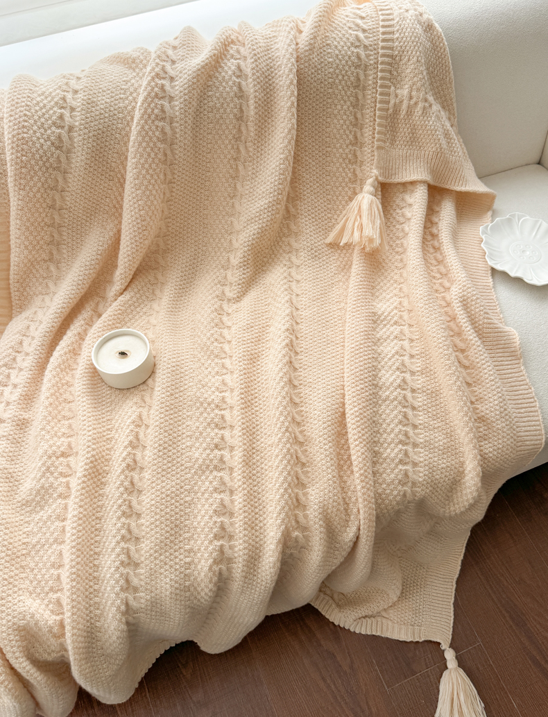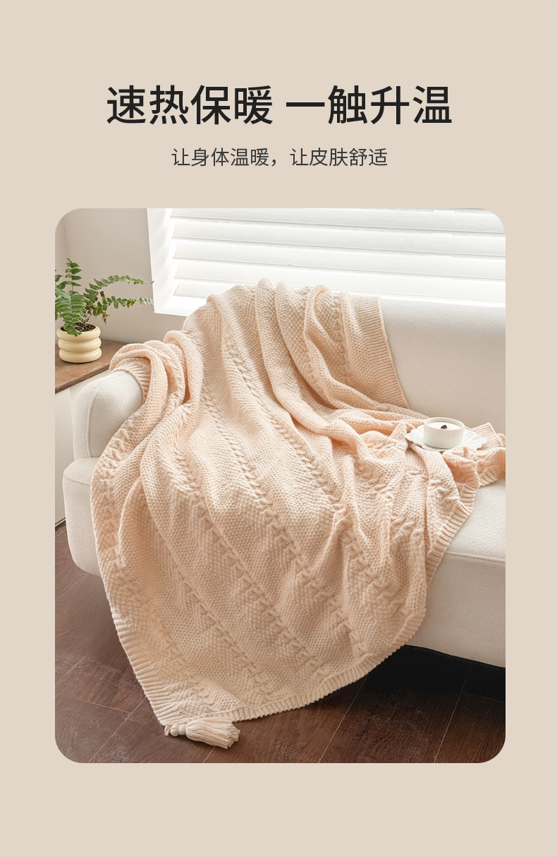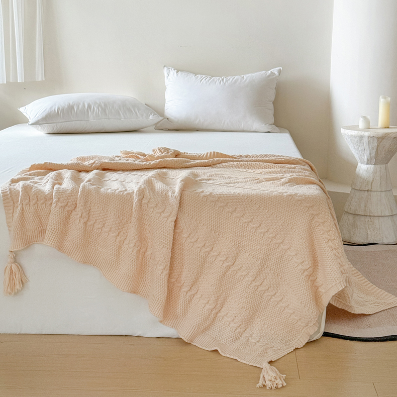 商品名称:丹本家纺 2026新款针织毛毯鹿毛绒纯色流苏航空休闲毯办公午睡盖毯多功能装饰毯 香槟金