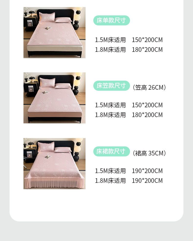 (总)鑫琪莱家纺 2026新款提花浮雕凉豆豆凉感凉席床裙款,蒲公英粉,蒲公英蓝,蒲公英蓝灰,蒲公英绿