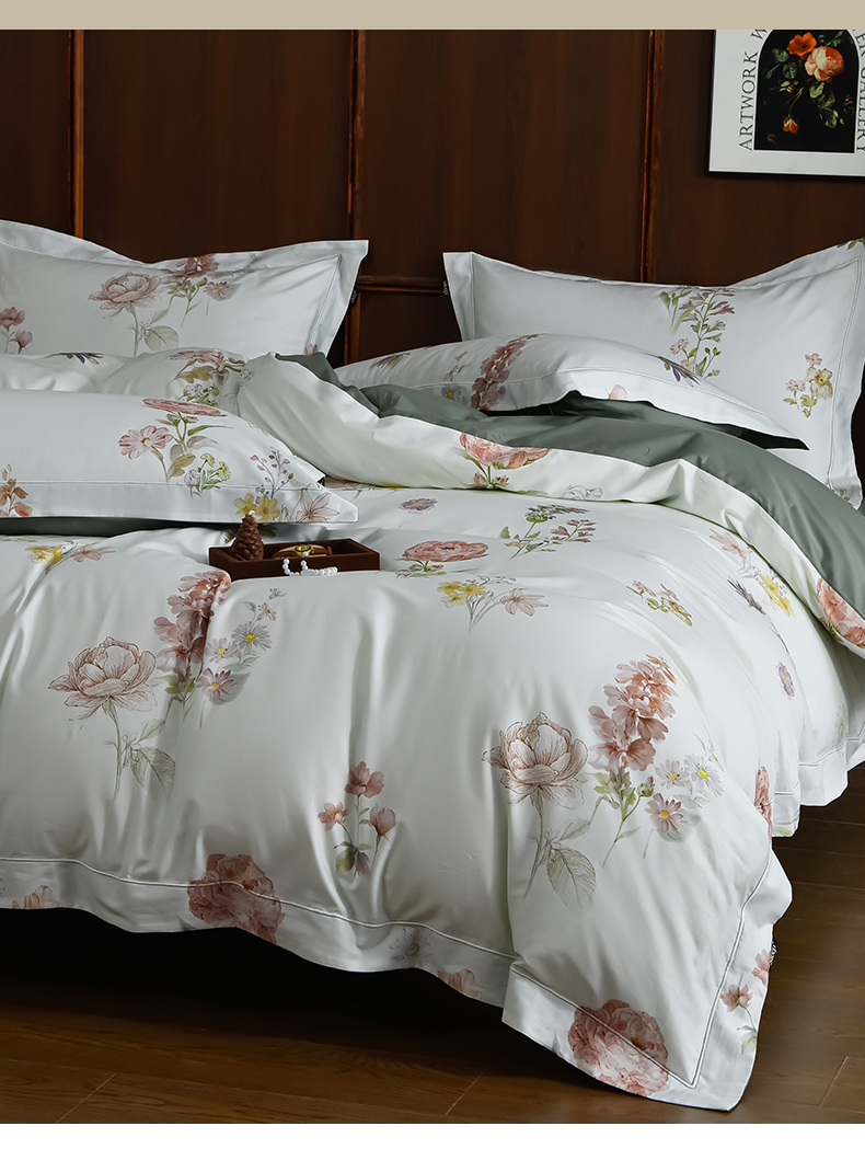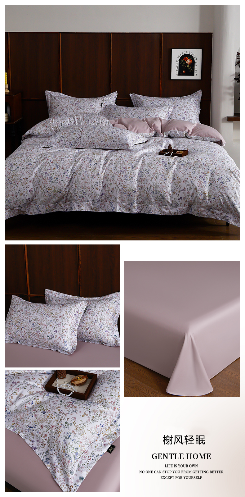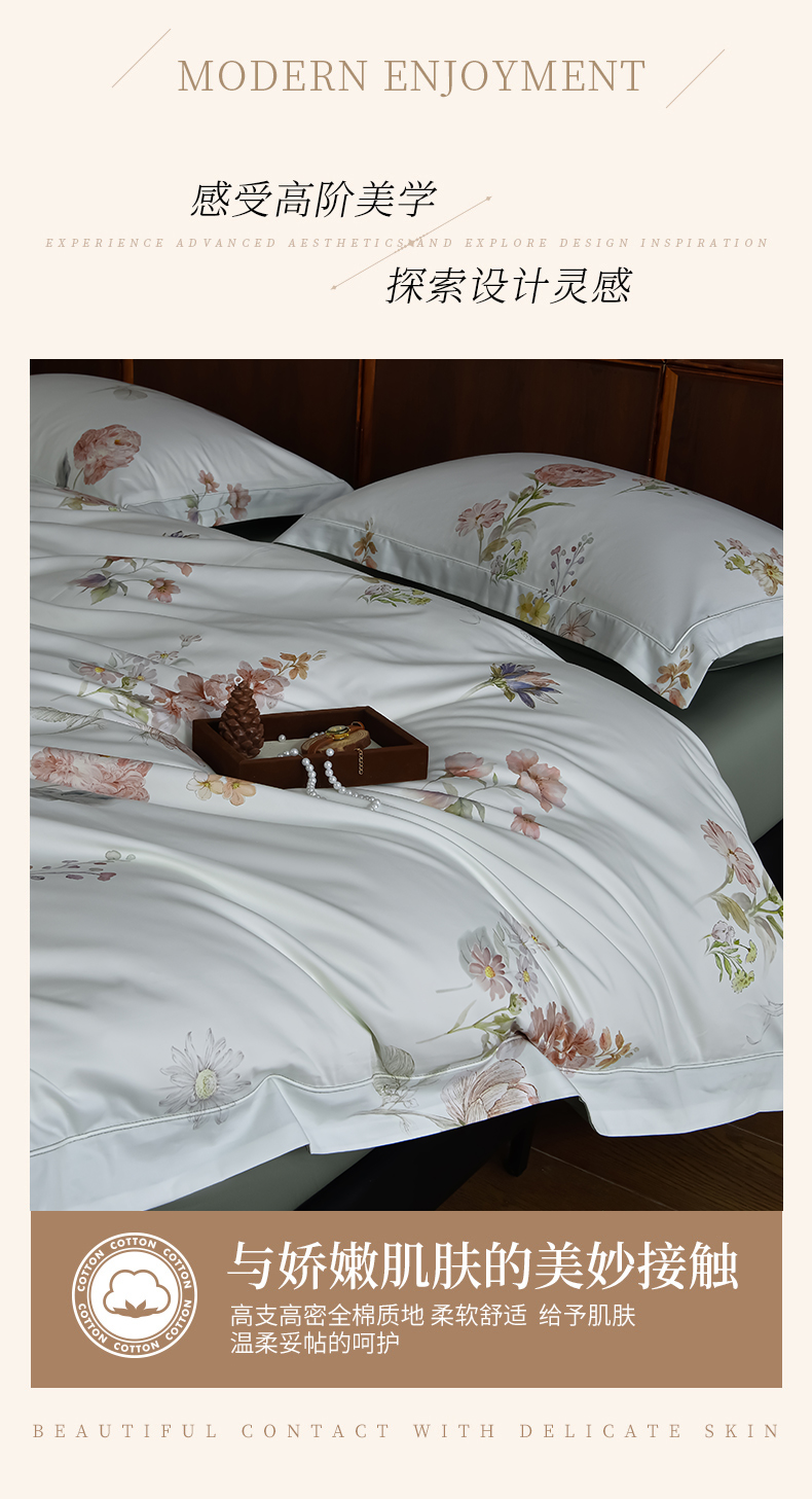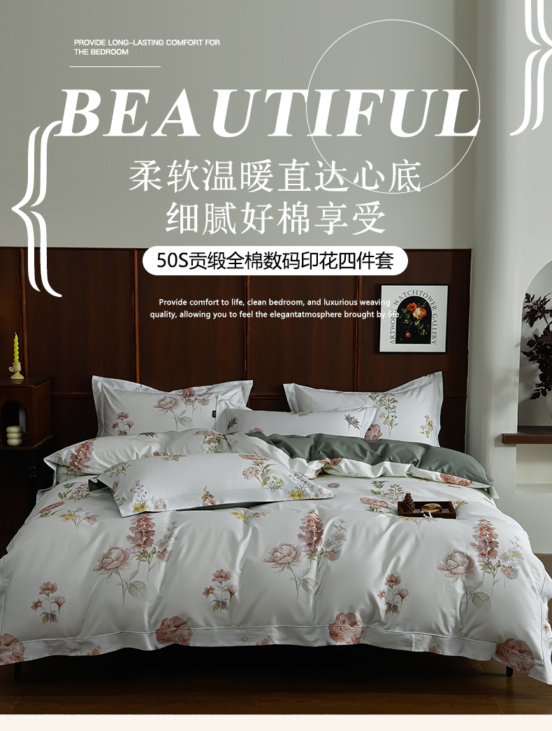 金昱纺 2026新款全棉50S长绒棉数码印花宽边埋绳款四件套(带精美礼盒包装) 甜梦花栖