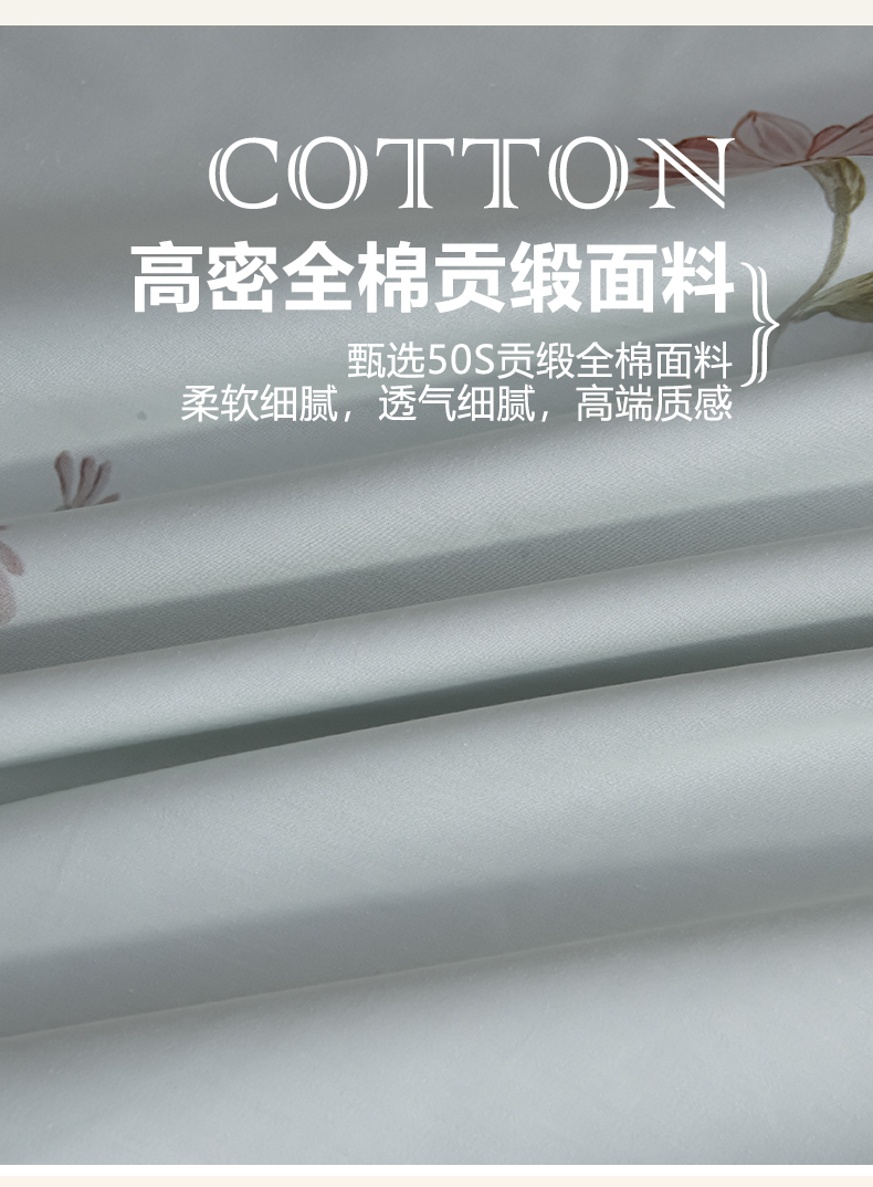 商品名称:金昱纺 2026新款全棉50S长绒棉数码印花宽边埋绳款四件套(带精美礼盒包装) 甜梦花栖
