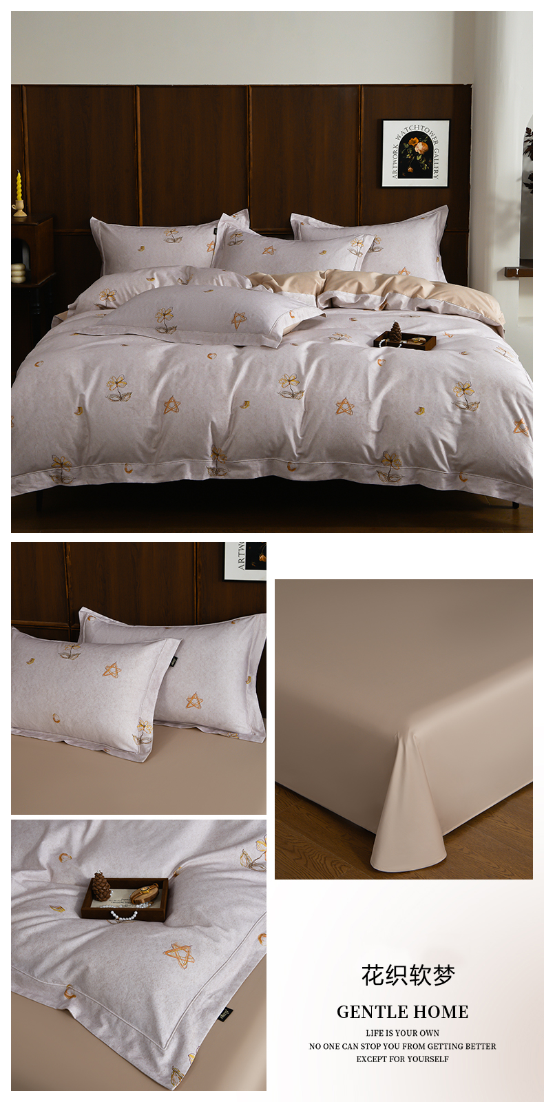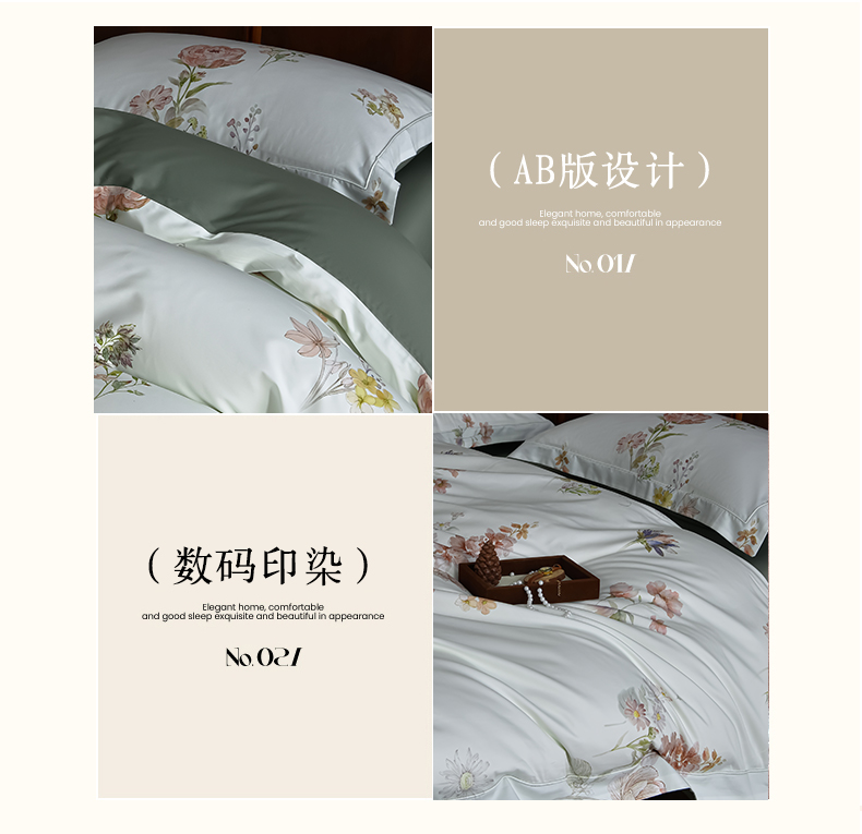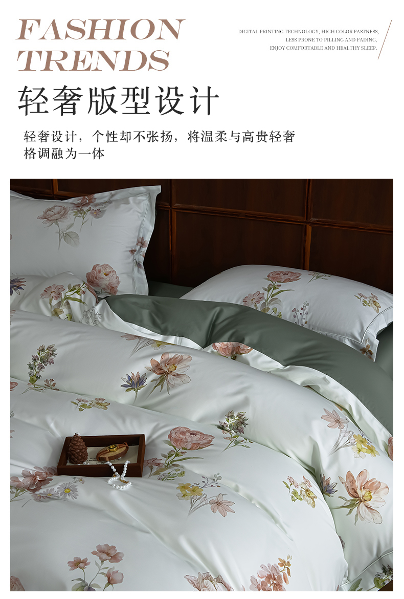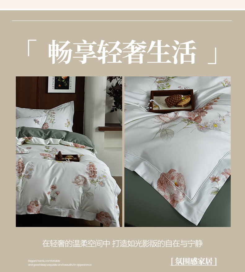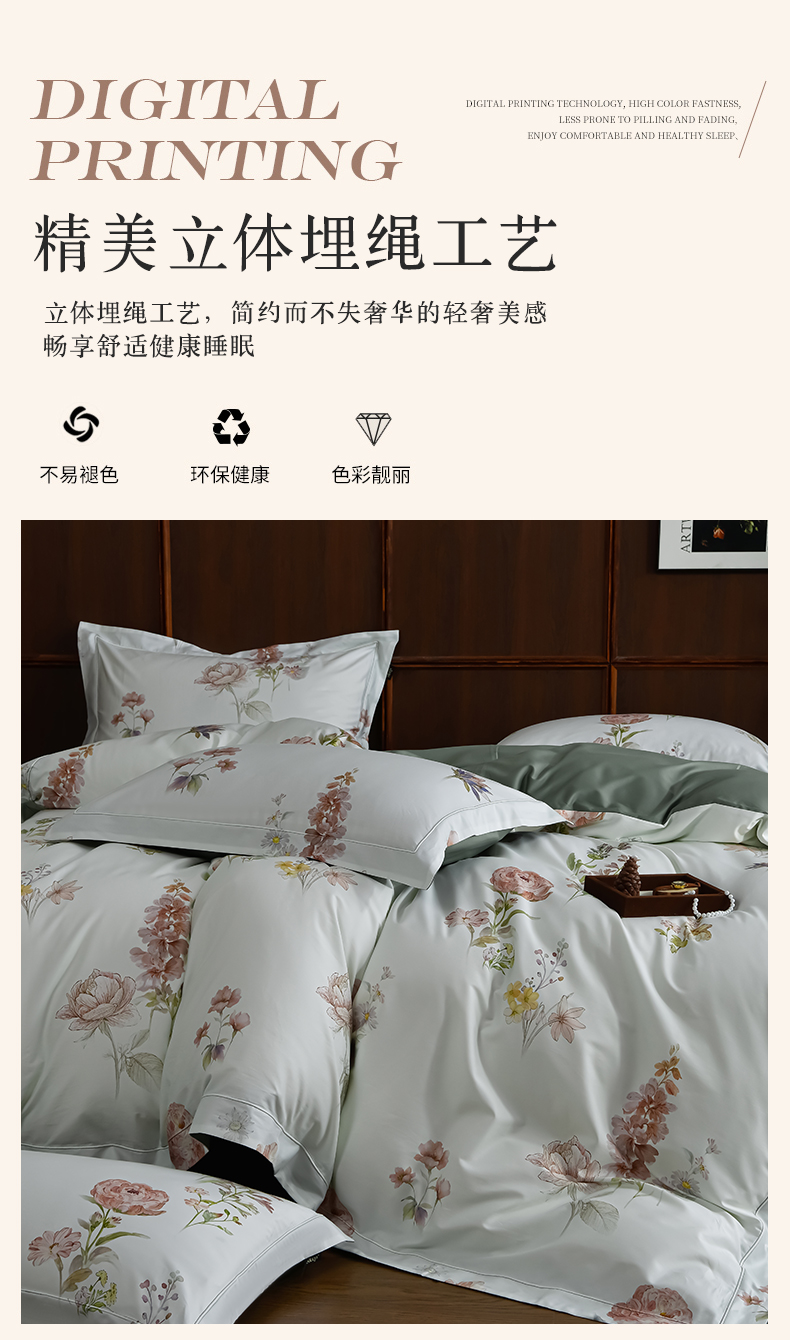 (总)金昱纺 2026新款全棉50S长绒棉数码印花宽边埋绳款四件套(带精美礼盒包装),叶栖-咖,黛秋-粉,花织软梦,摩卡-绿,甜梦花栖,榭风轻眠