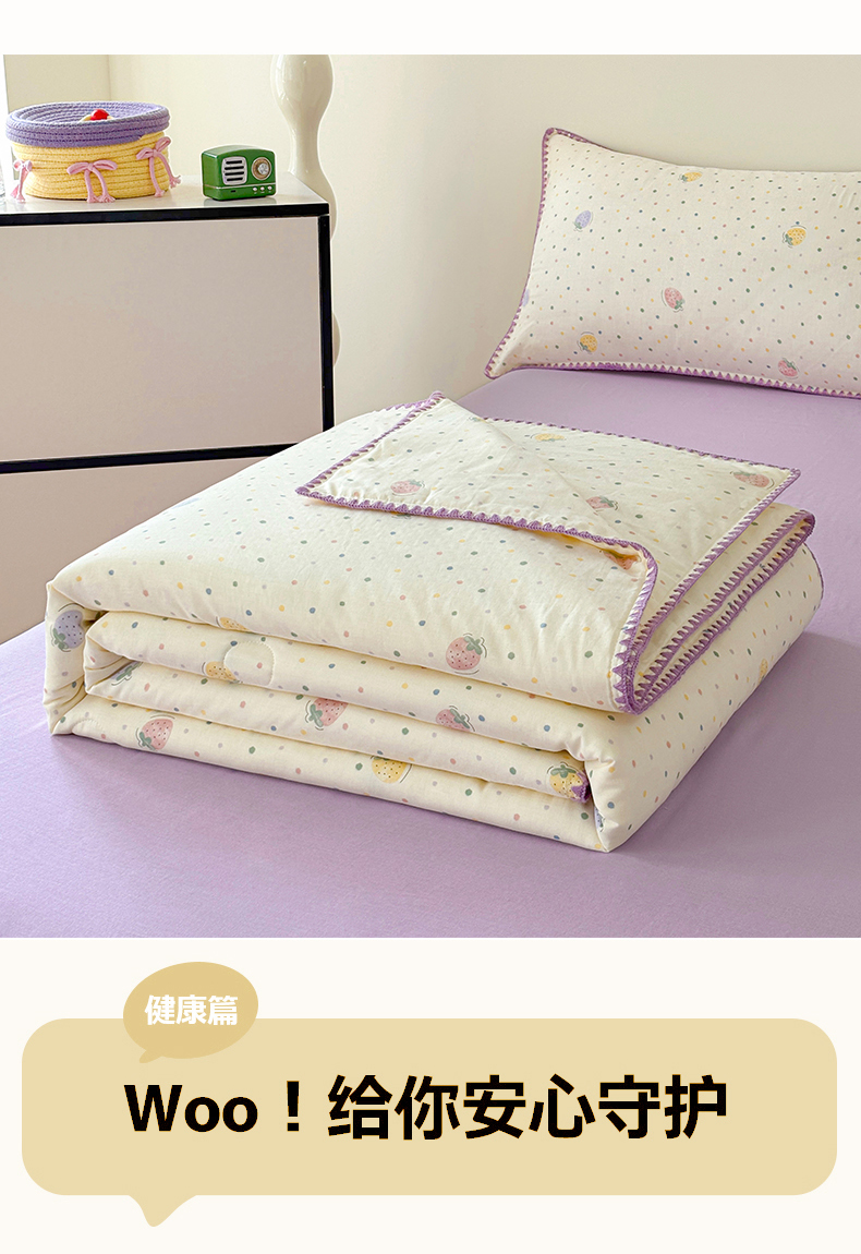 (总)爱她美家纺 2026新款A类全棉有氧双层纱大豆夏被夏凉被空调被四件套,草莓点点,春意,格调-兰,腊肠犬-咖,琉夏-绿,太空熊猫-米,旺旺南瓜,弦上春-紫,樱桃酱-粉,尤克里里-兰