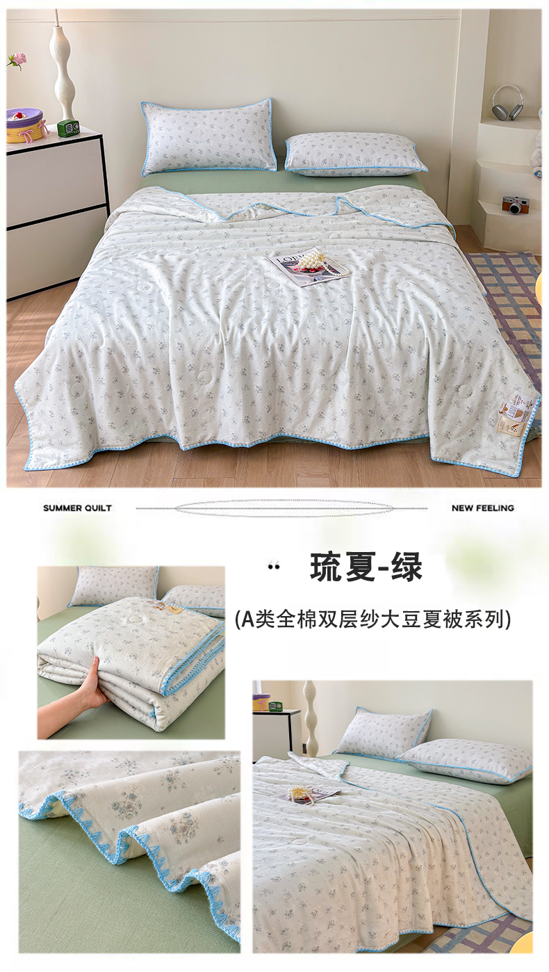 爱她美家纺 2026新款A类全棉有氧双层纱大豆夏被夏凉被空调被四件套 春意