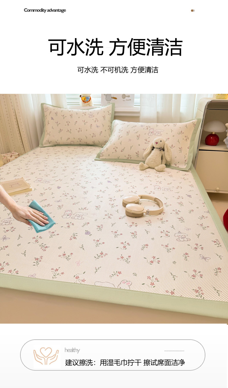 商品名称:慕尚家纺 2026新款清新凉感冰藤席床笠款 顽皮兔