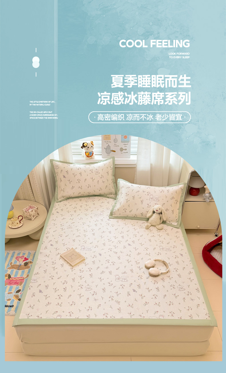 慕尚家纺 2026新款清新凉感冰藤席床笠款 顽皮兔