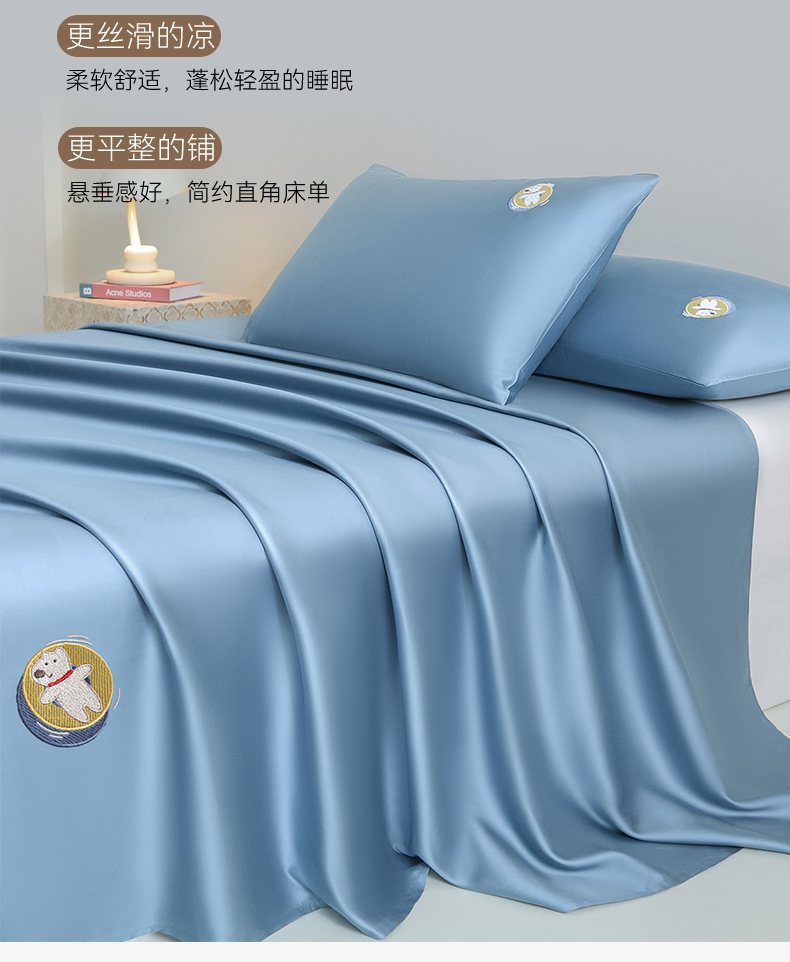 商品名称:DC 2026新款莱赛尔天丝卡通刺绣单品床单 梵高蓝