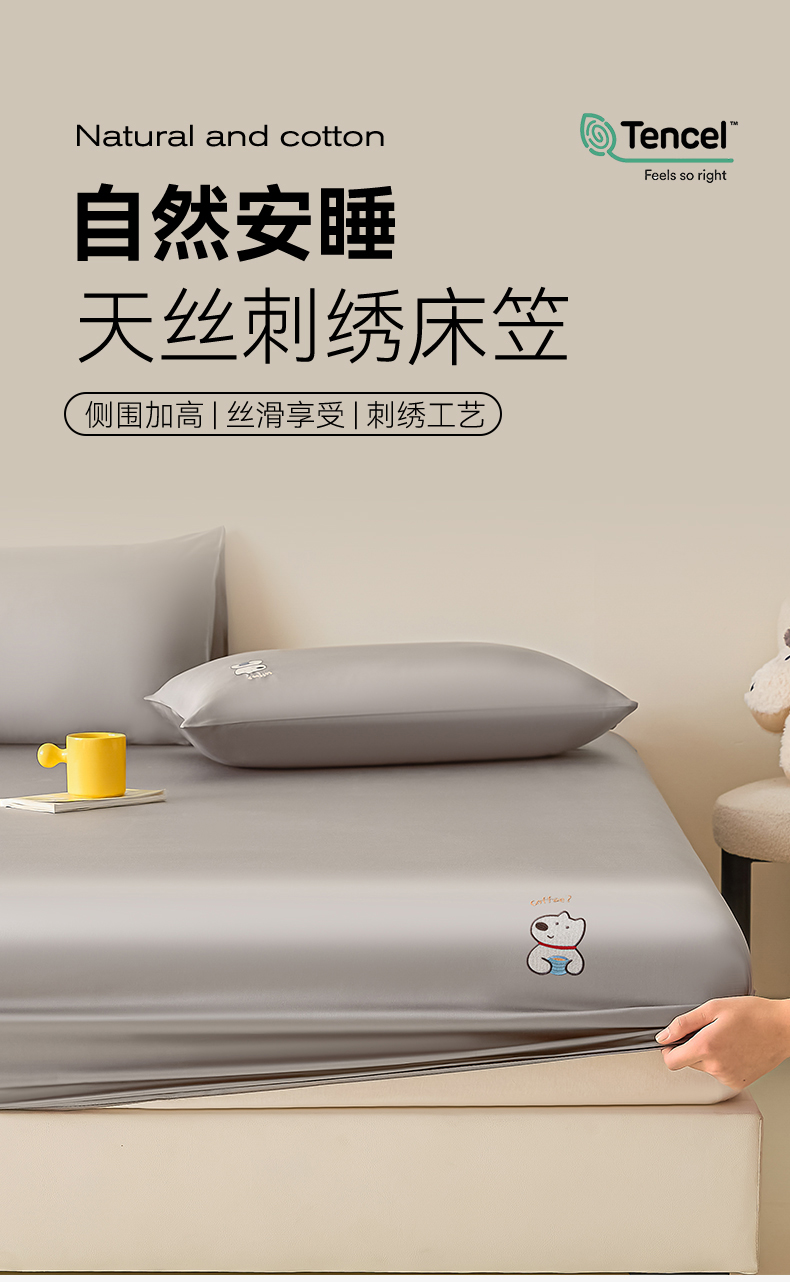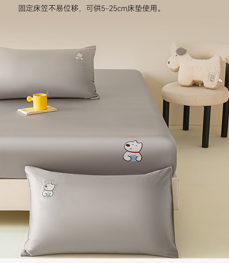 商品名称:DC 2026新款莱赛尔天丝卡通刺绣单品床笠 经典灰