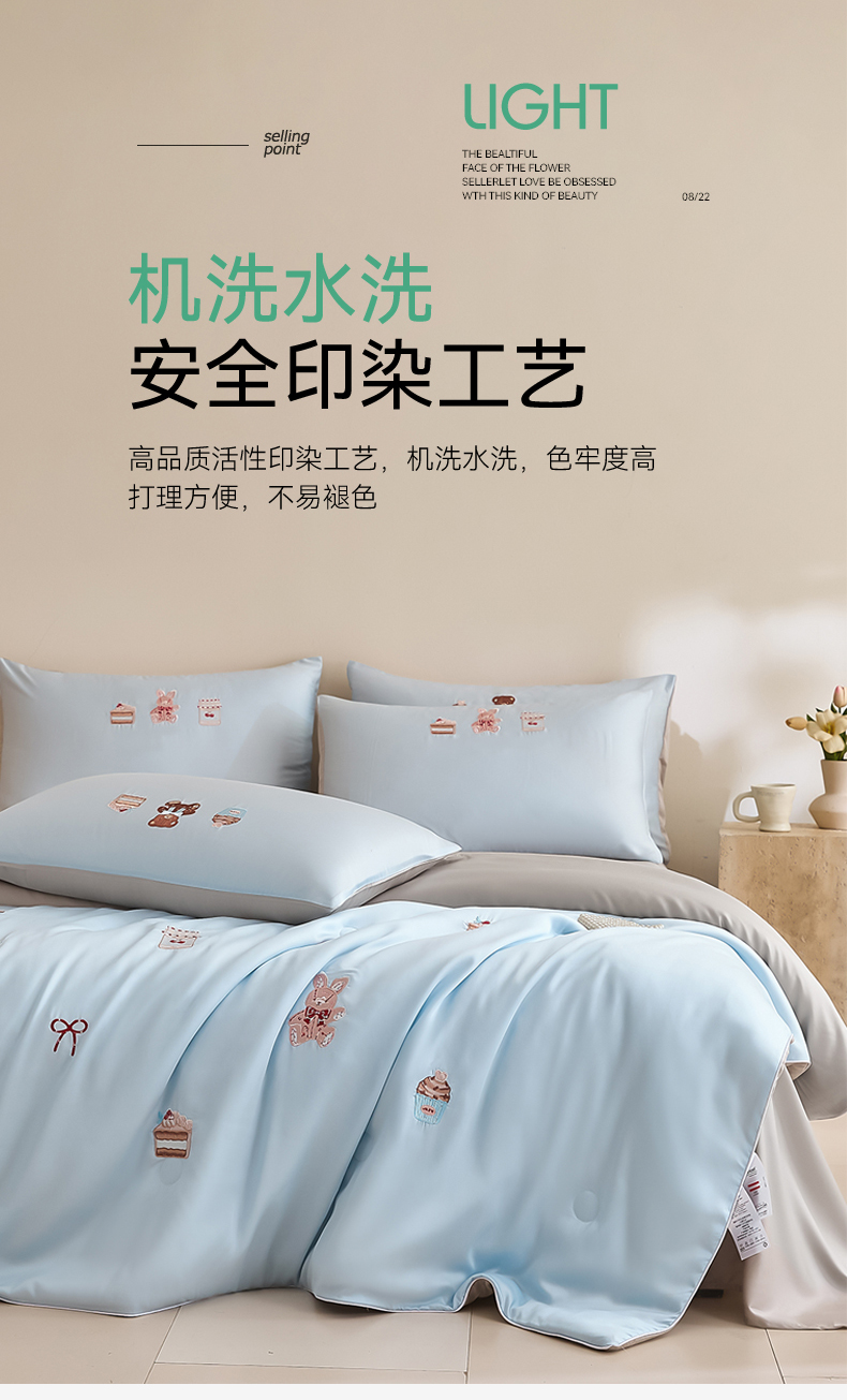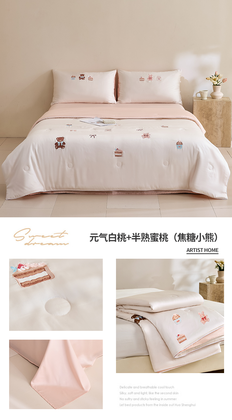 当前位置: 91家纺网 > 商品网购 > 被子 > 夏被 > DC 2026新款A类兰精天丝麻绳平绣系列夏被四件套 婴儿蓝+冰川灰(焦糖小熊)