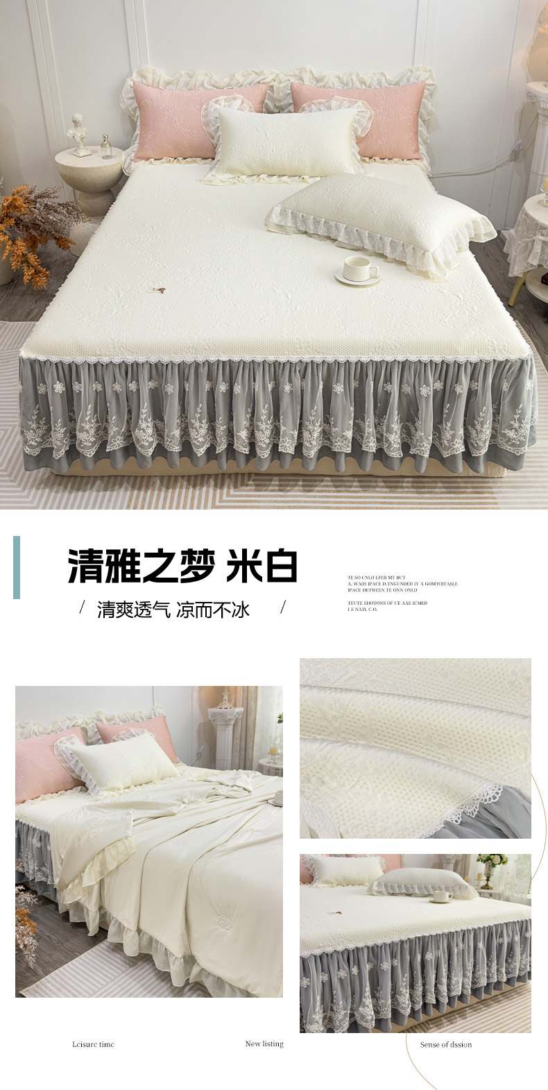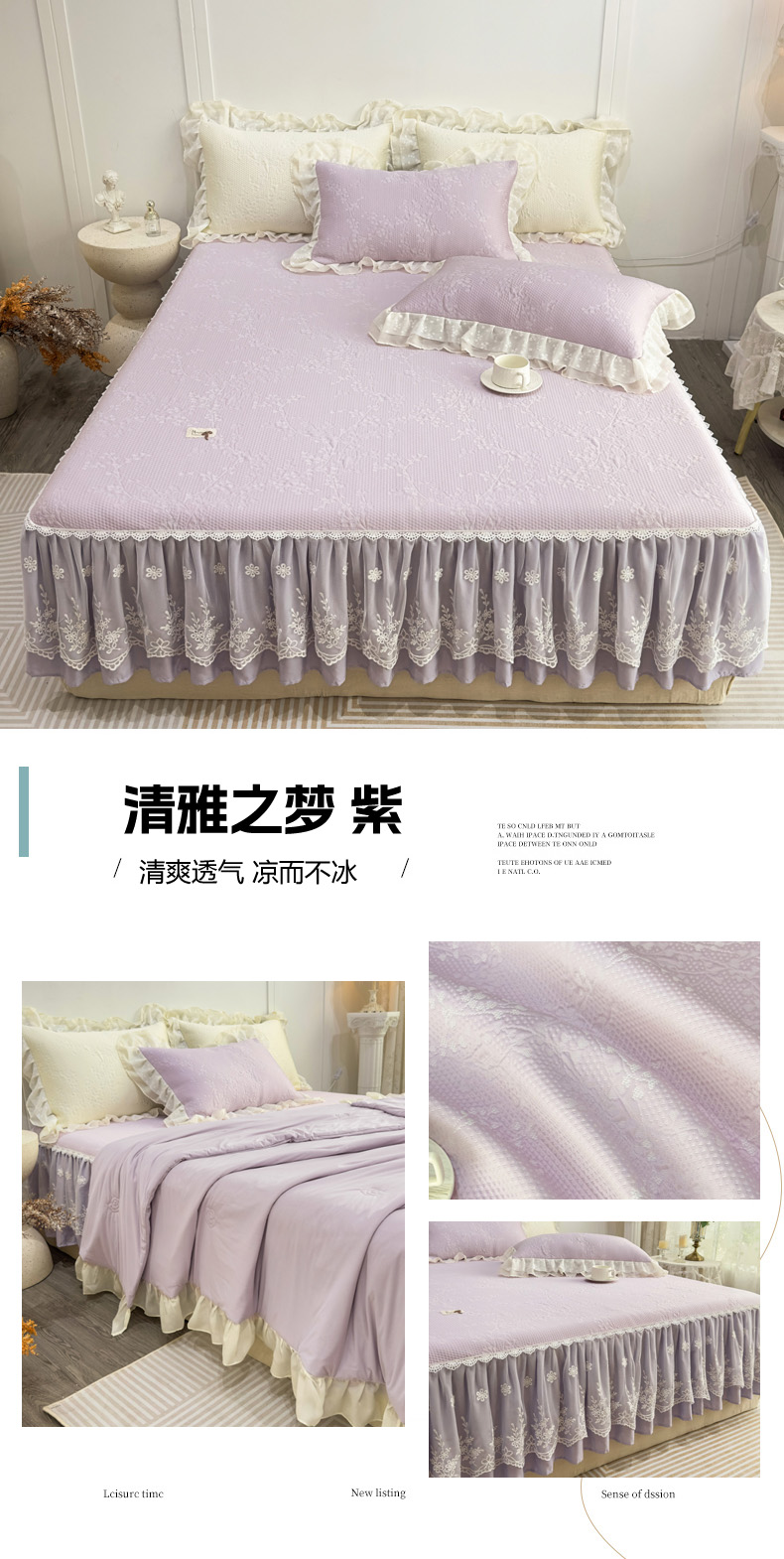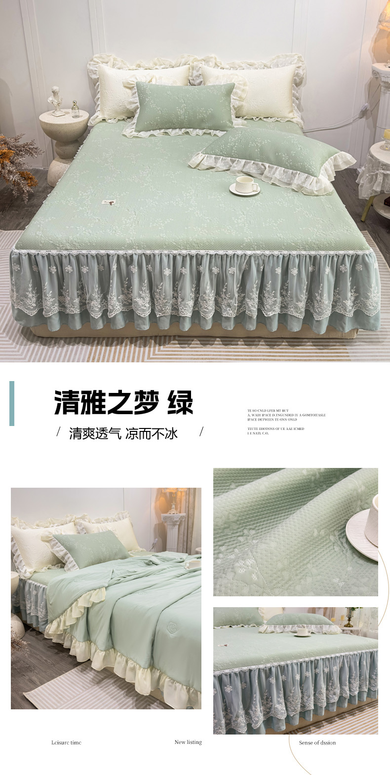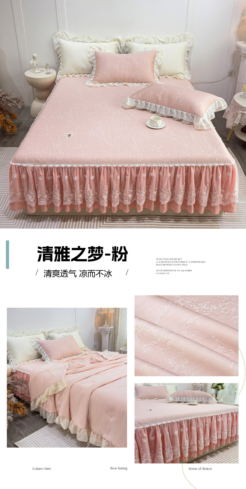 当前位置: 91家纺网 > 商品网购 > 床品套件 > 四件套 > 夏被四件套 > (总)菊上家纺 2026新款PE凉感床裙款凉席夏被夏凉被空调被四件套-清雅之梦