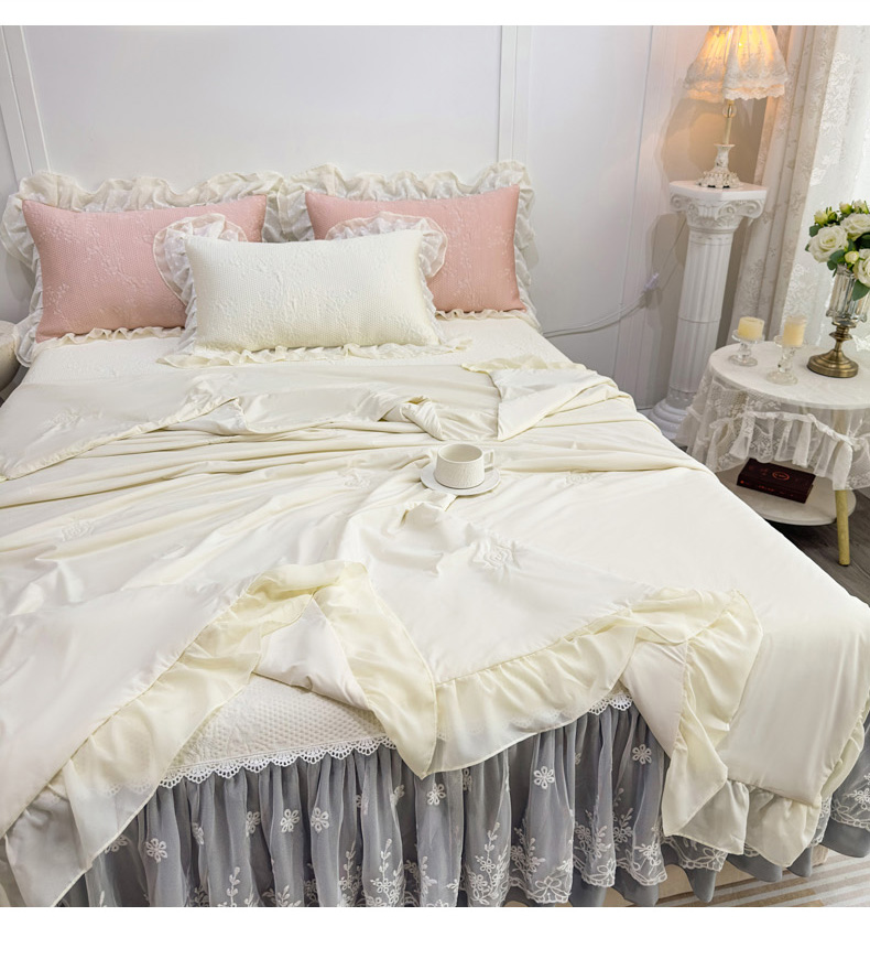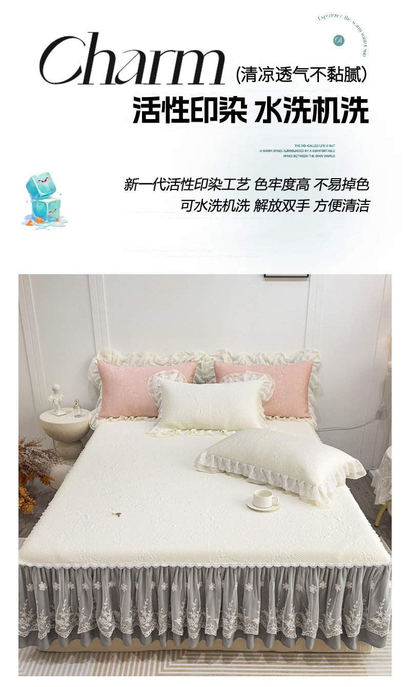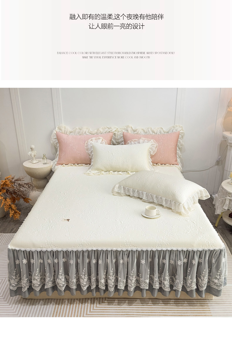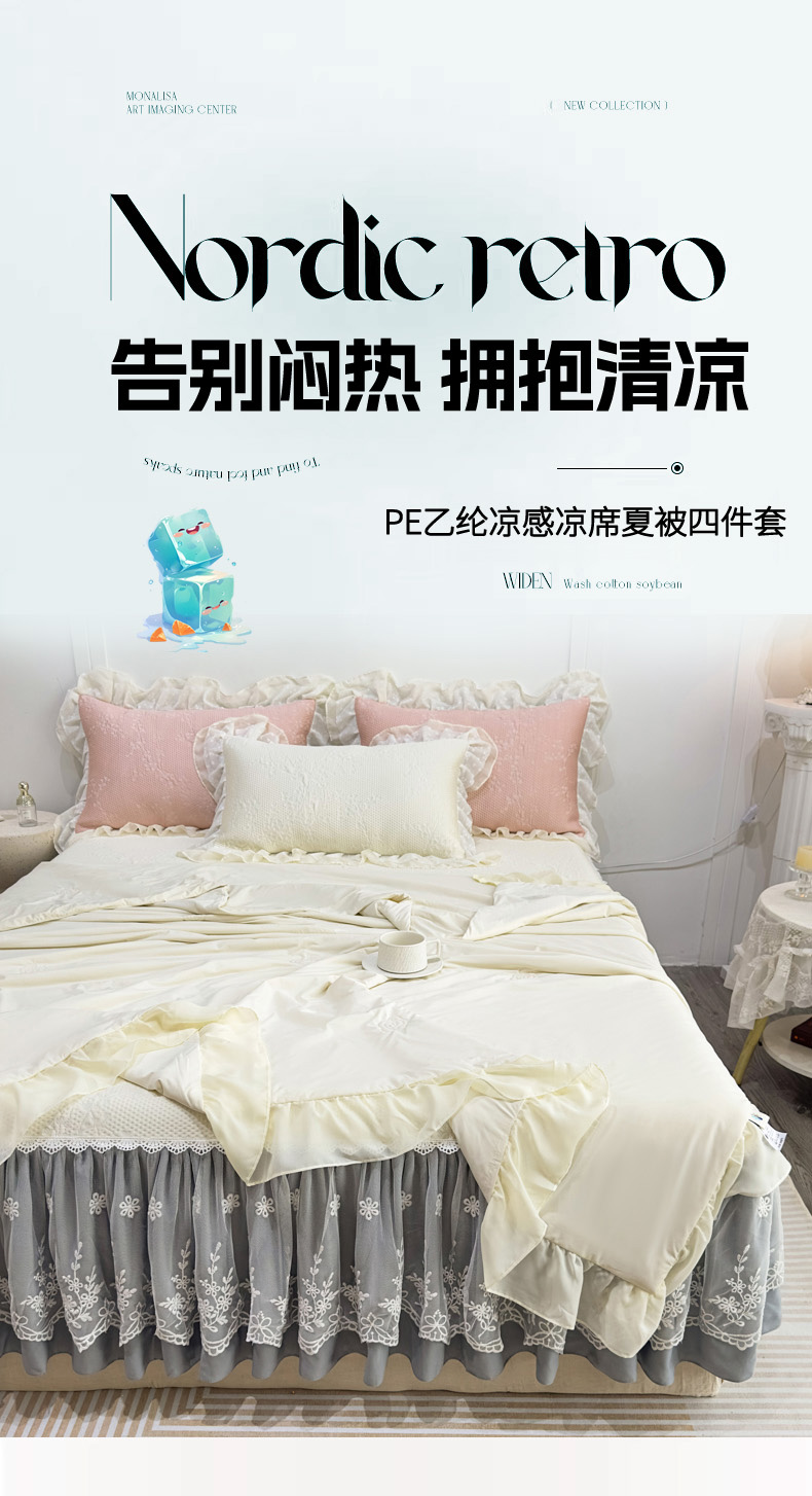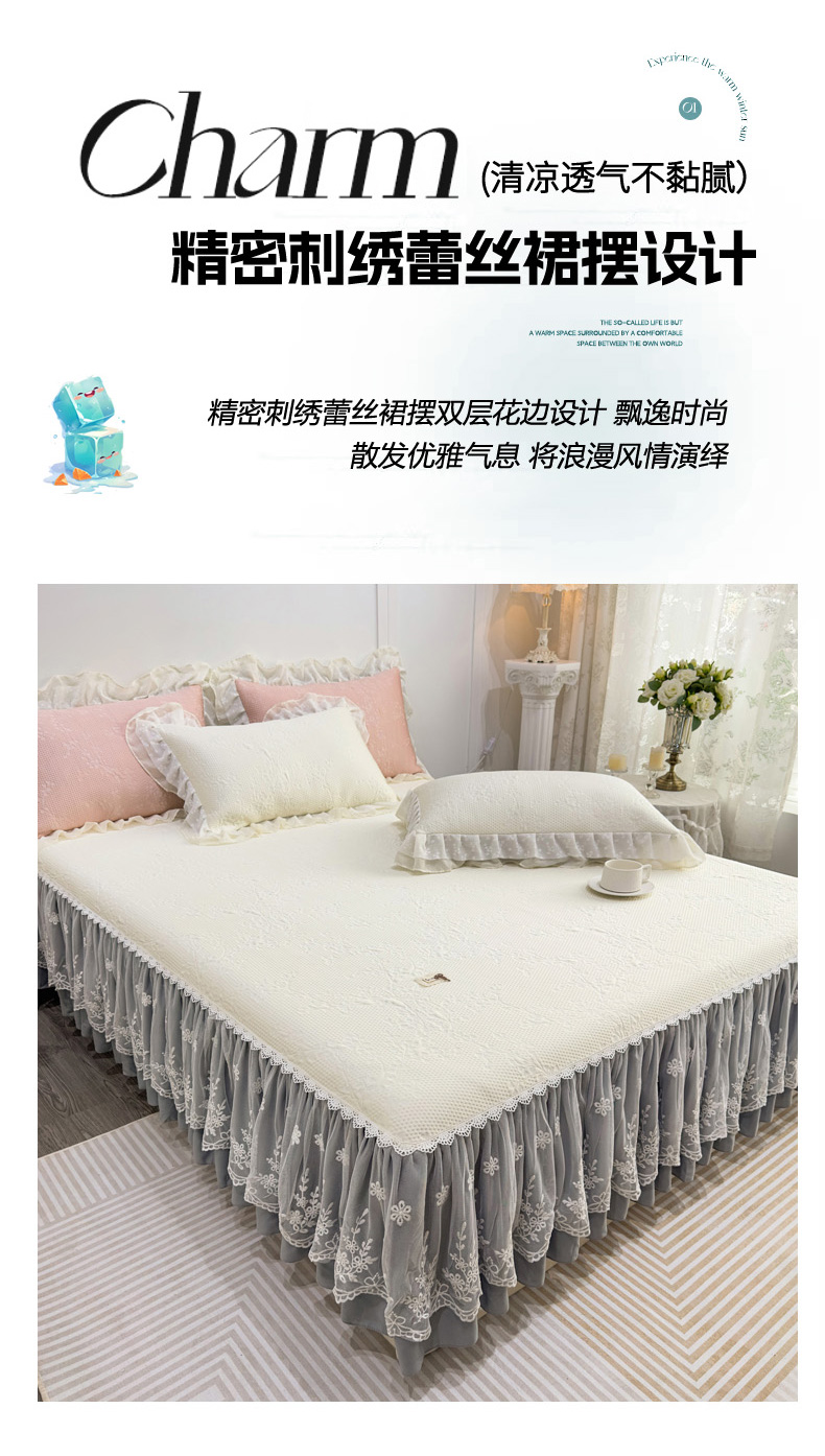 当前位置: 91家纺网 > 商品网购 > 床品套件 > 四件套 > 夏被四件套 > (总)菊上家纺 2026新款PE凉感床裙款凉席夏被夏凉被空调被四件套-清雅之梦