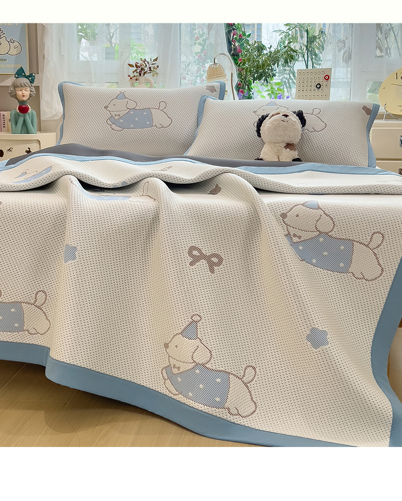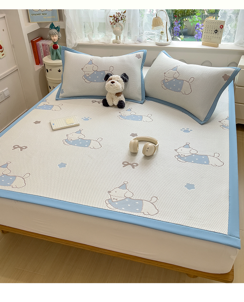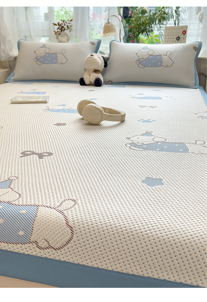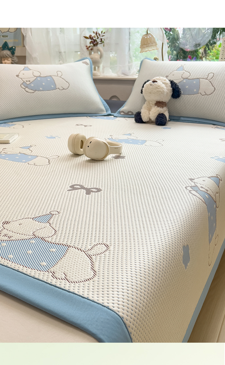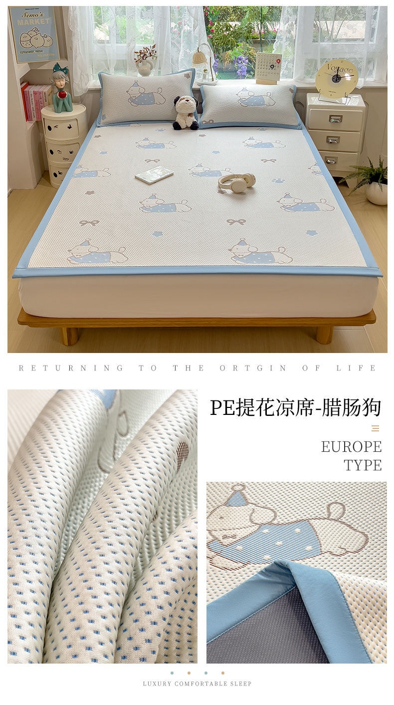 • 91家纺网 家纺一手货源 找家纺 雯豆家纺 2026新款PE中分子凉感凉席条席三件套加厚三明治款复合卡通提花凉席 PE提花凉席-腊肠狗