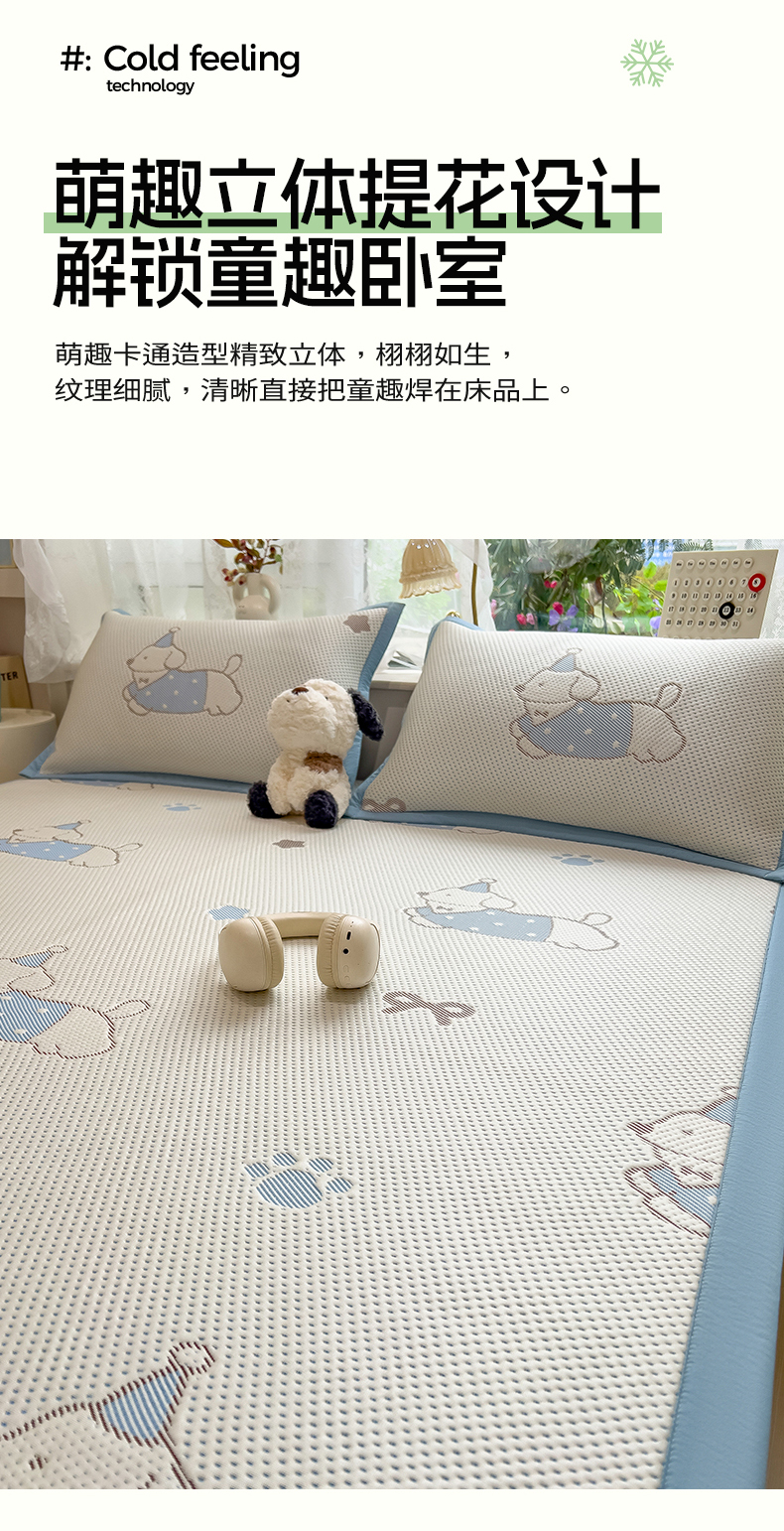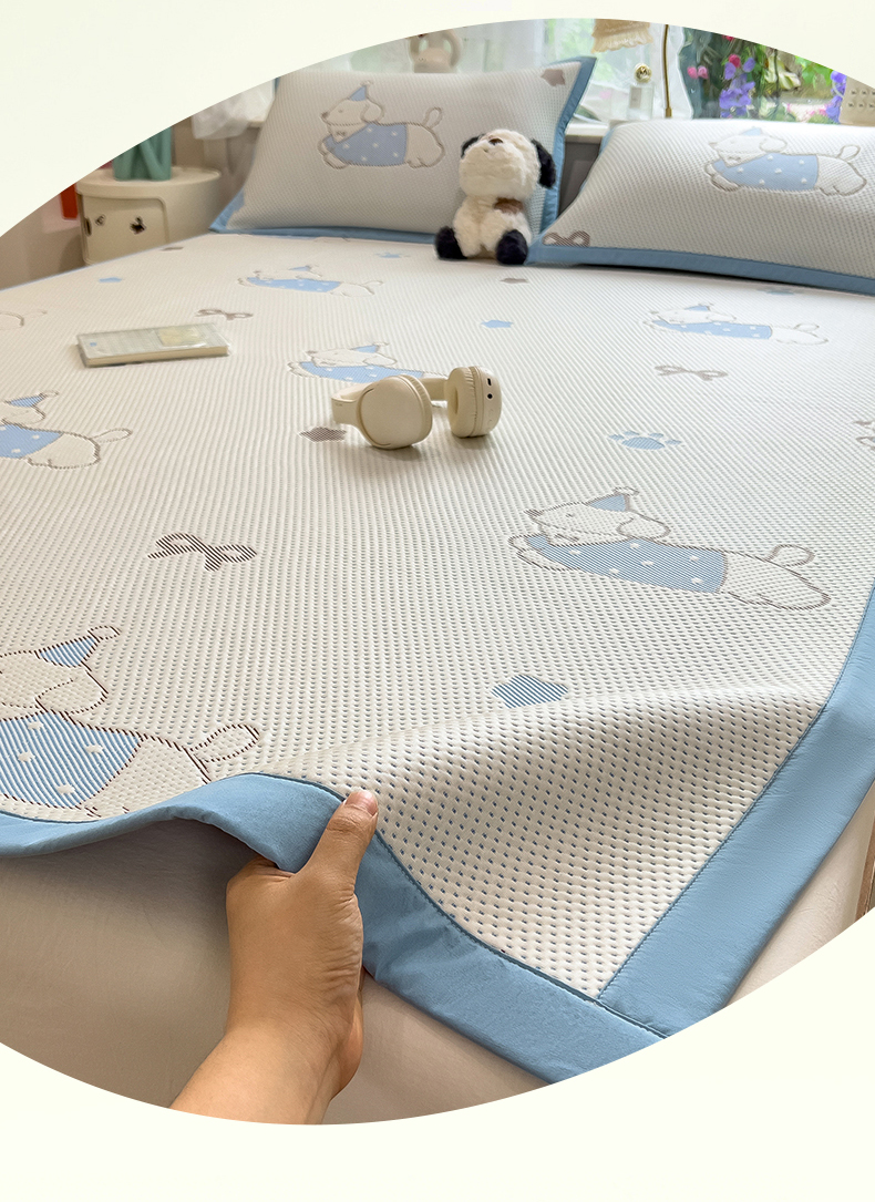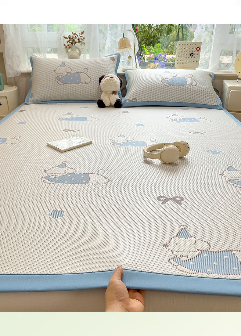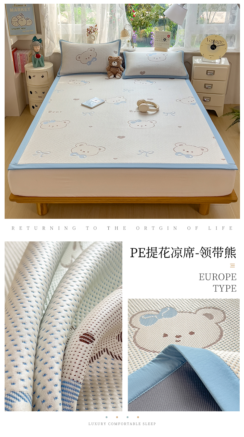 (总)雯豆家纺 2026新款PE中分子凉感凉席条席三件套加厚三明治款复合卡通提花凉席,PE提花凉席-领带熊,PE提花凉席-北极熊,PE提花凉席-蝴蝶结,PE提花凉席-腊肠狗,PE提花凉席-奶萌狗,PE提花凉席-甜心草莓,PE提花凉席-郁金香