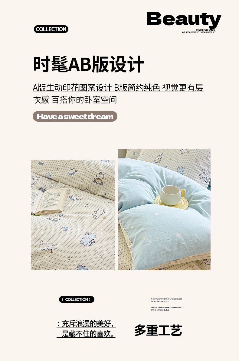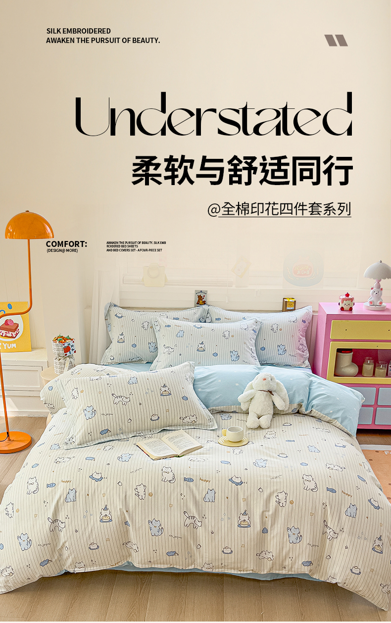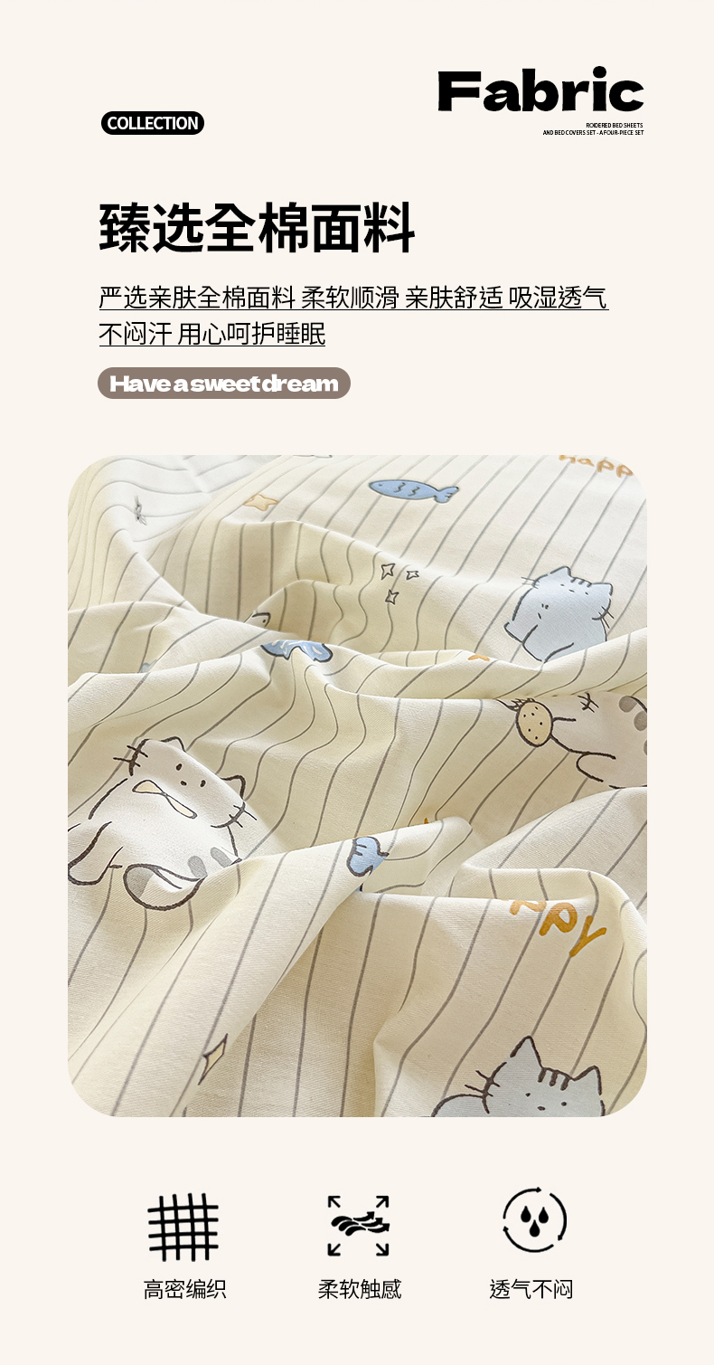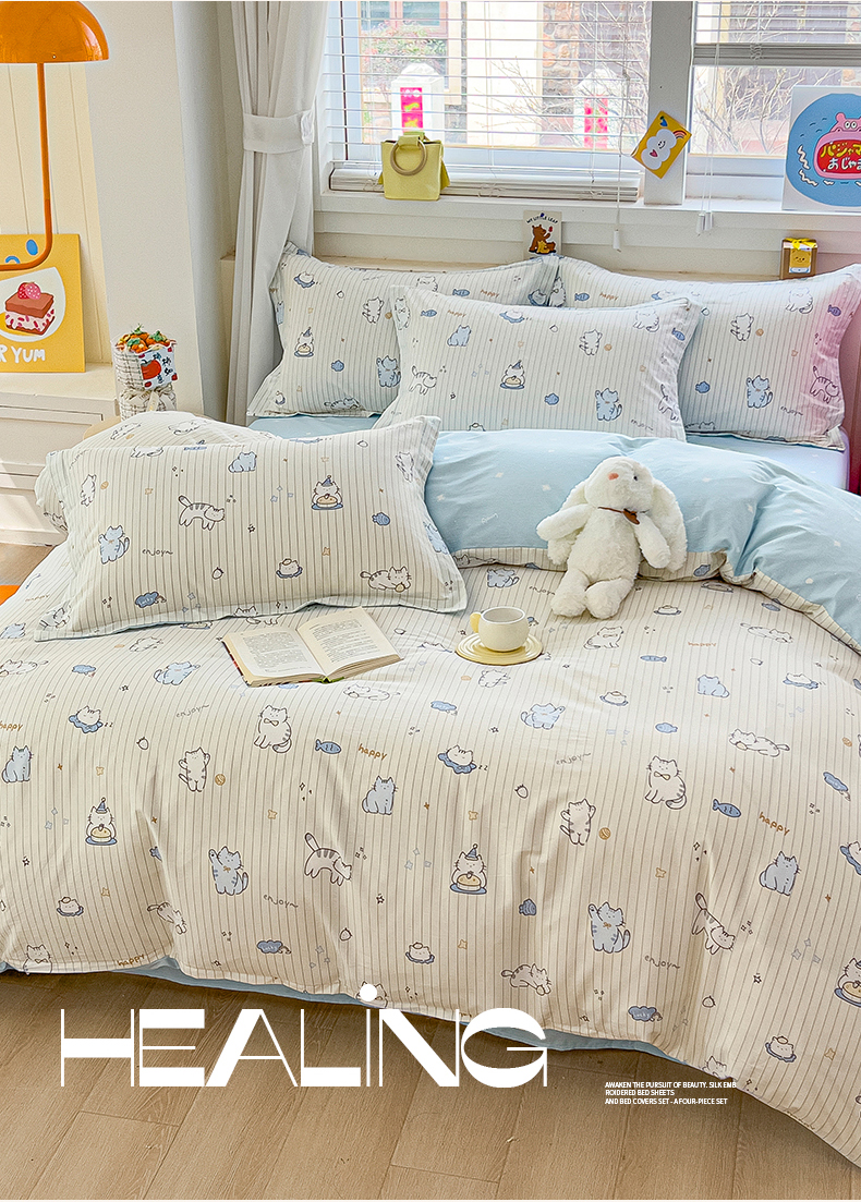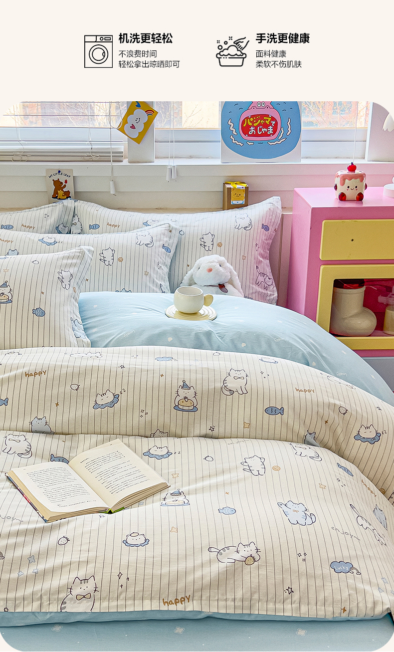 当前位置: 91家纺网 > 商品网购 > 床品套件 > 四件套 > 全棉普通四件套 > 琪琪阁家纺 2026新款加厚全棉纯棉四件套 蛋糕猫咪