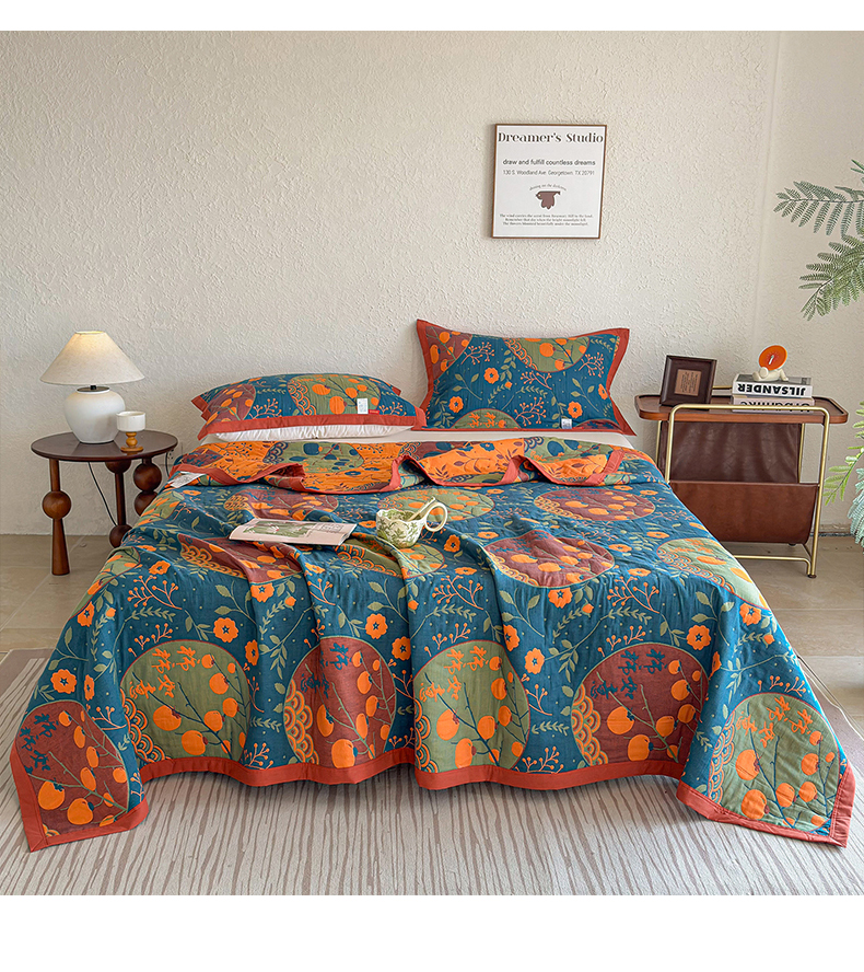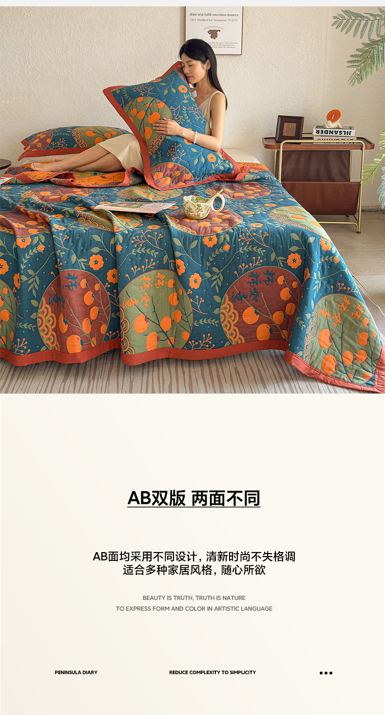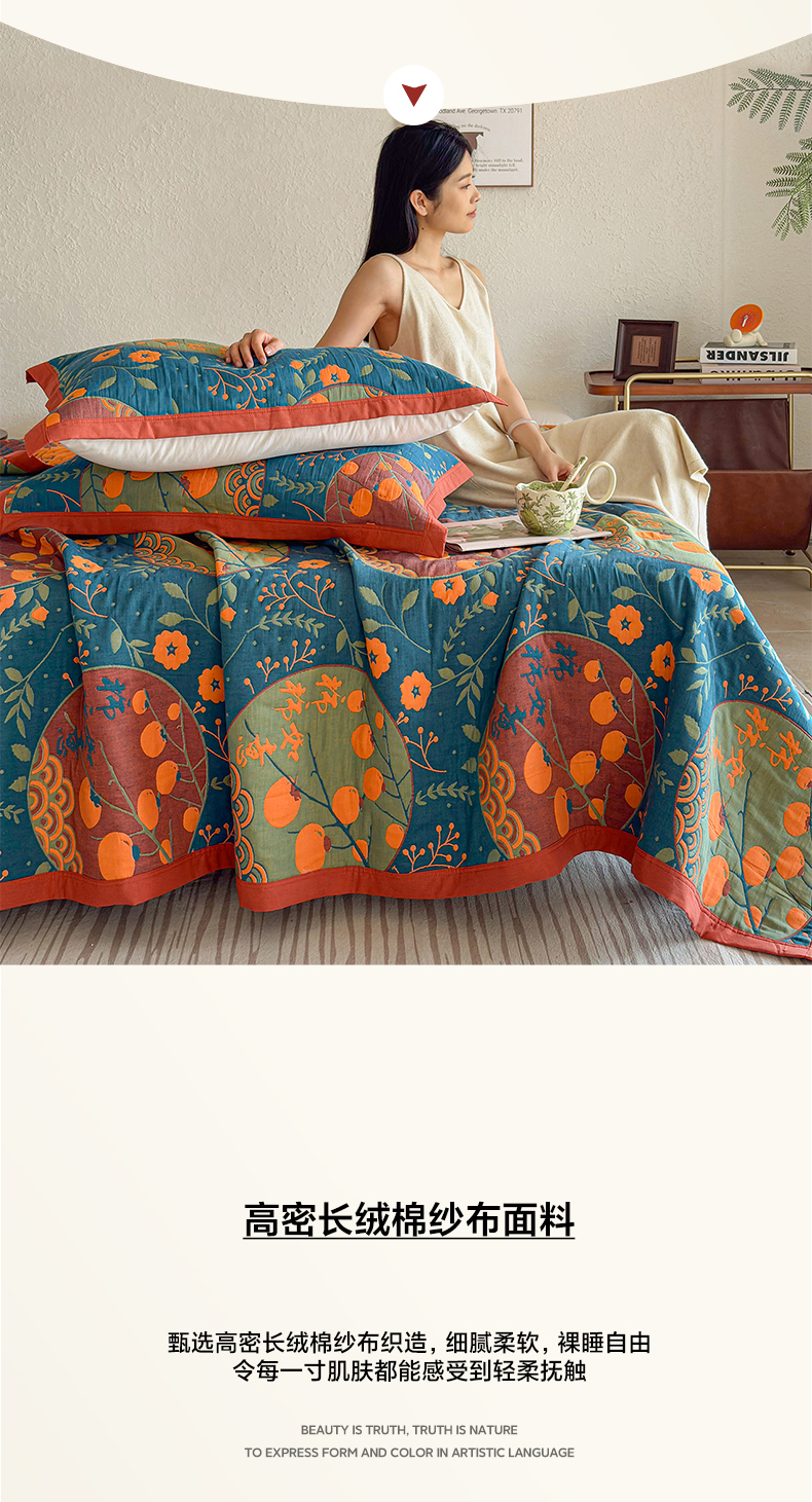 棠薇家纺 2026新款纱布盖毯长绒棉纱布毛巾被夏被单双人棉纱盖毯毛巾毯夏季夏凉被空调被毯子可铺可盖床盖 柿柿如意