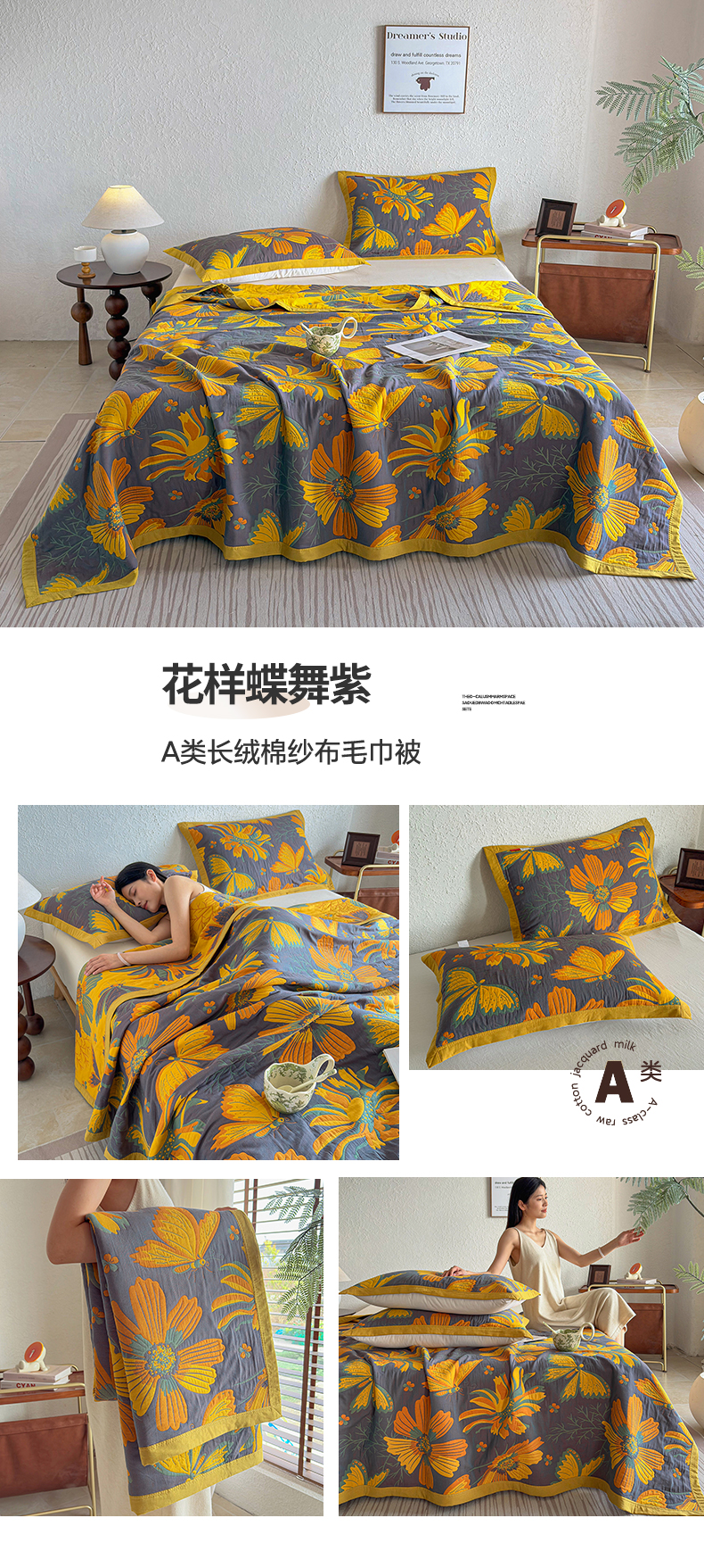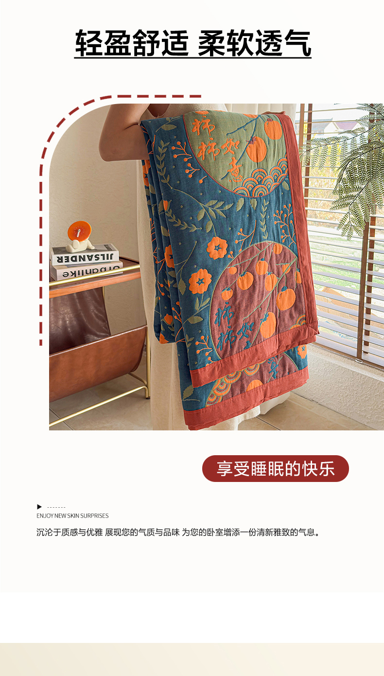 • 91家纺网 家纺一手货源 找家纺 棠薇家纺 2026新款纱布盖毯长绒棉纱布毛巾被夏被单双人棉纱盖毯毛巾毯夏季夏凉被空调被毯子可铺可盖床盖 柿柿如意