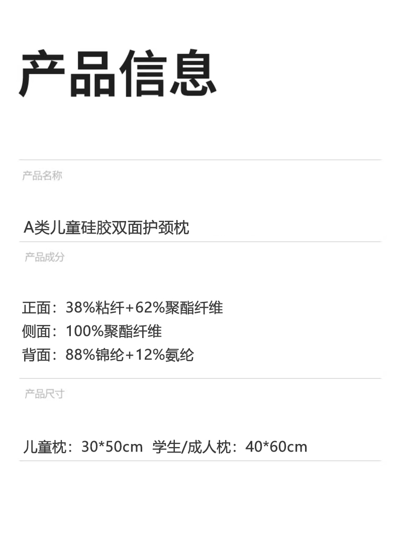 商品名称:(总)贵夫人 2026新款A类儿童硅胶双面护颈枕枕头枕芯