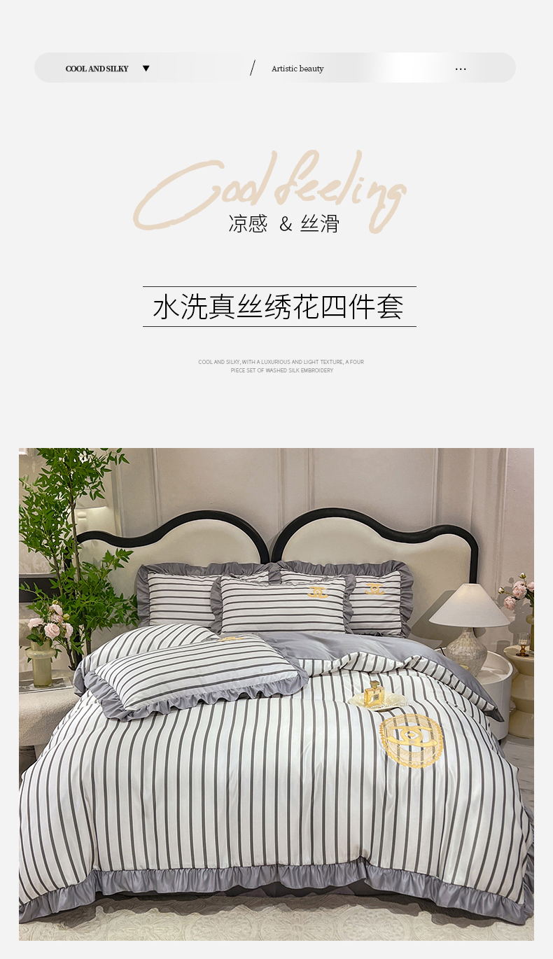 当前位置: 91家纺网 > 商品网购 > 床品套件 > 四件套 > 其它四件套 > 经年 2026新款水洗真丝韩版四件套 浅夏-灰
