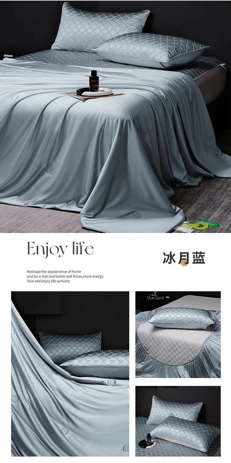 商品名称:阿那亚 2026新款冰萃凉感硅胶凉席三件套夏被四件套 冰月蓝