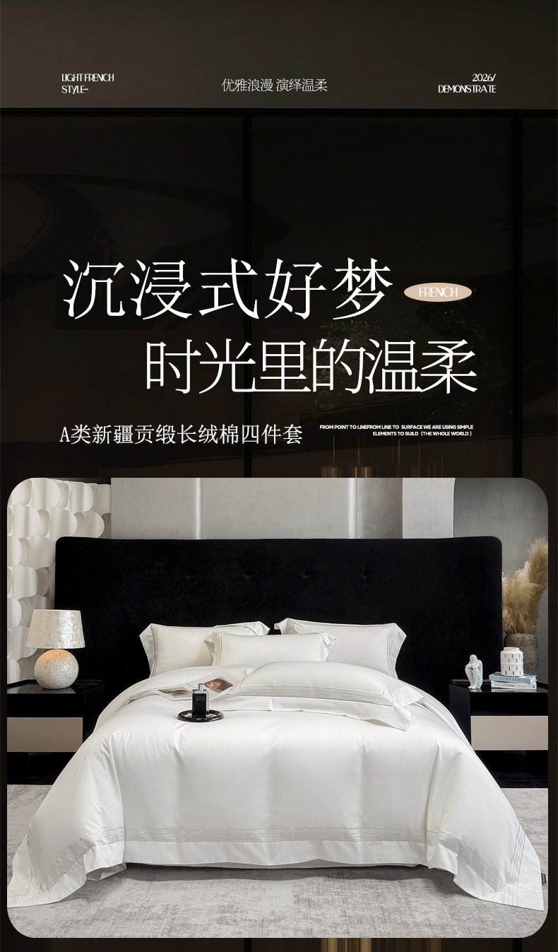 当前位置: 91家纺网 > 商品网购 > 床品套件 > 四件套 > 长绒棉四件套 > 星蕴家纺 2026新款贡缎新疆长绒棉四件套-千寻 千寻贵族白