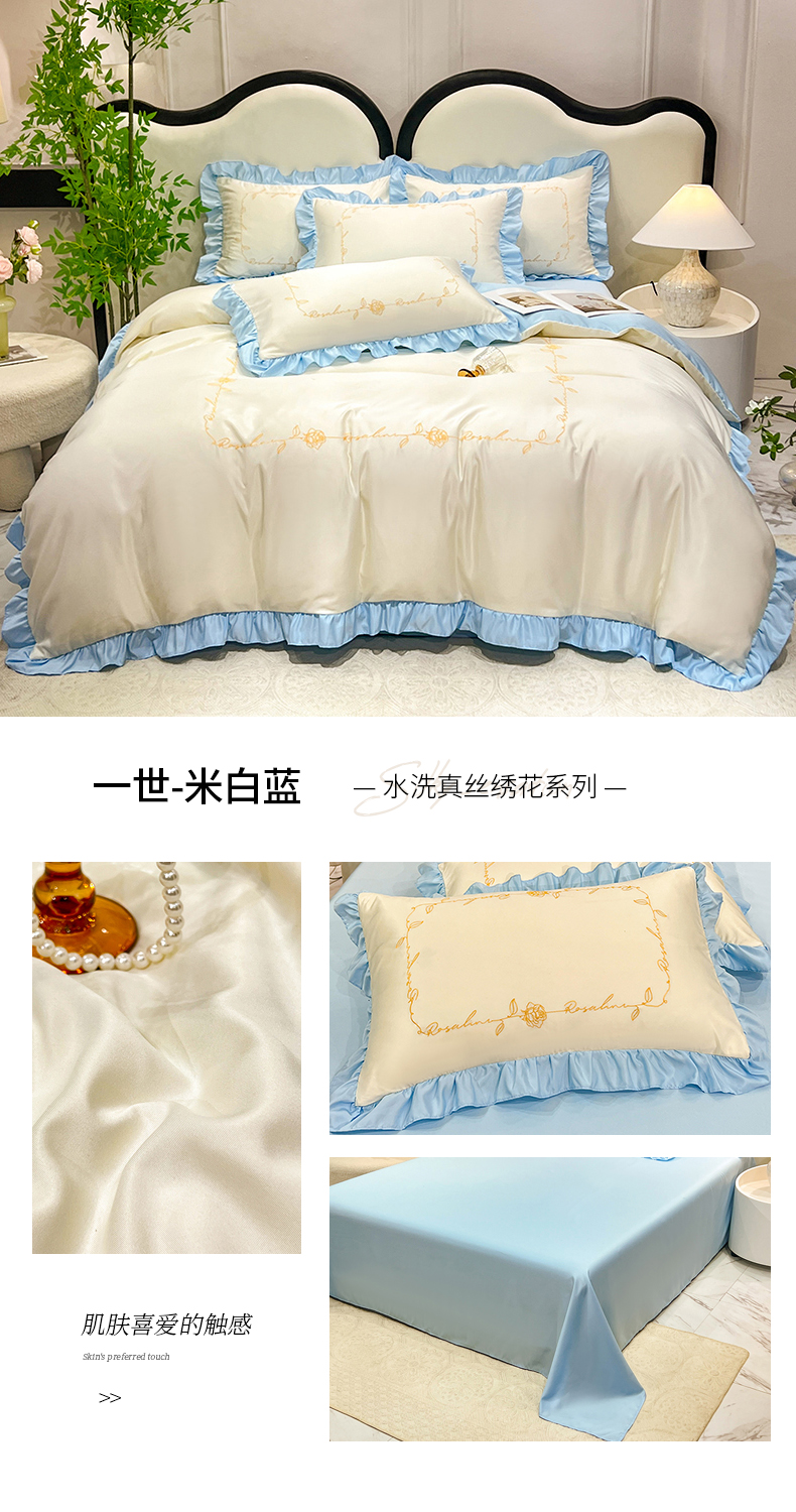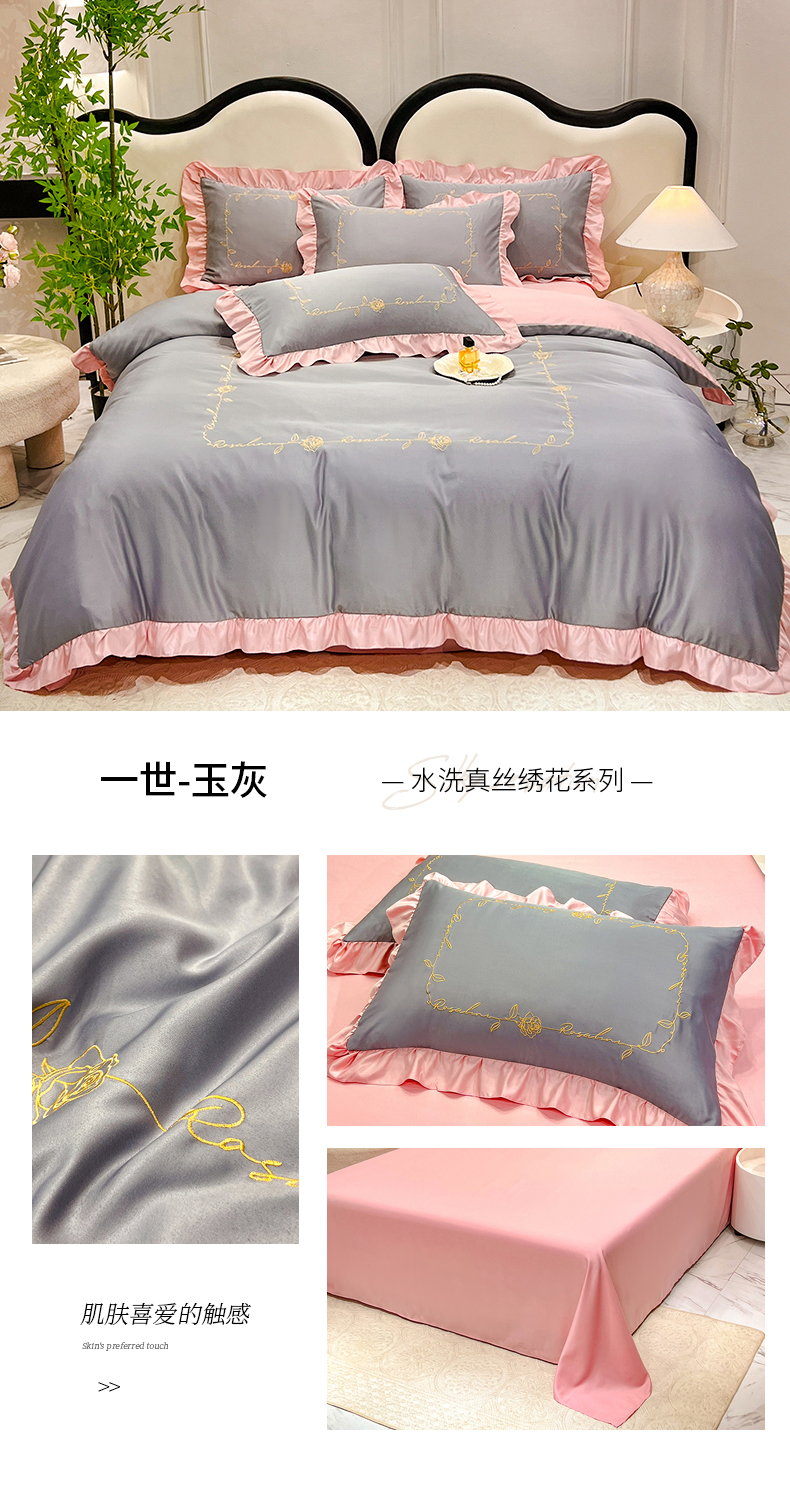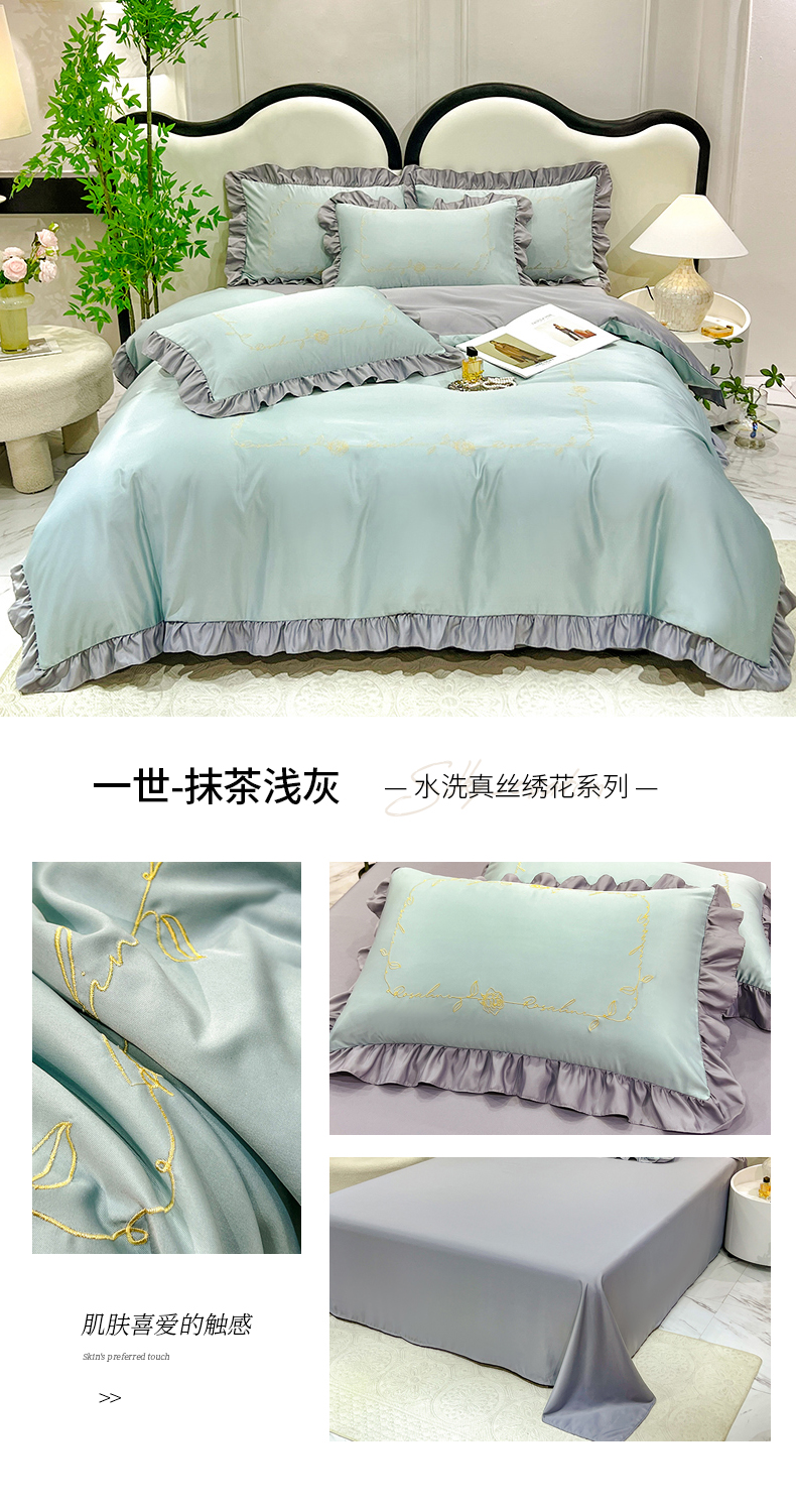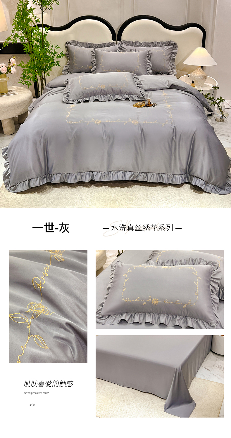 (总)新19 经年2025年水洗真丝冰丝天丝韩版四件套直播爆款 一世系列,一世-抹茶浅灰,一世-灰,一世-玉灰,一世-米白蓝,一世-蓝灰,一世-香槟
