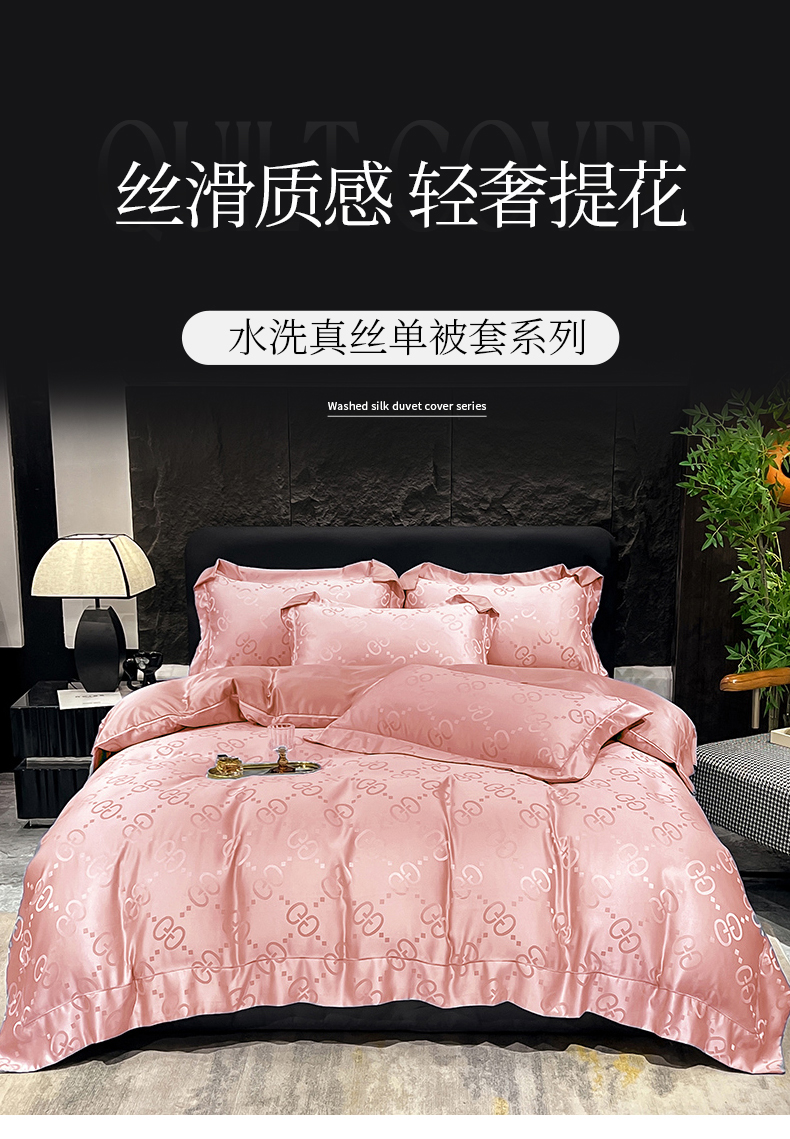 商品名称:经年 2026新款水洗真丝提花单被套被套单件 洛克-粉玉