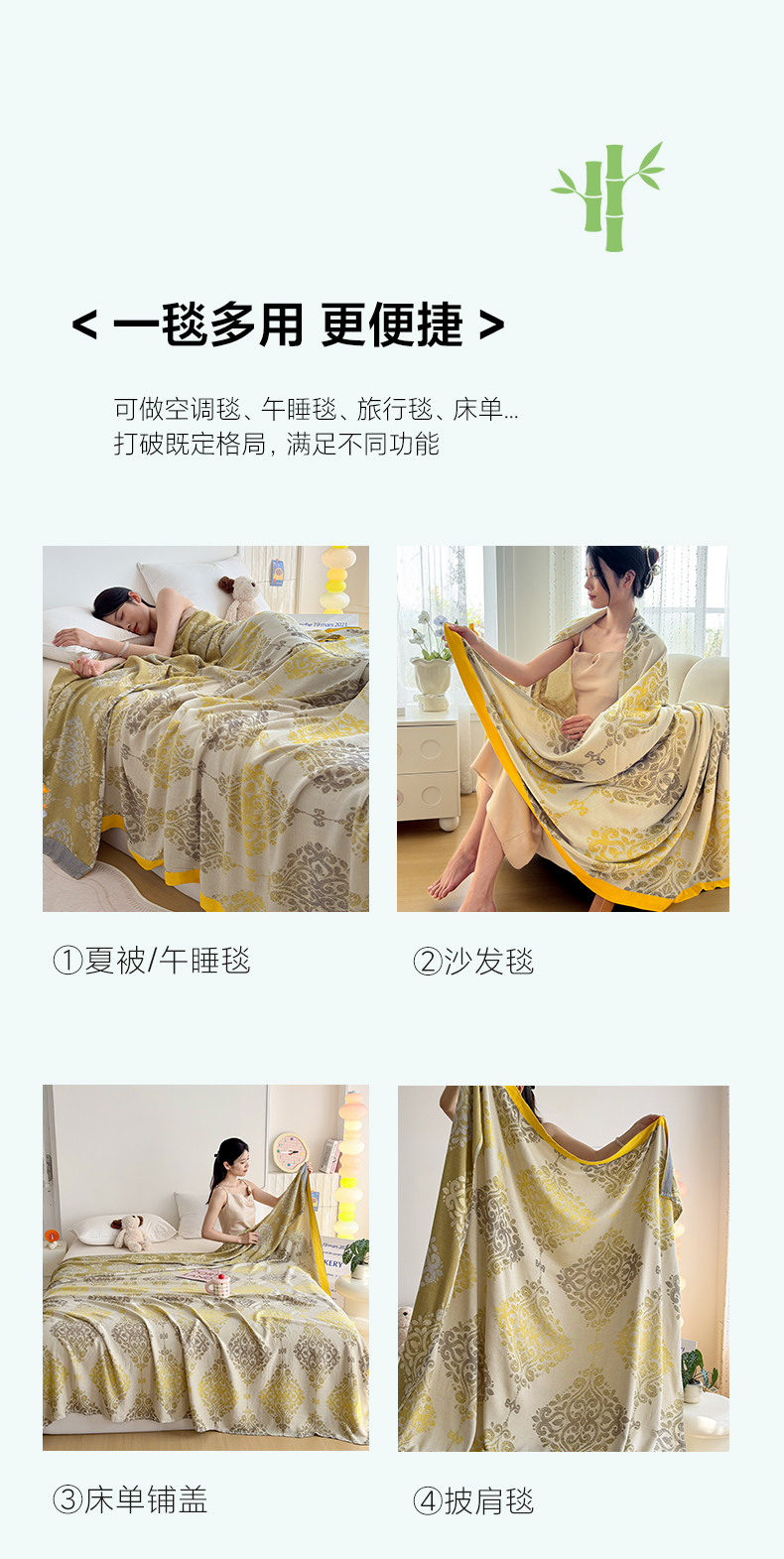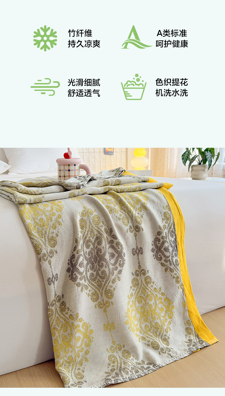 商品名称:棠薇家纺 2026新款竹纤维毯子冷感毯毛巾被柔滑多功能夏凉毯盖毯纱发毯办公室午休毯 巴洛克