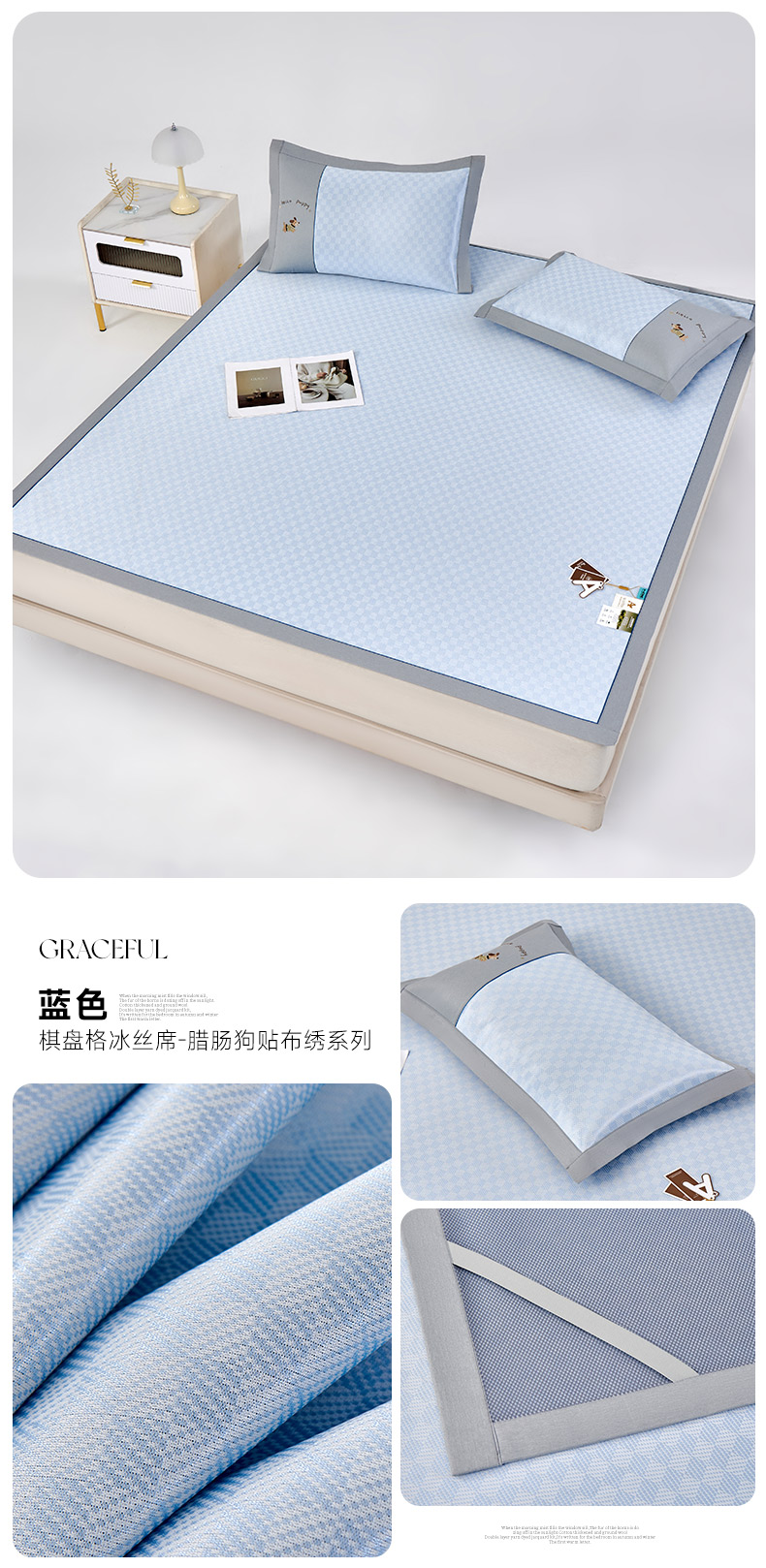 当前位置: 91家纺网 > 商品网购 > 床上用品 > 凉席 > 冰丝席 > (总)小牛席业 2026新款棋盘格冰丝席(腊肠狗贴布绣)凉席三件套-床席款
