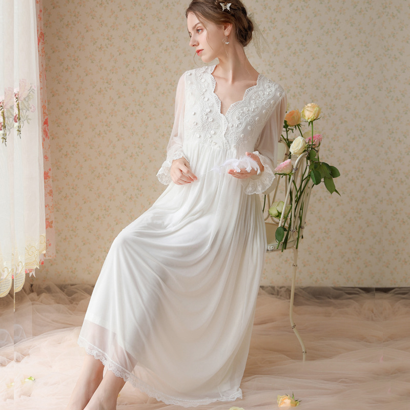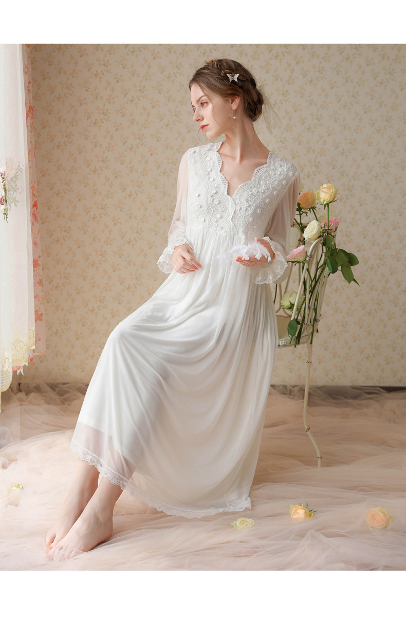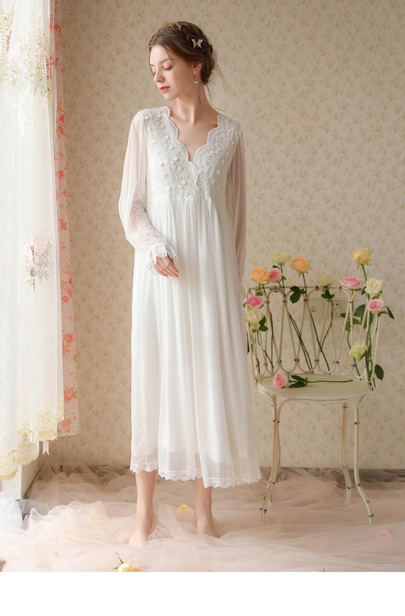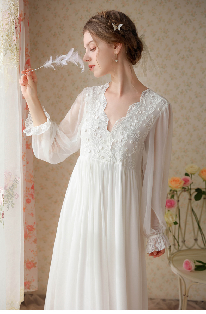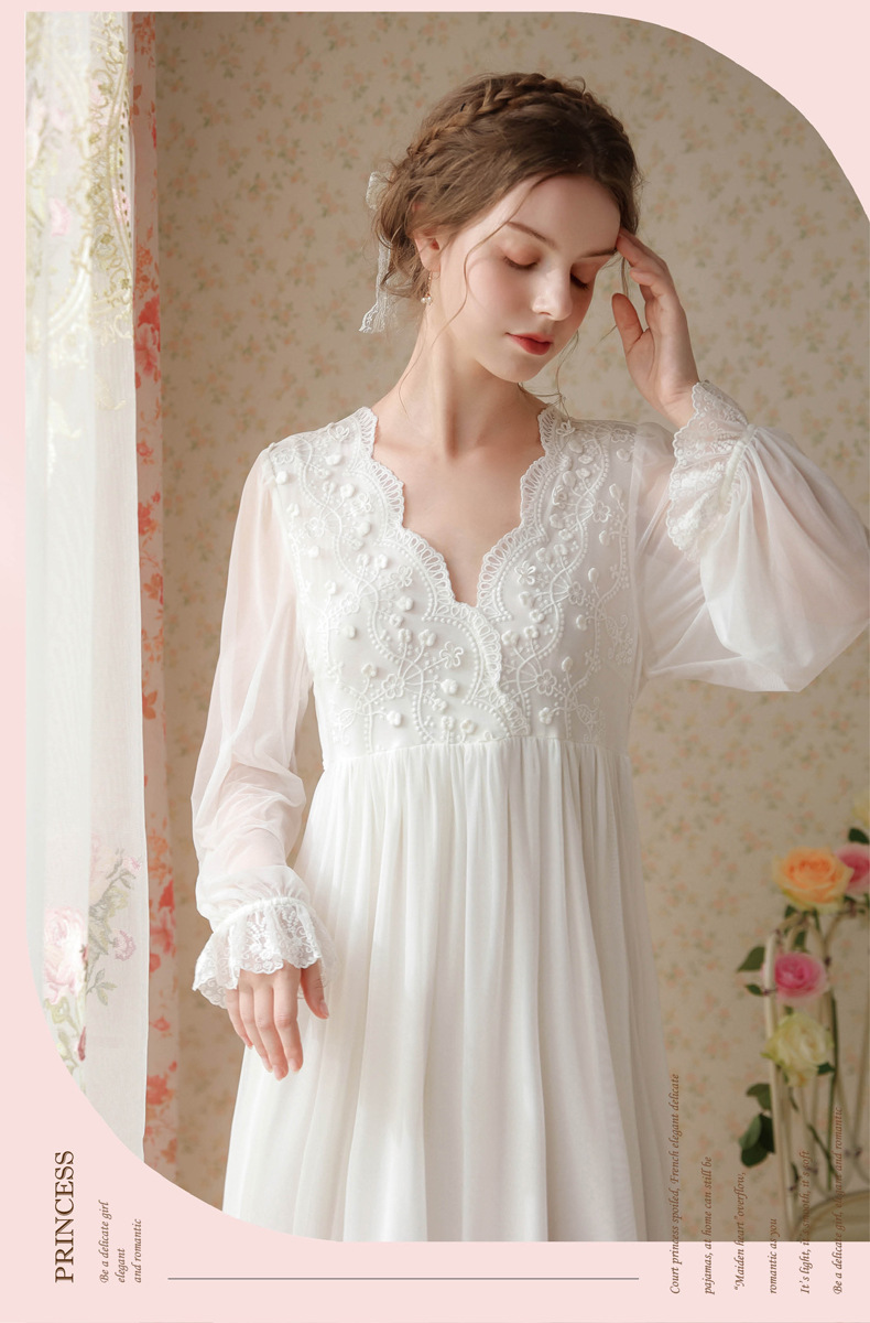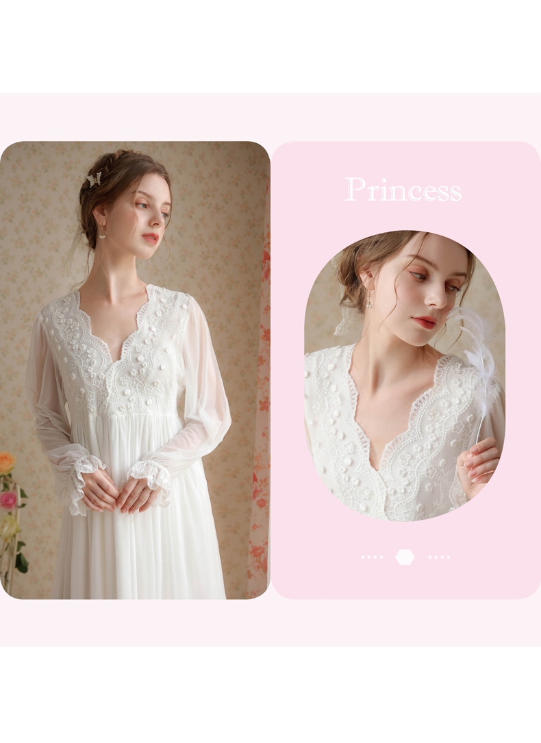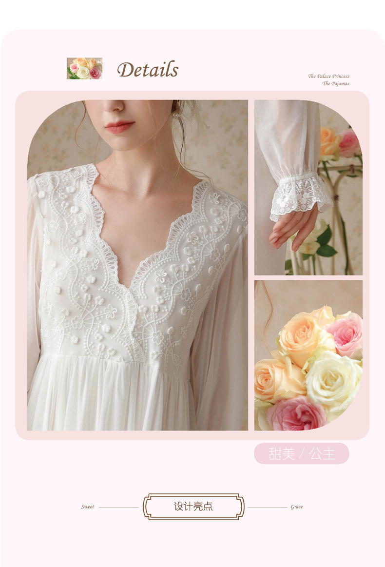 商品名称:(总)洛兰沙家居馆 2026新款睡衣宫廷风少女甜美公主法式长裙春秋蕾丝跨境家居服长款睡裙