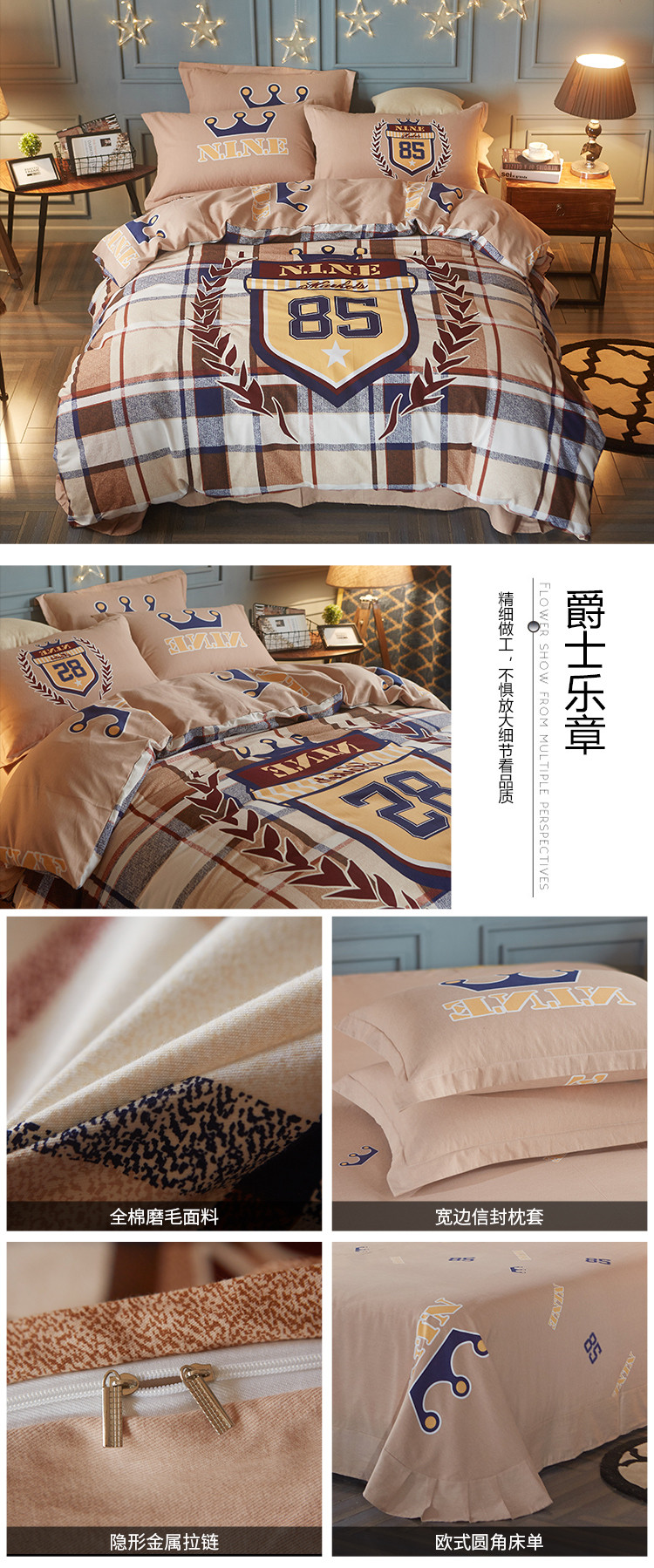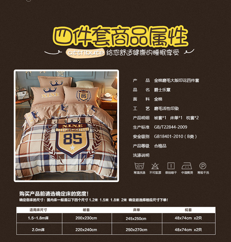 商品名称:芃成家纺 2017平网全棉四件套 爵士乐章
