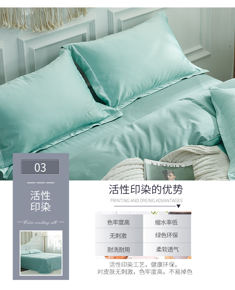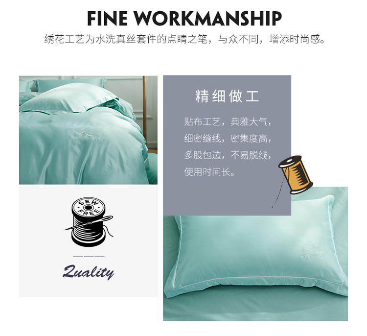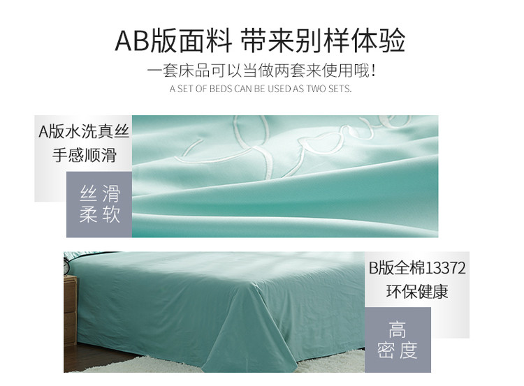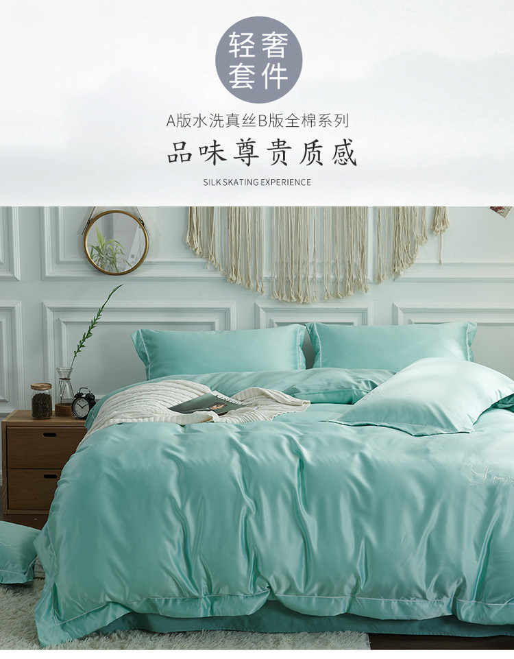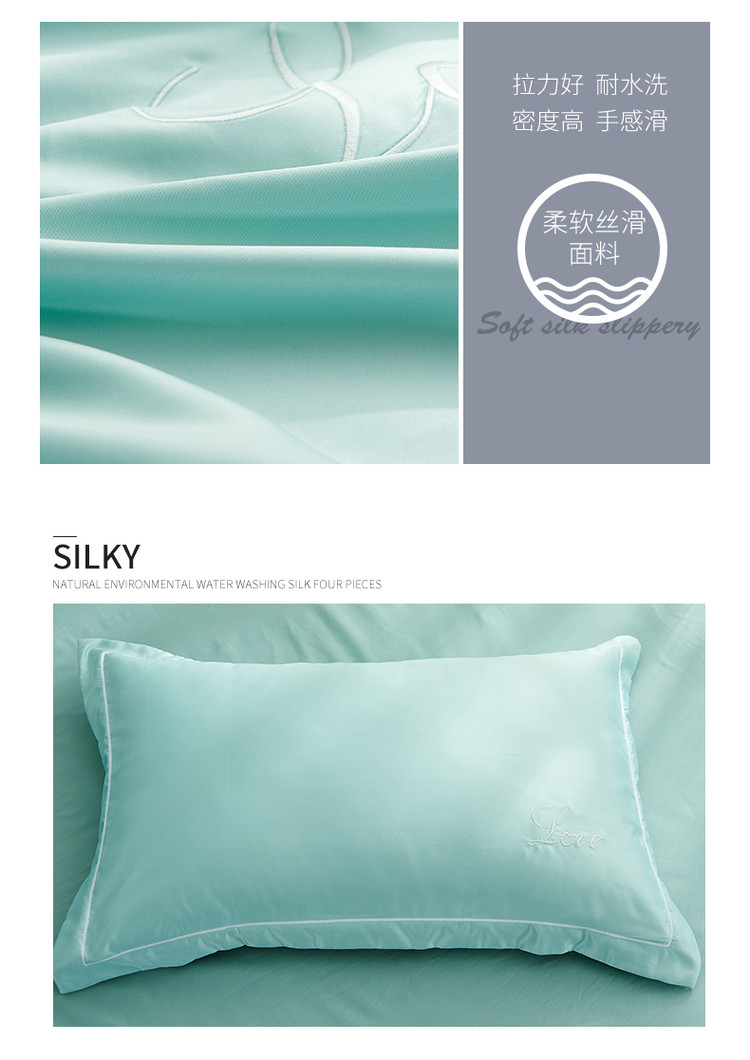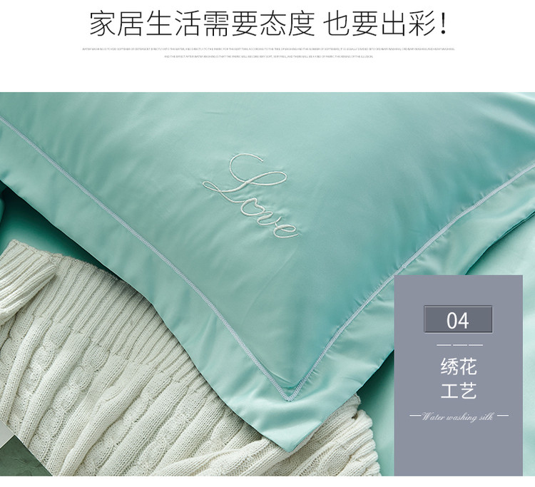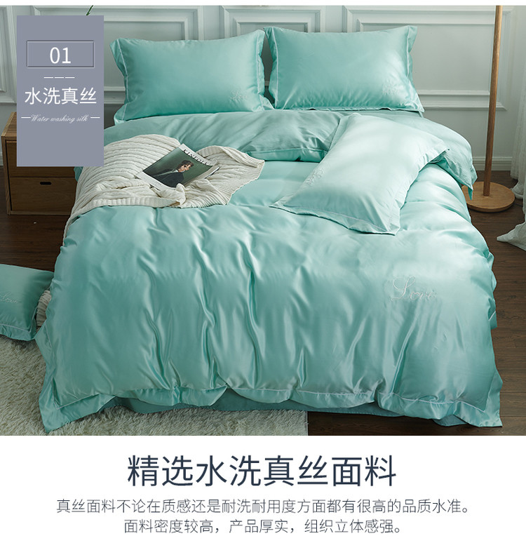商品名称:意尚风情 2020新款·绣花水洗真丝四件套床单款克莱儿浅绿