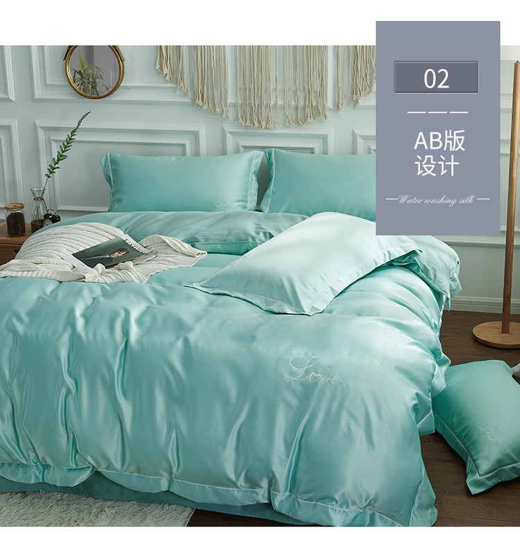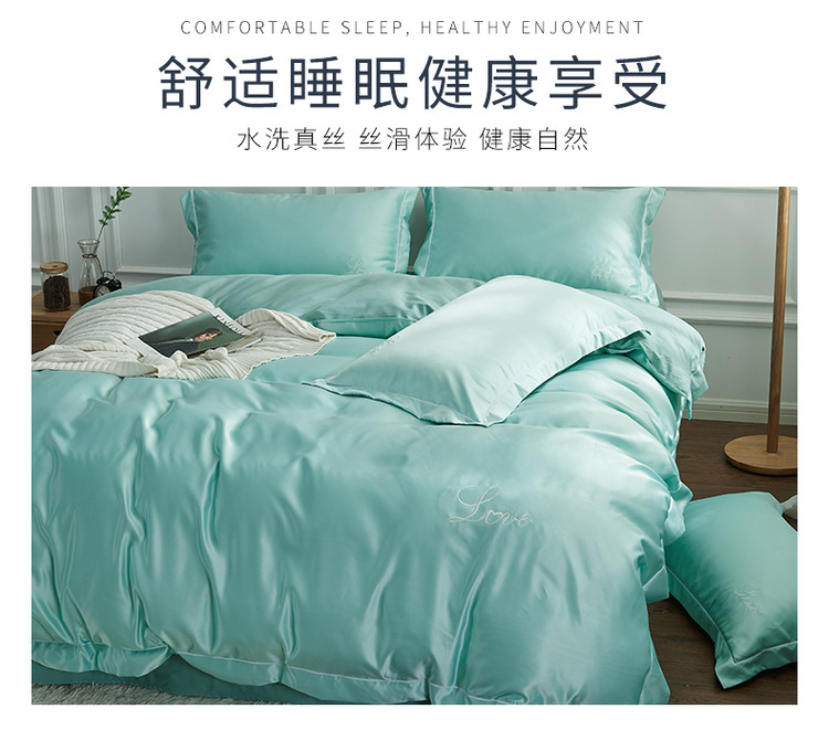 (总)意尚风情 2022新款莫代尔天丝水洗真丝绣花夏被四件套,宾利蓝,纯白,粉玉,高级灰,墨绿,深蓝,水绿,香槟