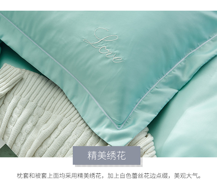 (总)意尚风情 2023新款天丝提花蕾丝刺绣四件套,薄荷绿,宾利兰,豆沙,高级灰,格调灰,姜黄,墨绿,少女粉,香芋紫,雅绿