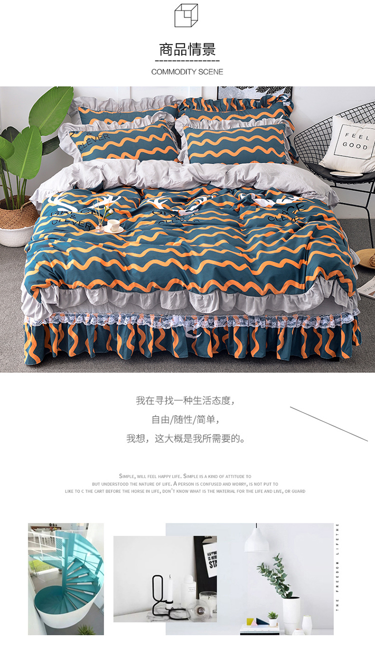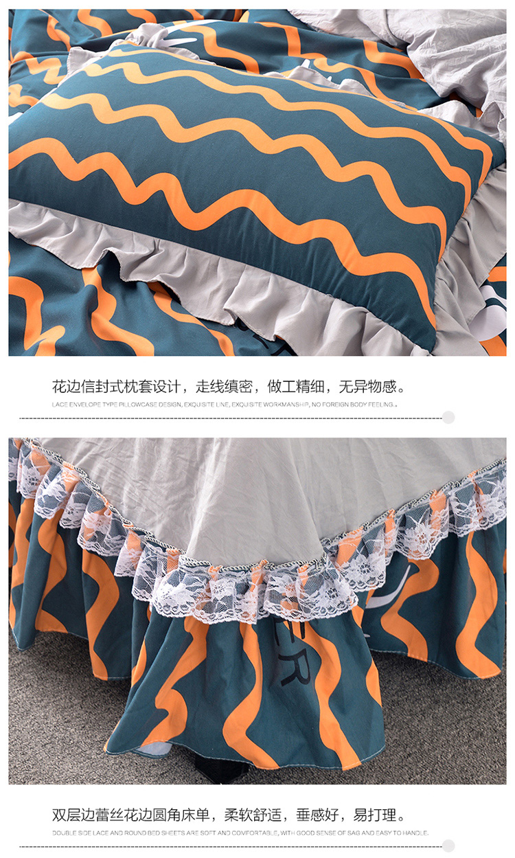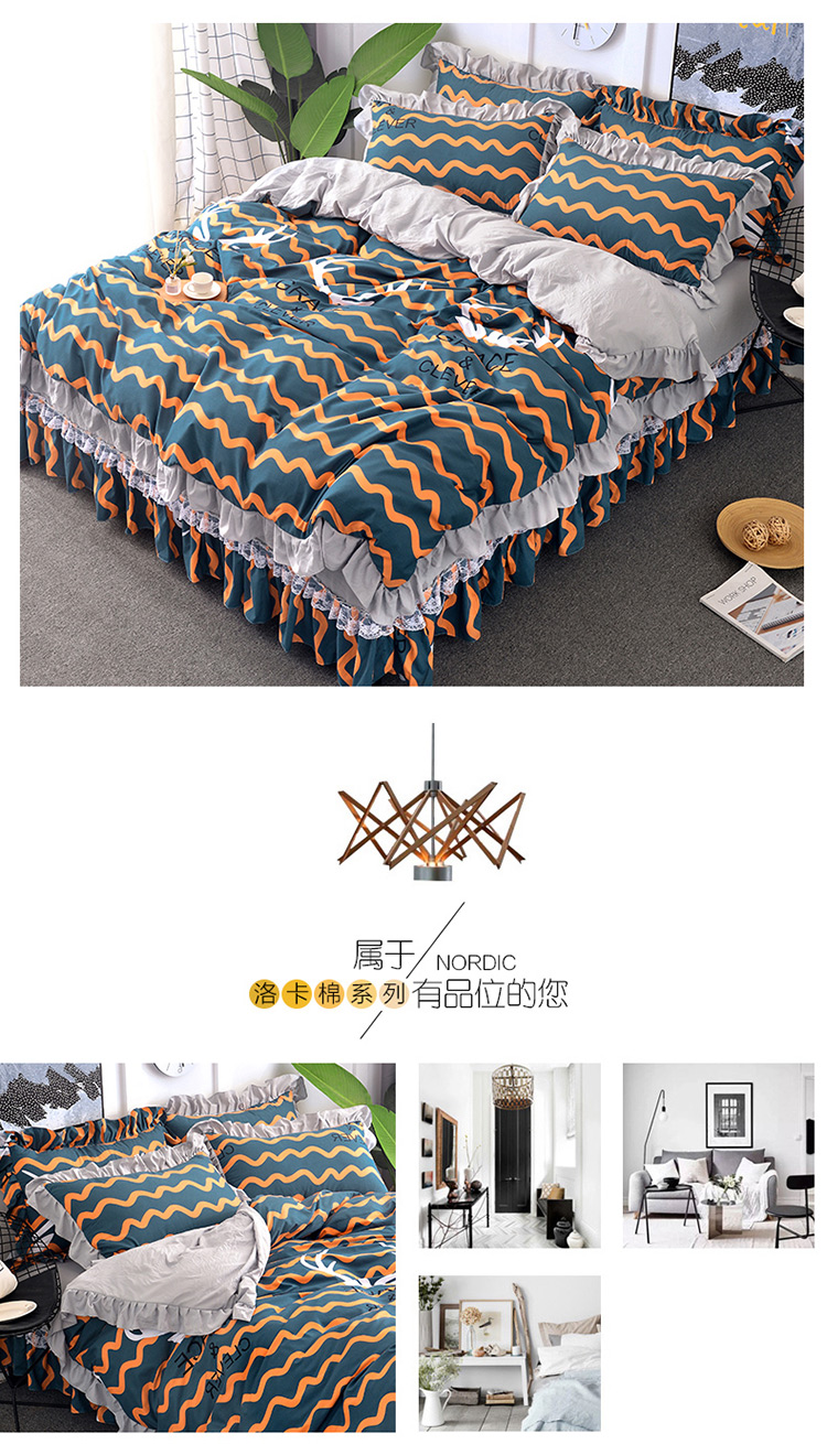 商品名称:梦柏 2018新款洛卡棉蕾丝花边四件套 格雷斯