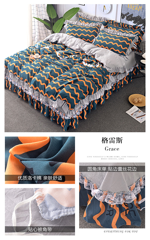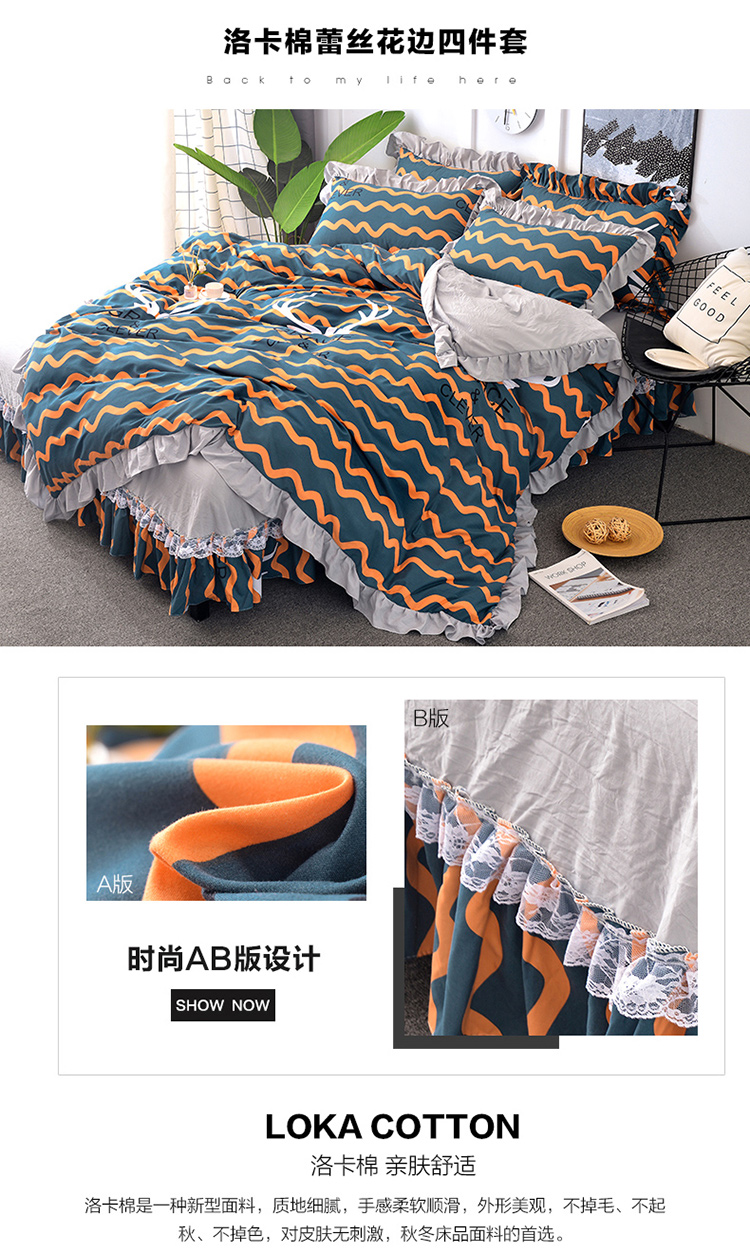 梦柏 2018新款洛卡棉蕾丝花边四件套 格雷斯