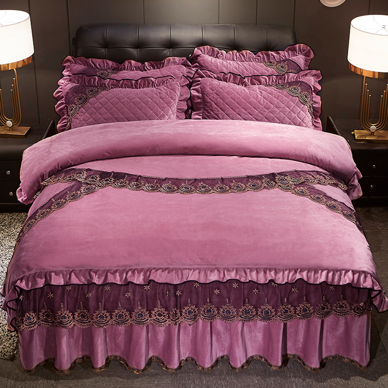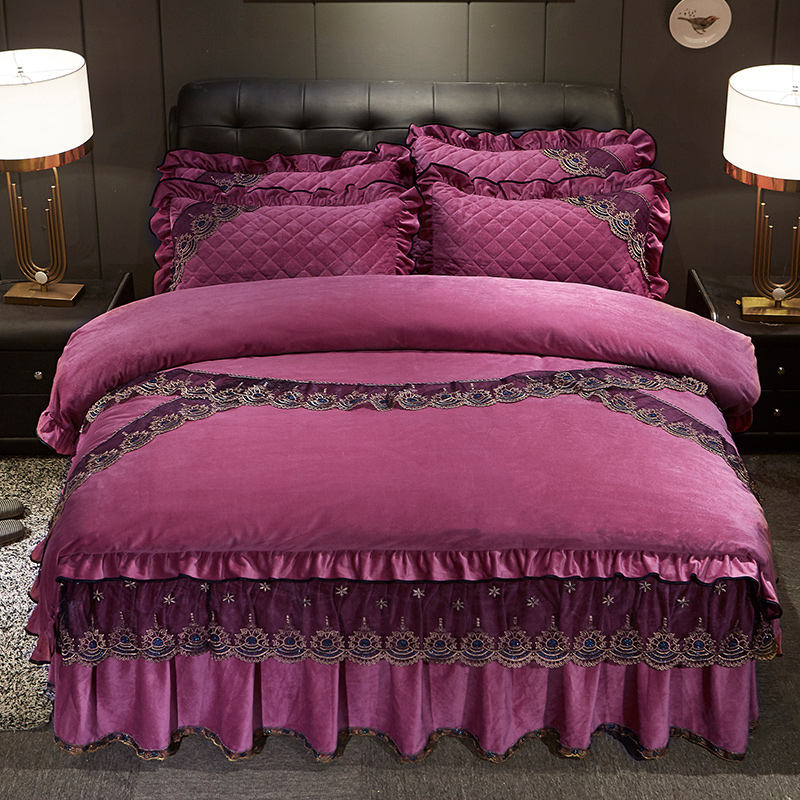 (总)宜凡家纺 2025新款兔绒提花牛奶绒夹棉床裙四件套,爱心 少女粉,爱心 粉紫,爱心 驼色,蝶舞 大红,蝶舞 米色,蝶舞 浅紫,蝶舞 玉色,简爱 苍青,简爱 豆沙紫,简爱 玉色,樱桃 苍青,樱桃 豆沙紫,樱桃 奶油白