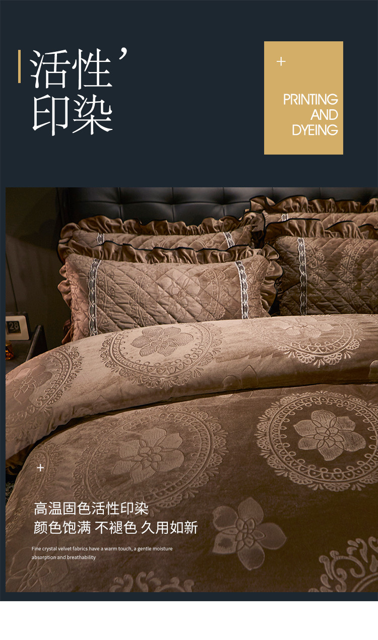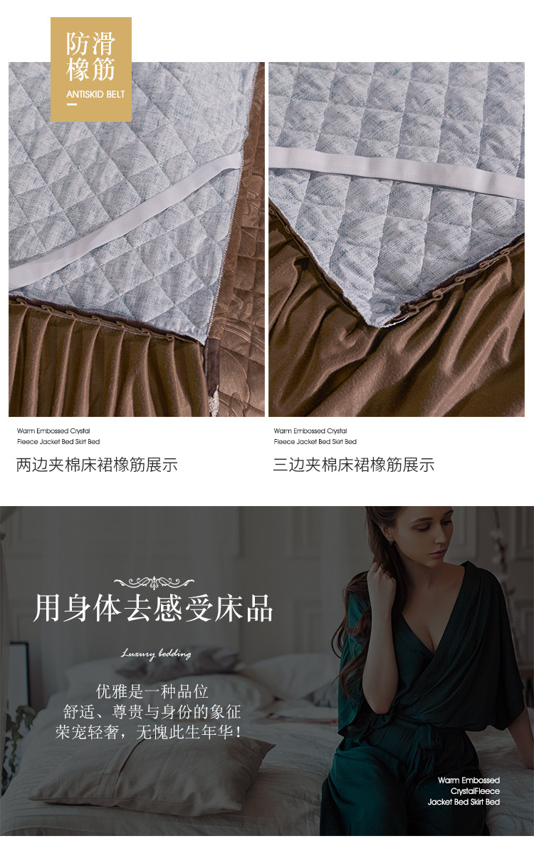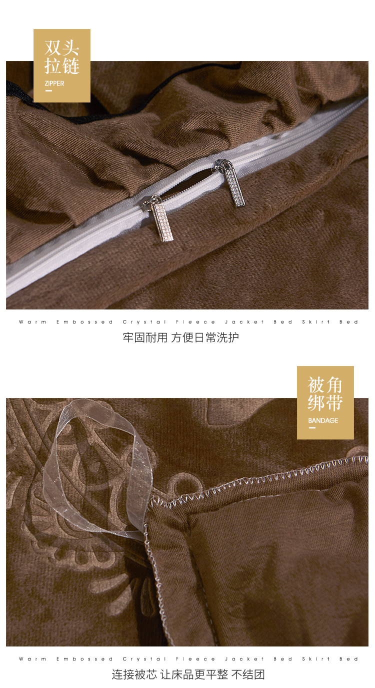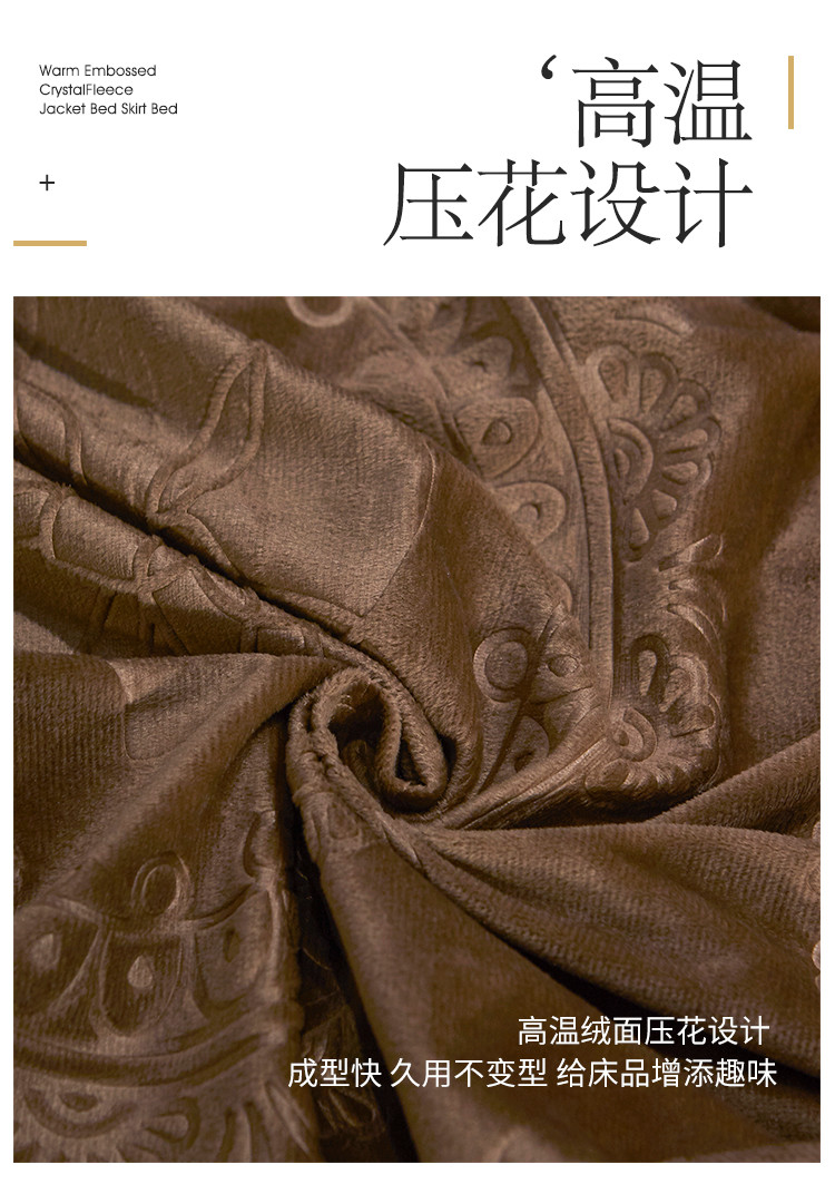 宜凡家纺 2019新款水晶绒夹棉床裙四件套 花之都-咖啡