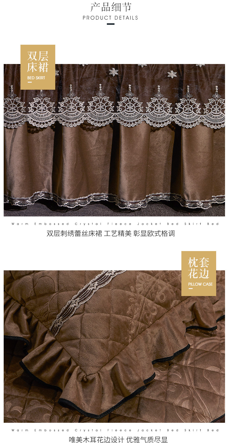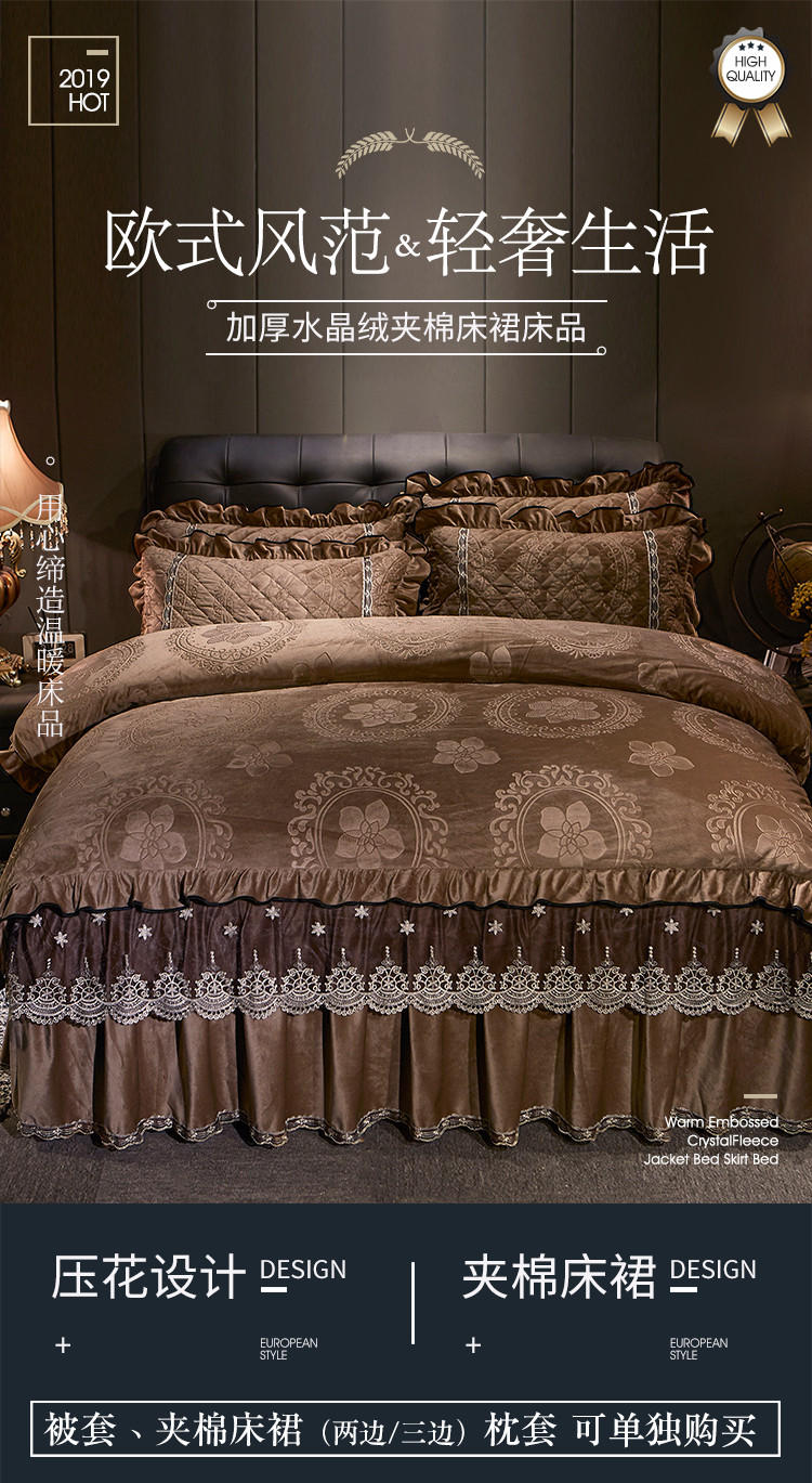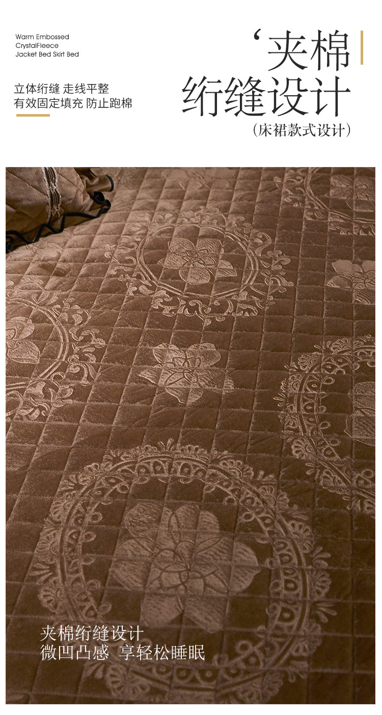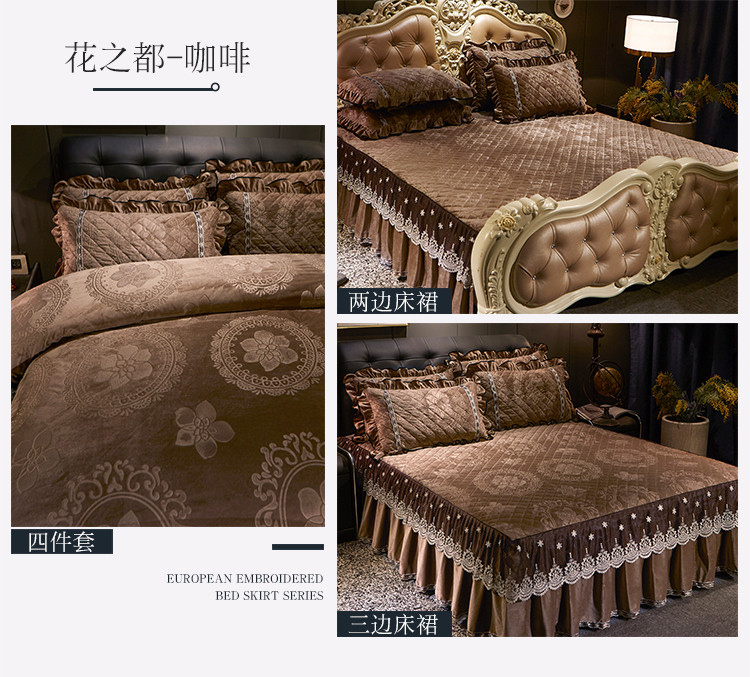 商品名称:宜凡家纺 2019新款水晶绒夹棉床裙四件套 花之都-咖啡