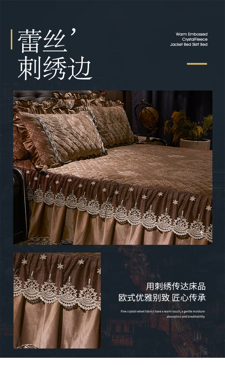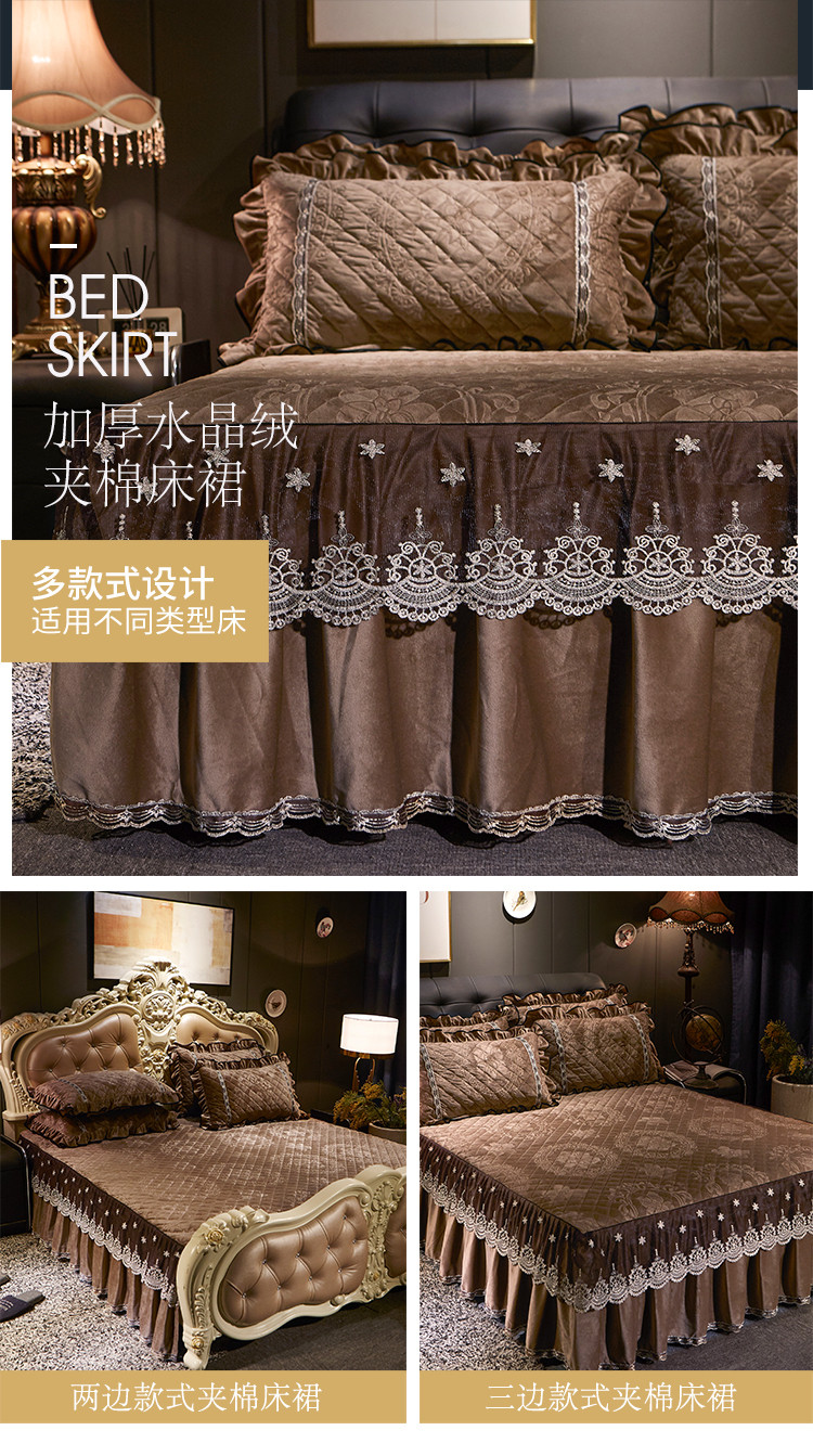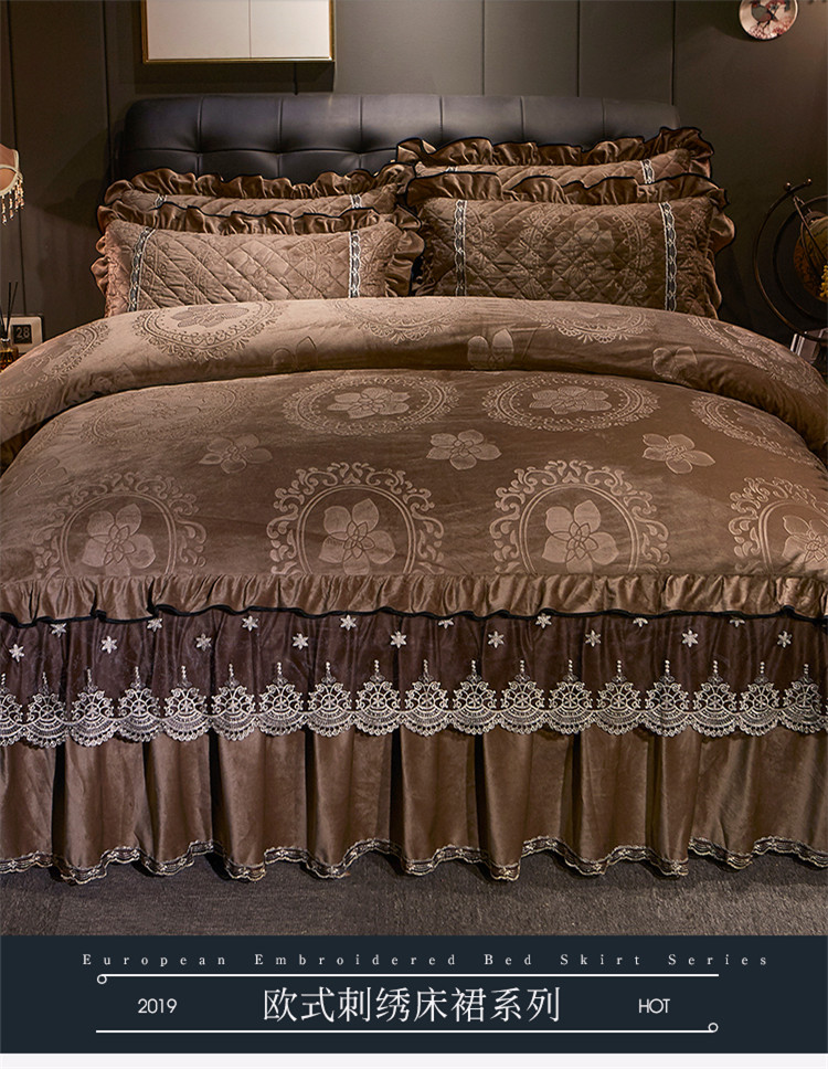 商品名称:宜凡家纺 2019新款水晶绒夹棉床裙四件套 花之都-咖啡