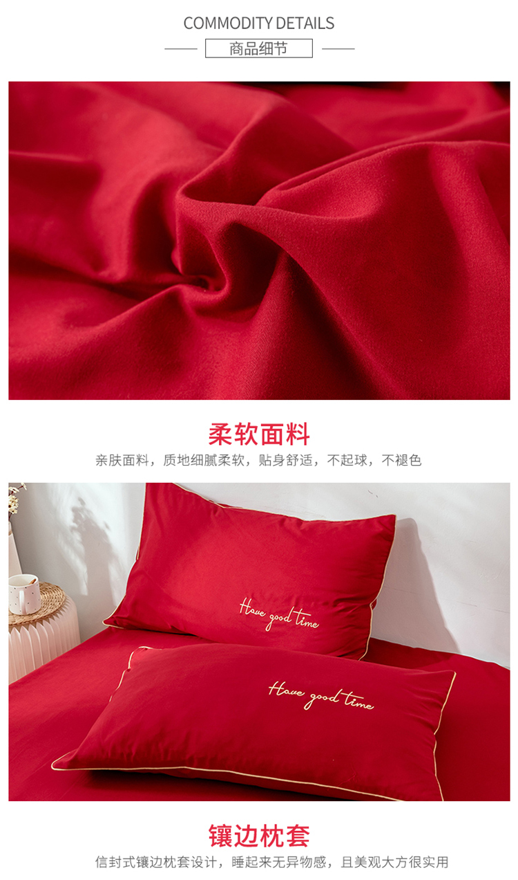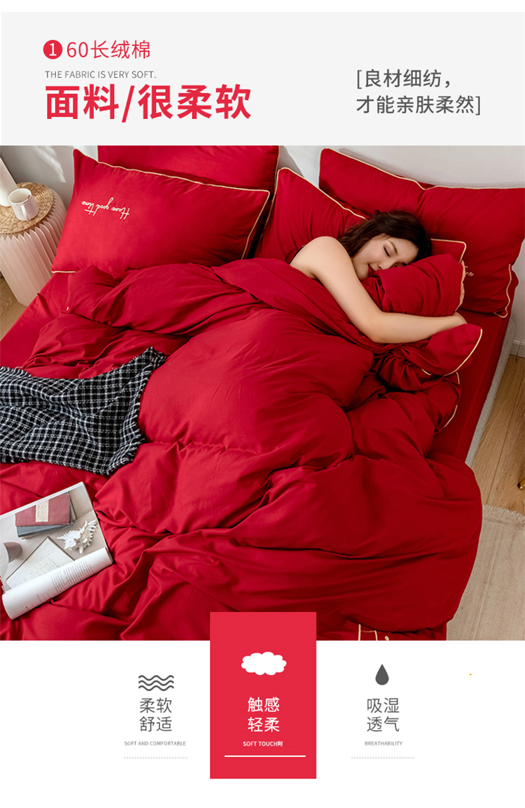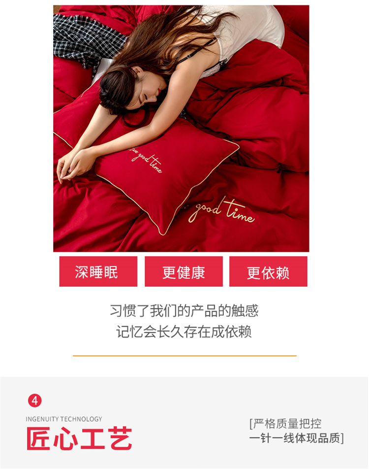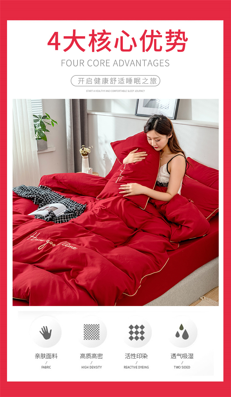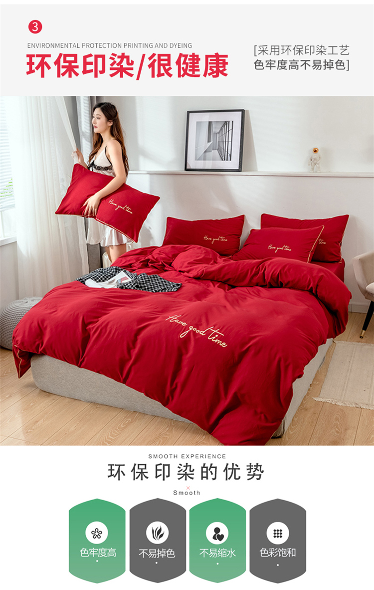 意尚风情2019新款60长绒棉绣花工艺款四件套美好时光-酒红