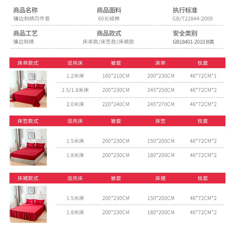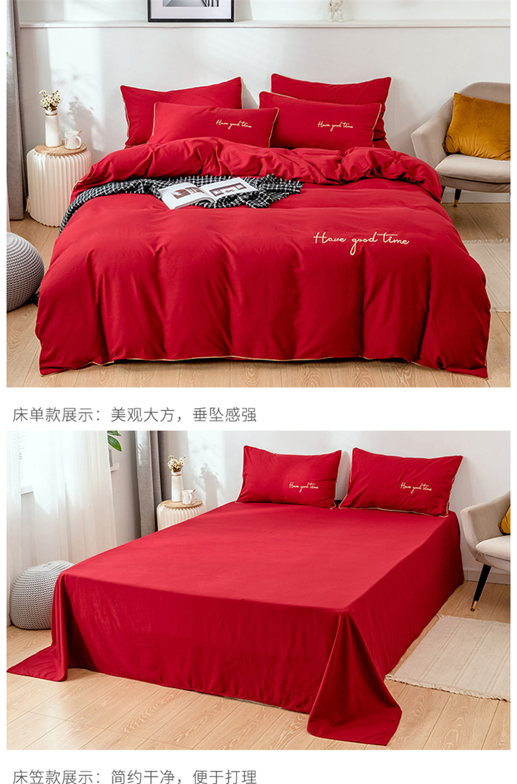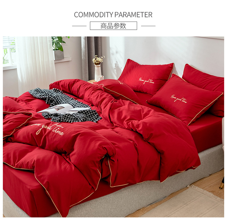 商品名称: 意尚风情2019新款60长绒棉绣花工艺款四件套美好时光-酒红
