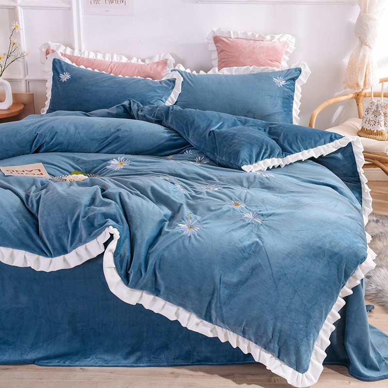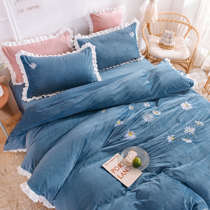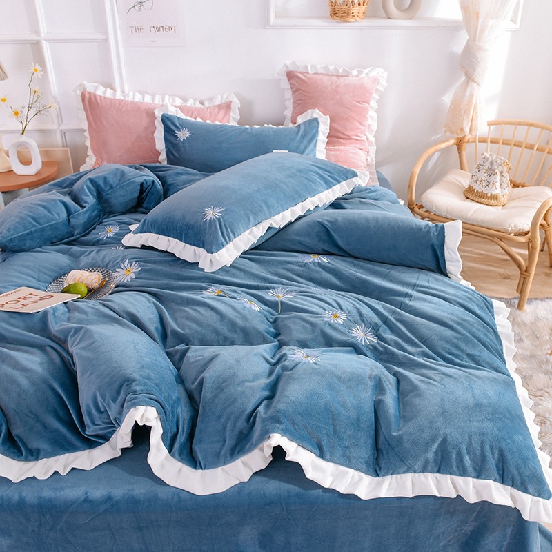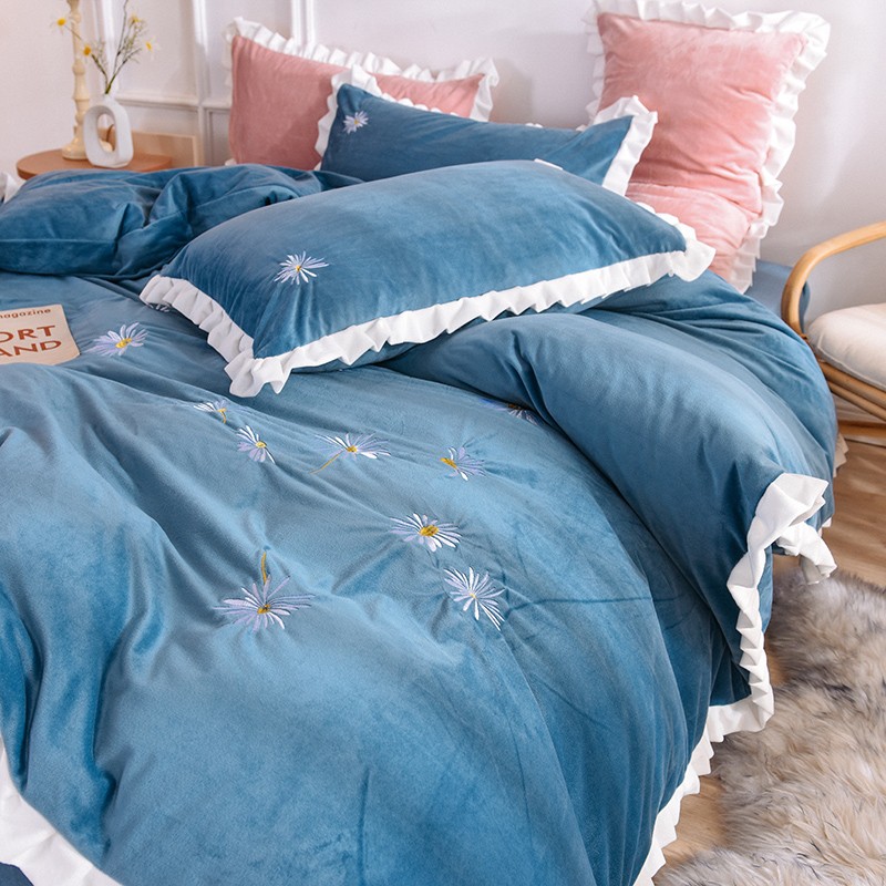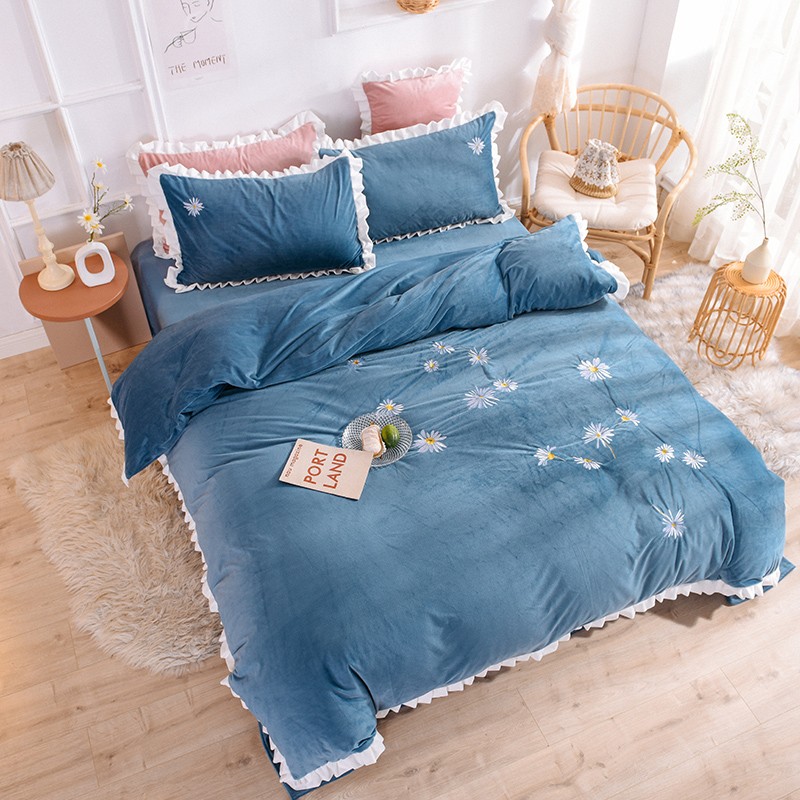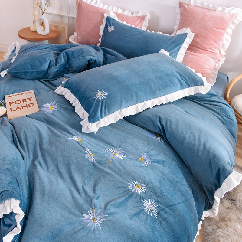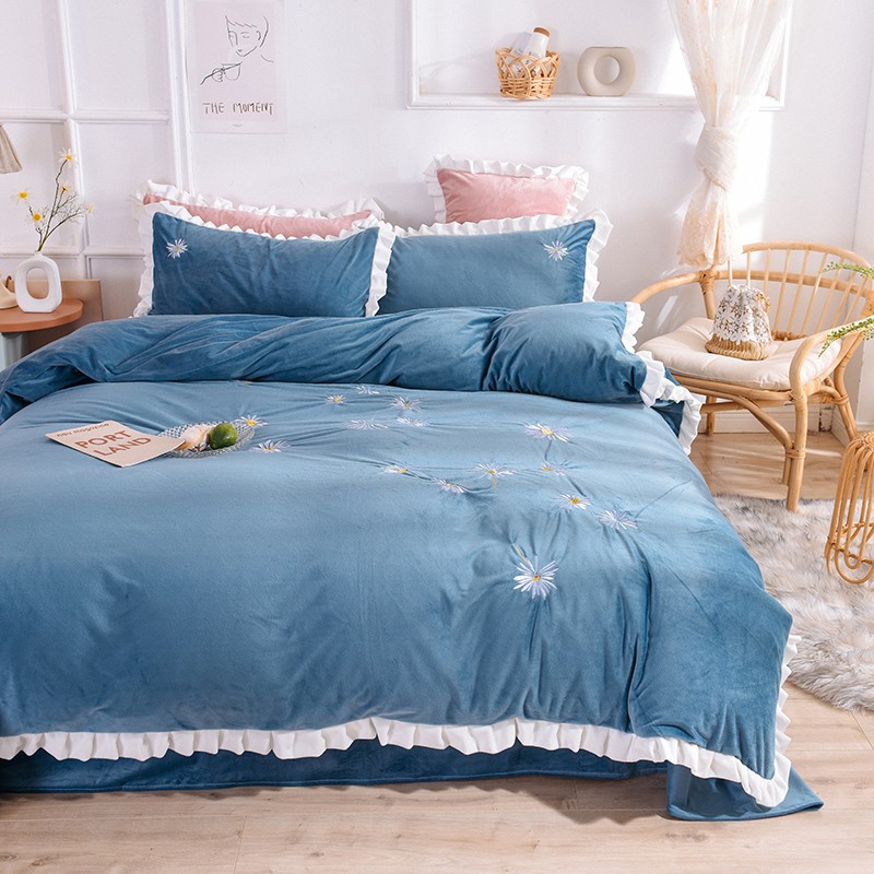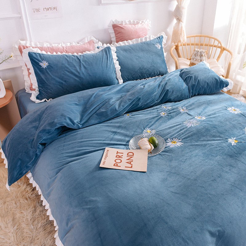 漫调 2019新款宝宝绒四件套小雏菊绣花秋冬款 小雏菊-深兰