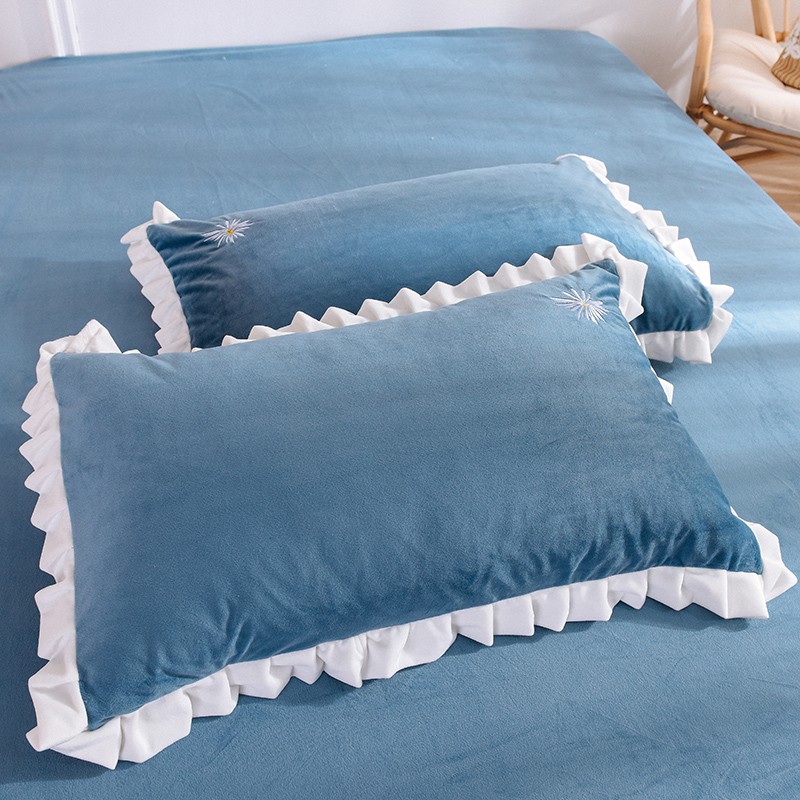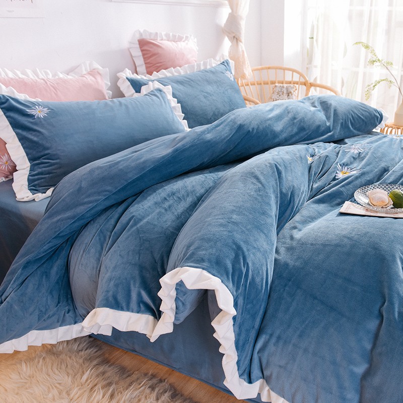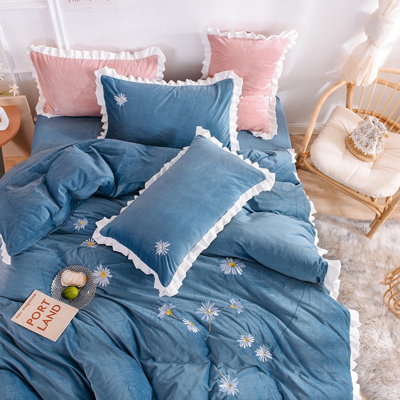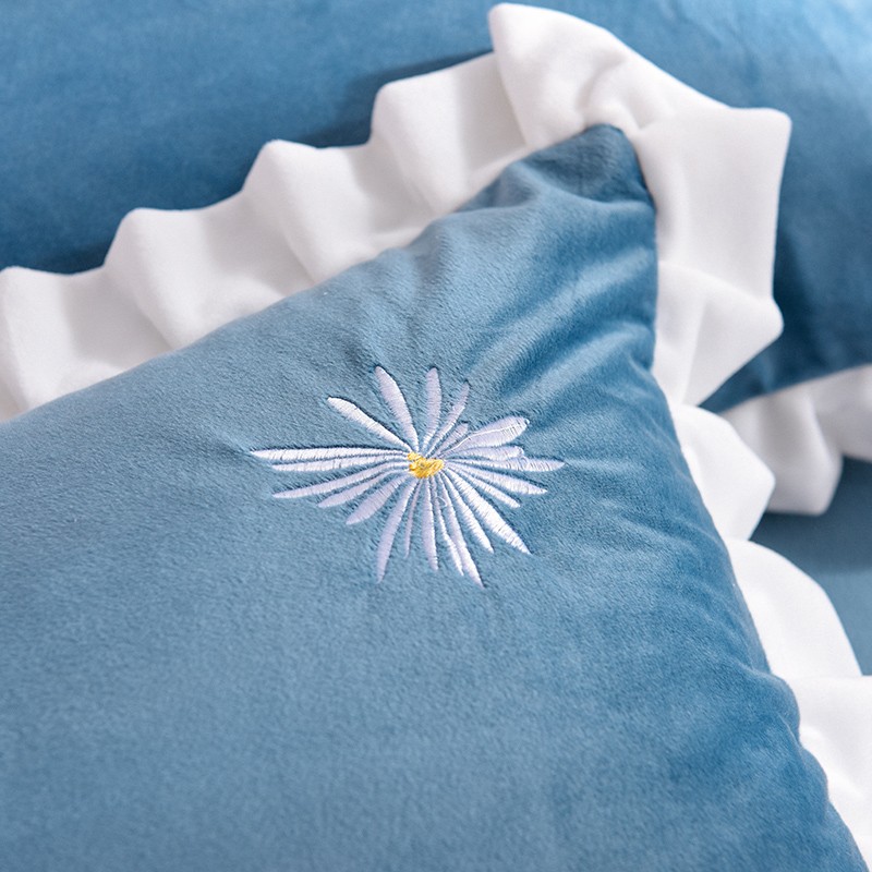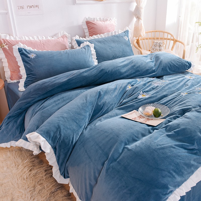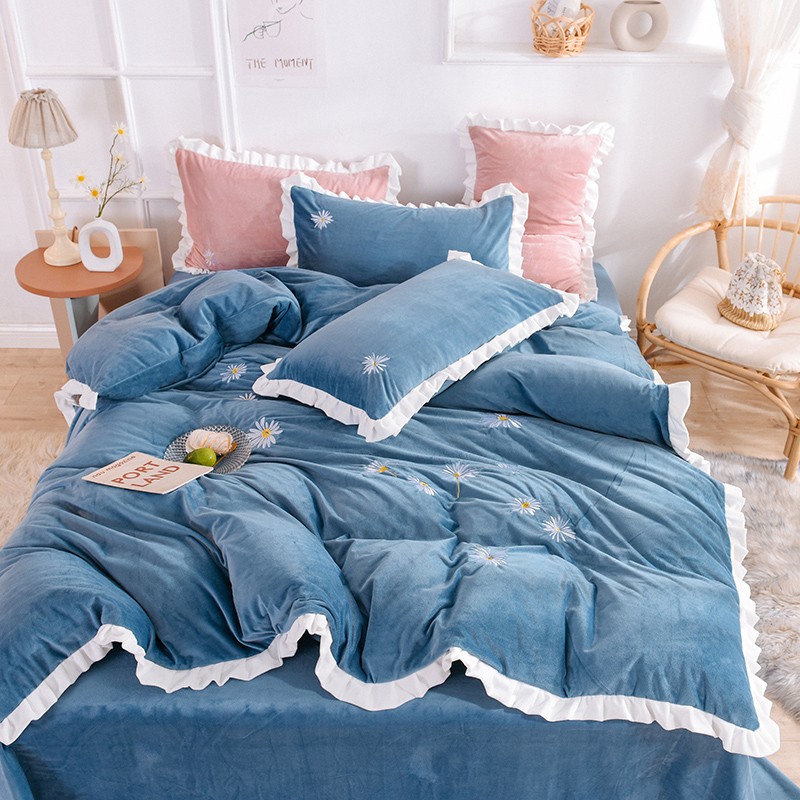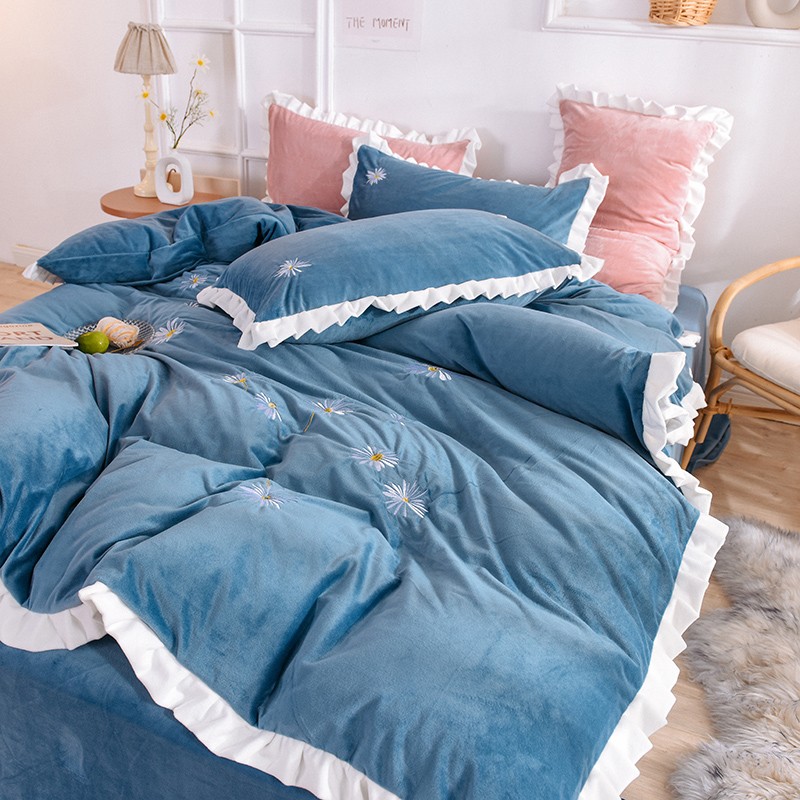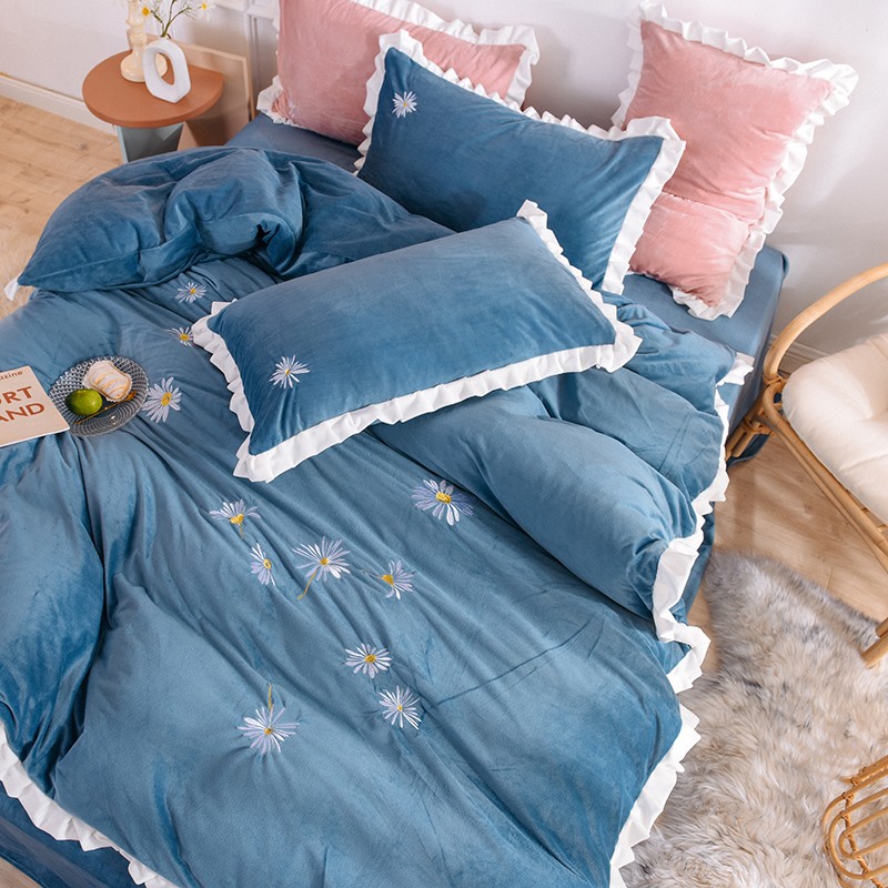 漫调 2019新款宝宝绒四件套小雏菊绣花秋冬款 小雏菊-深兰