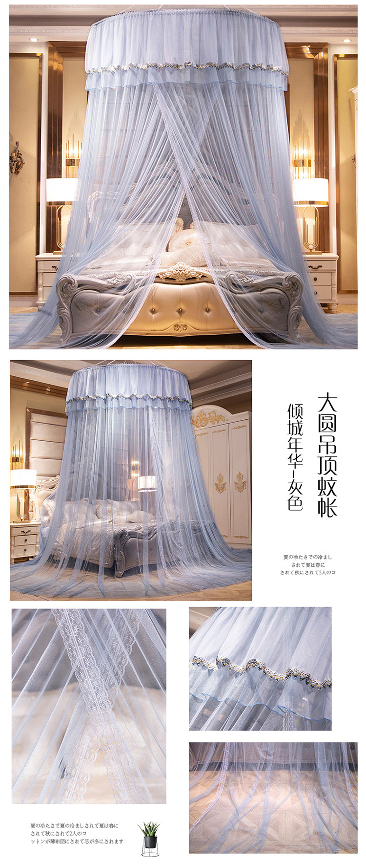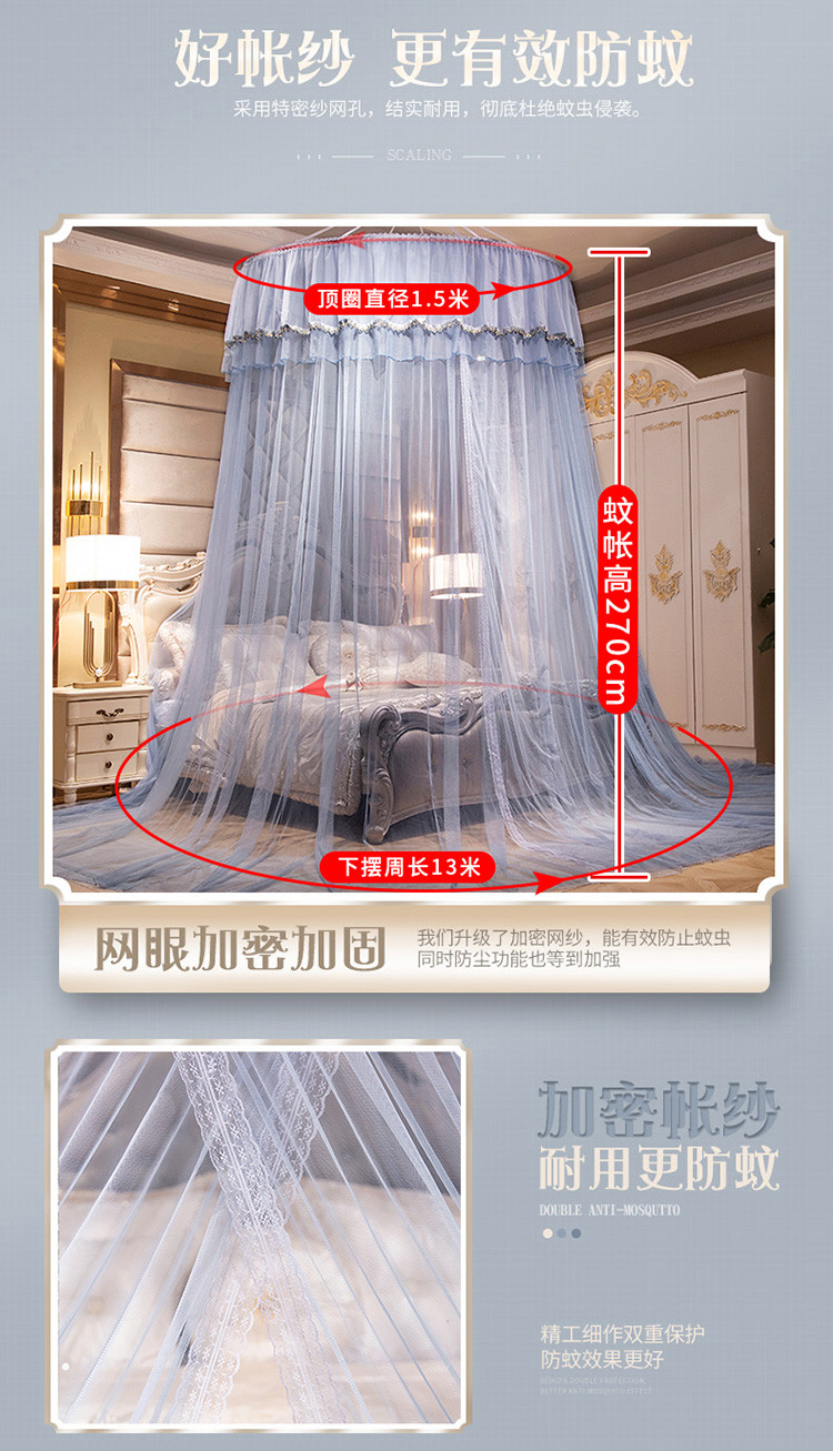 商品名称:雪姿 2023新款直径1.5米圆顶蚊帐-倾城年华系列 灰色