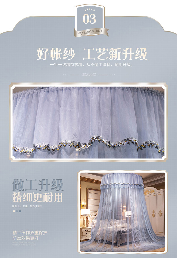 (总)雪姿家纺 2024新款唯美蕾丝圆顶蚊帐-颜汐,颜汐-暖玉,颜汐-雅白,颜汐-海洋兰,颜汐-抹茶绿,颜汐-胭脂粉,颜汐-时尚灰