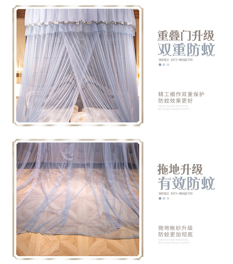 (总)雪姿家纺 2025新款刺绣花边双层宫廷三开门落地蚊帐-舒雅,素雅-海洋兰,素雅-暖玉,素雅-蓝灰,素雅-黄色,素雅-柳绿