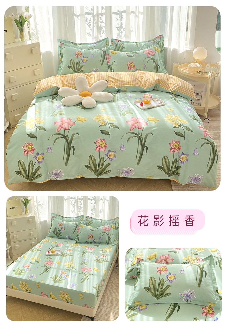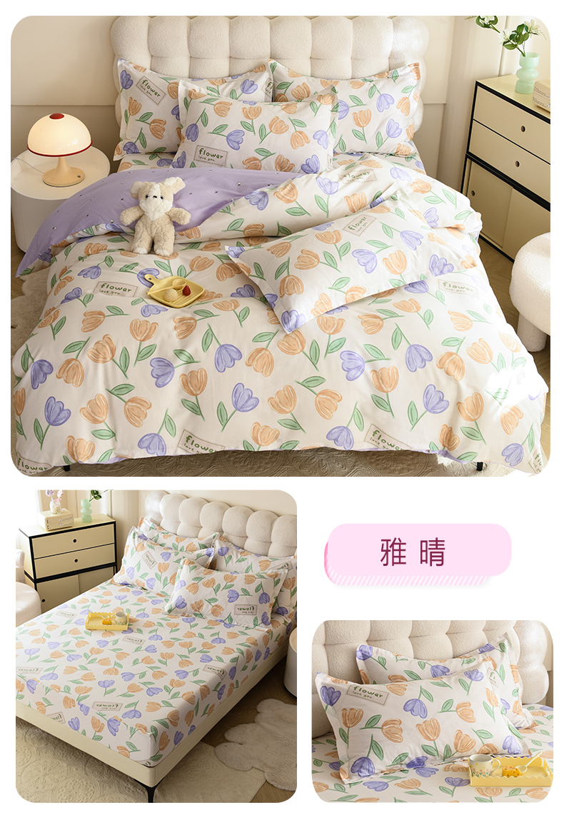 八十八家纺 2025新款全棉12868系列单品床笠雨叶梦,雨叶梦