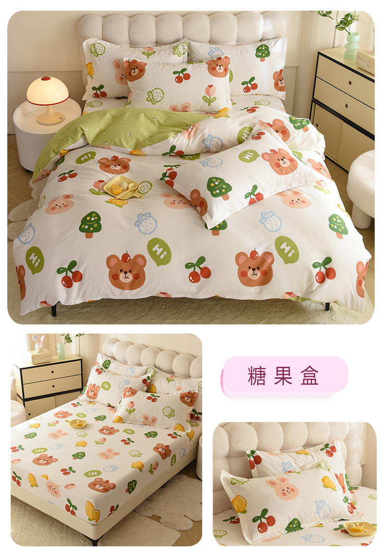 八十八家纺 2025新款全棉12868系列单品床笠甜梦小熊,甜梦小熊