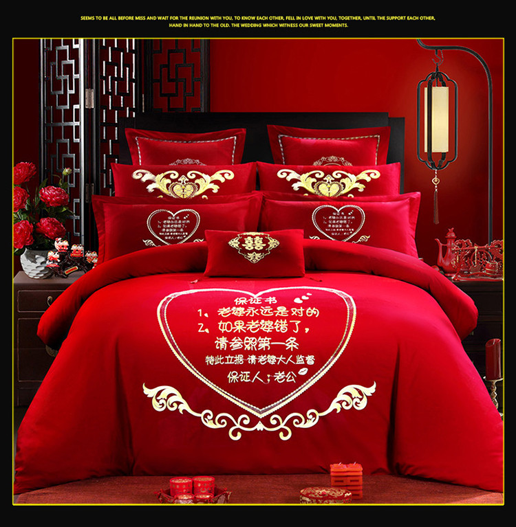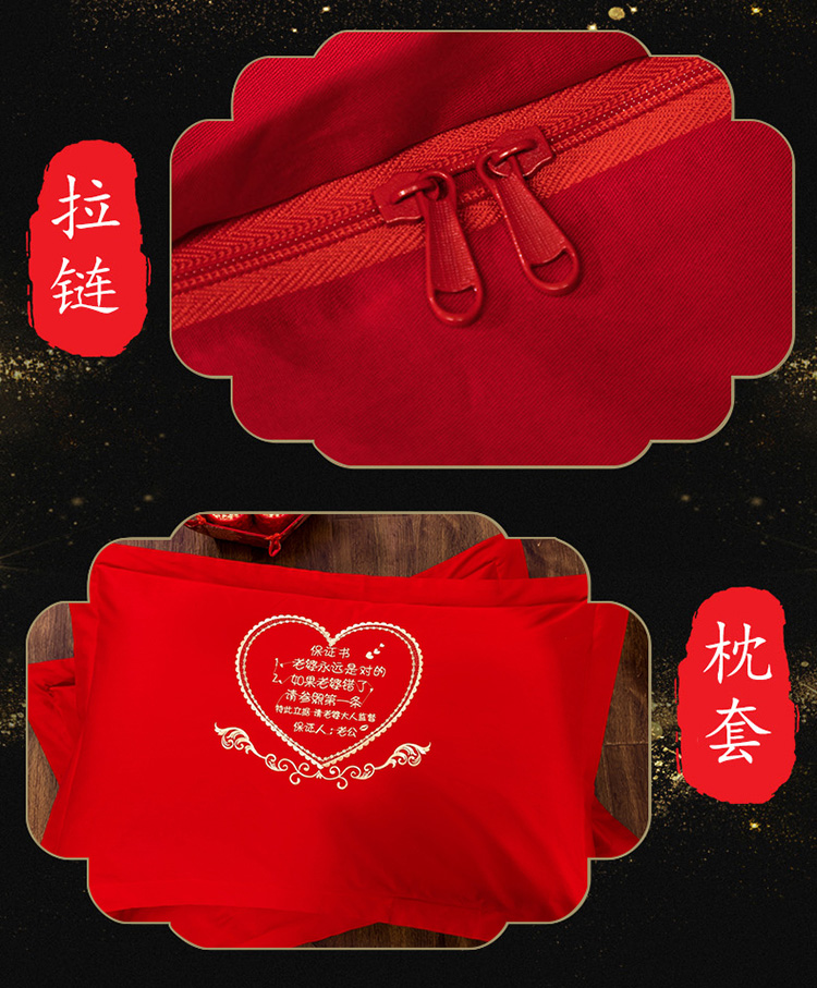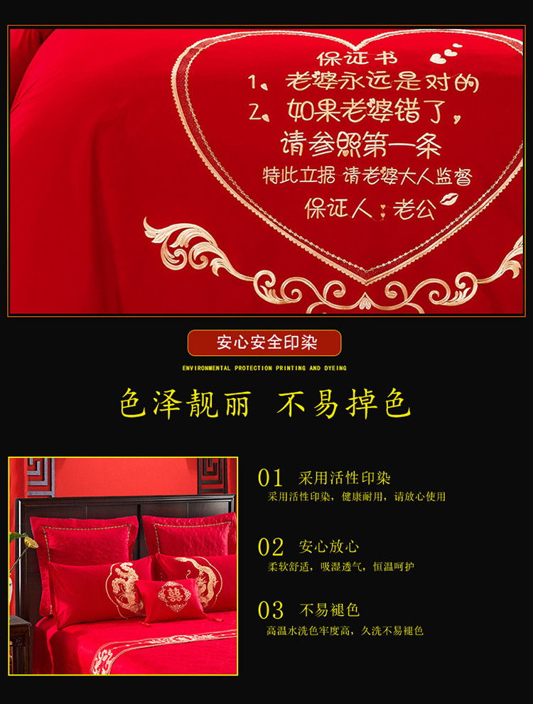 商品名称:慕她婚庆 全棉大红婚庆套件 保证书