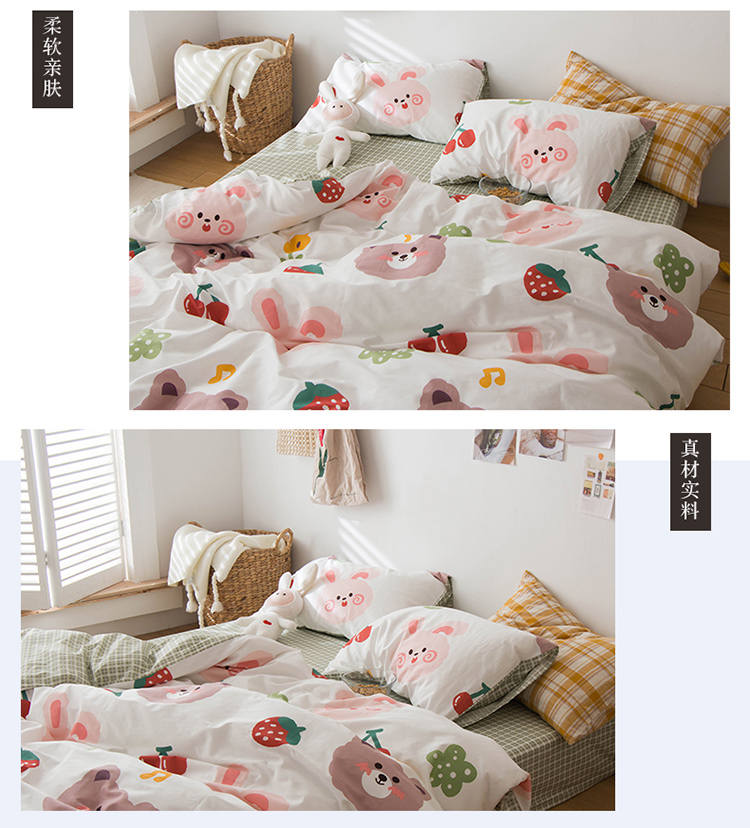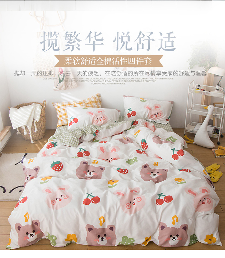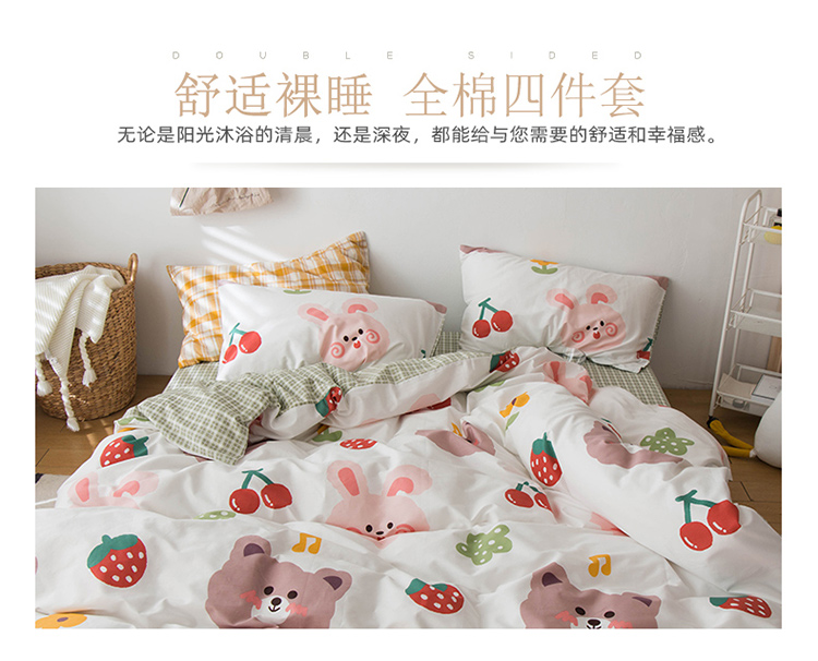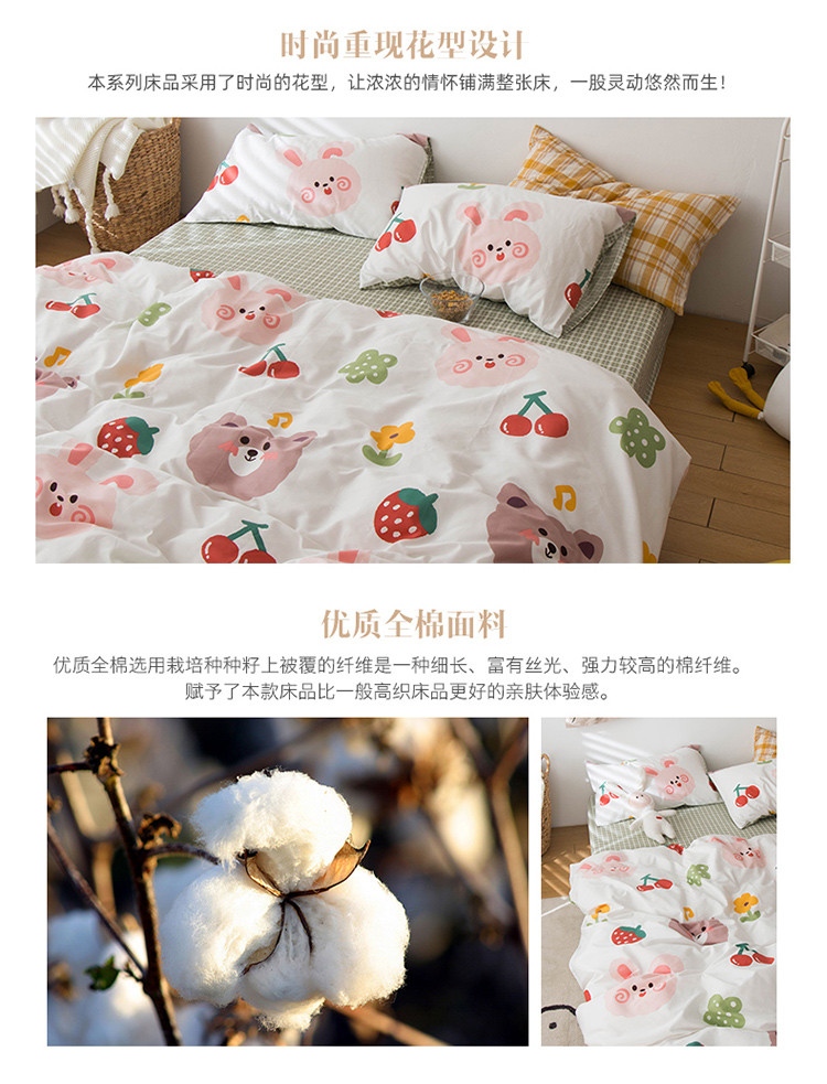 (总)窝米 2020春夏新品全棉13372四件套小波西风系列,草莓酱,木槿,小花花,小尤里
